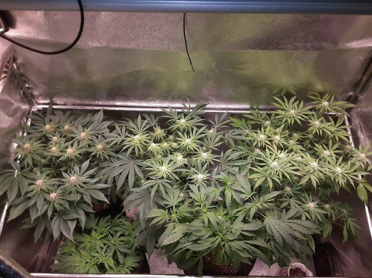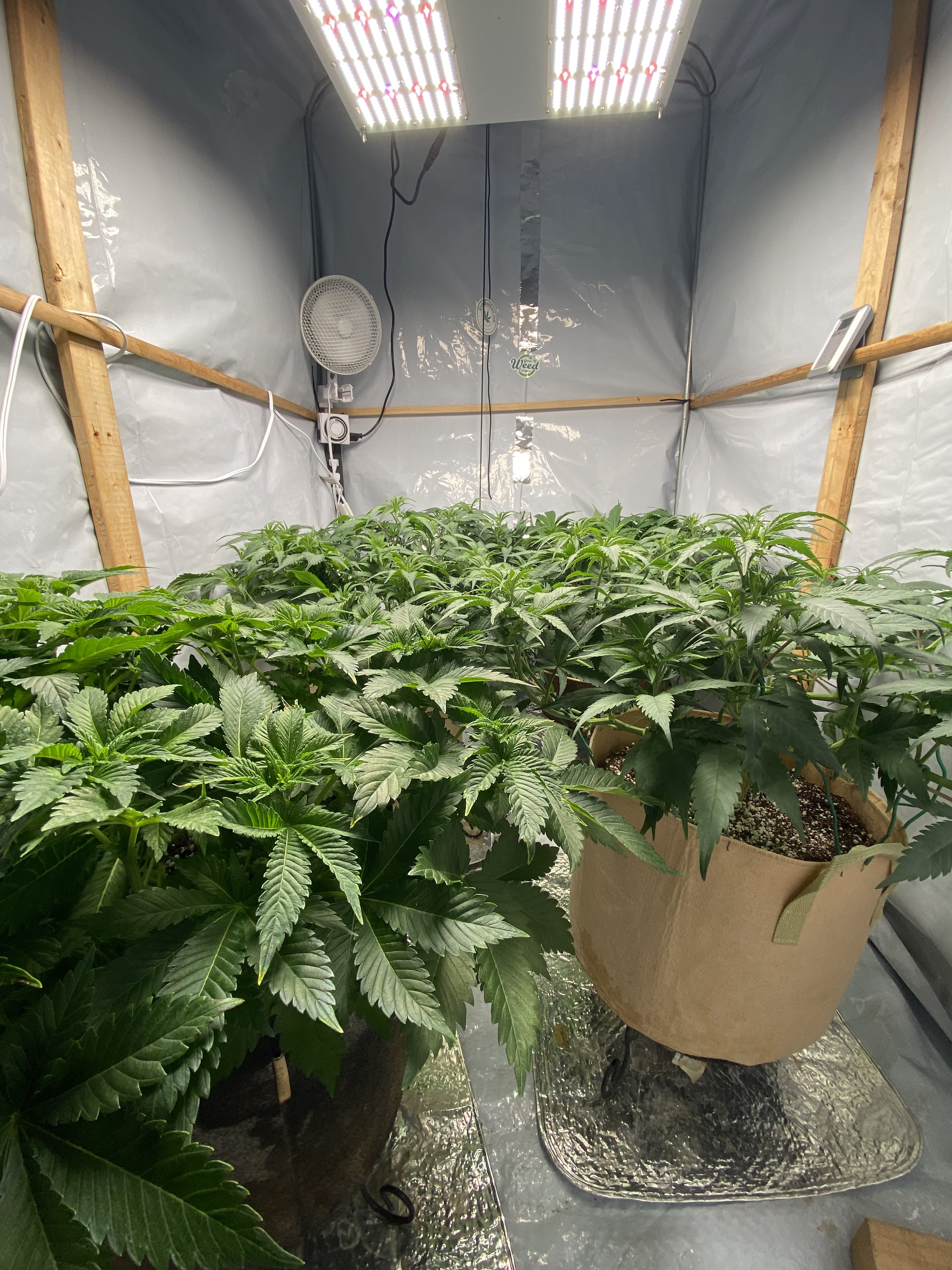 . Think i'll flip the ladies this weekend. The clones have been real easy to train and lst, but the plants grown from seed are stubborn as hell. Main stems put up a fight every day, and their much fuller and thicker than the clones. They have a nice flat canopy at the moment..one more trim before 12/12 and the stretch. Shappel S3000 3.5x6x6' ice hut