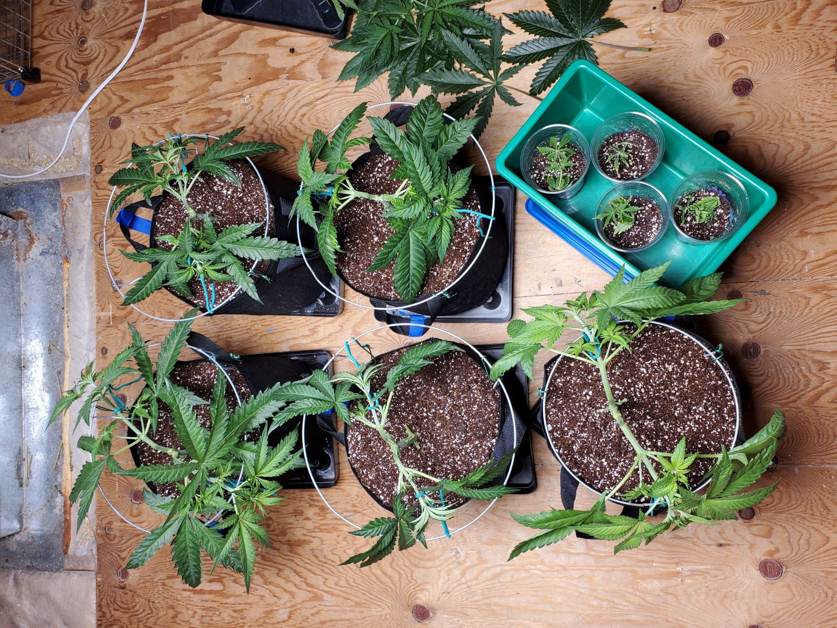 Week 5 of Veg. All 4 have had daily LST and have a pretty good spread. Probably flip in a week or so...just waiting long enough to take a few more cuttings for outdoor growing this year. Happy growing