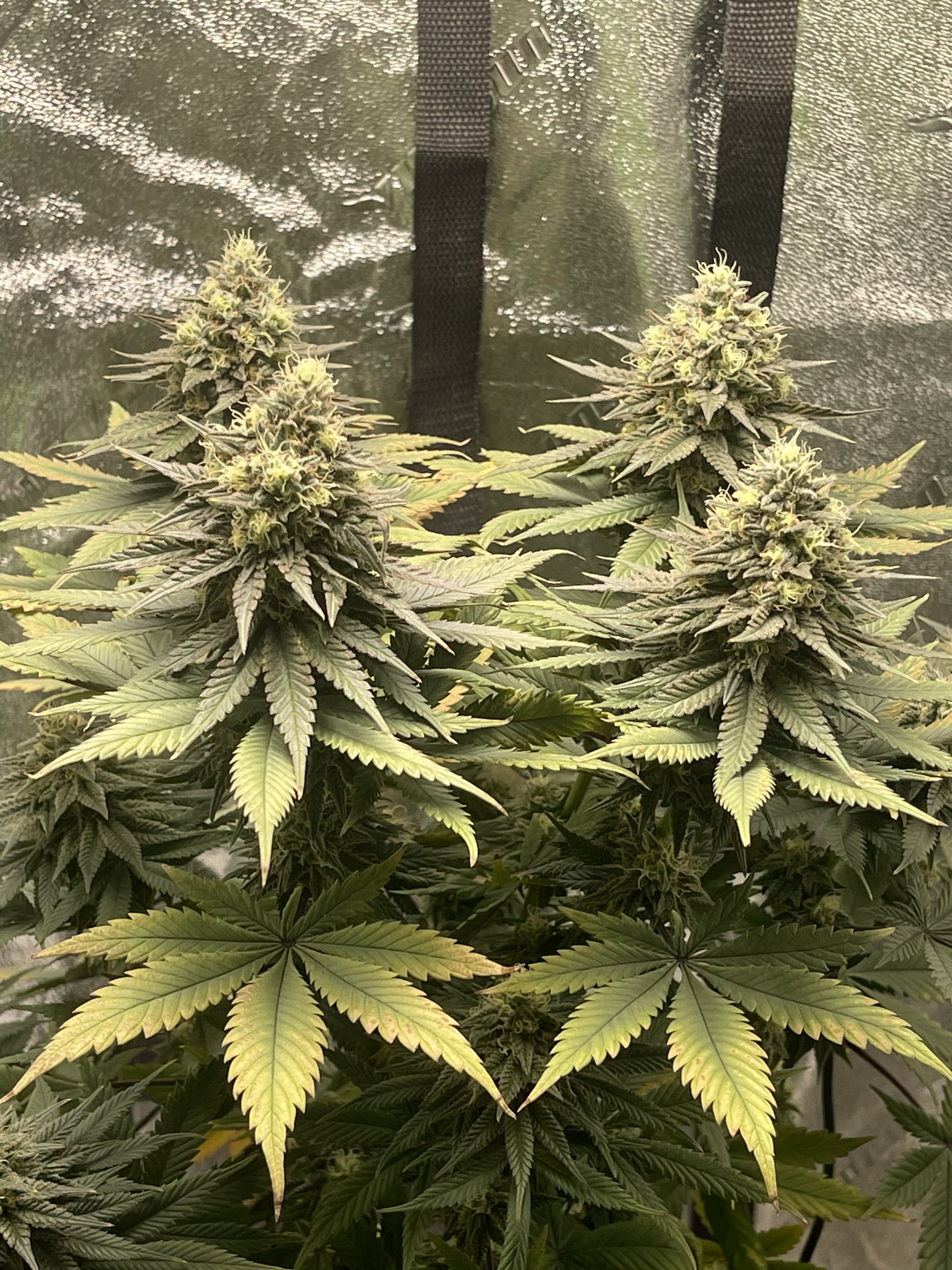 . Think i'll flip the ladies this weekend. The clones have been real easy to train and lst, but the plants grown from seed are stubborn as hell. Main stems put up a fight every day, and their much fuller and thicker than the clones. They have a nice flat canopy at the moment..one more trim before 12/12 and the stretch. Shappel S3000 3.5x6x6' ice hut