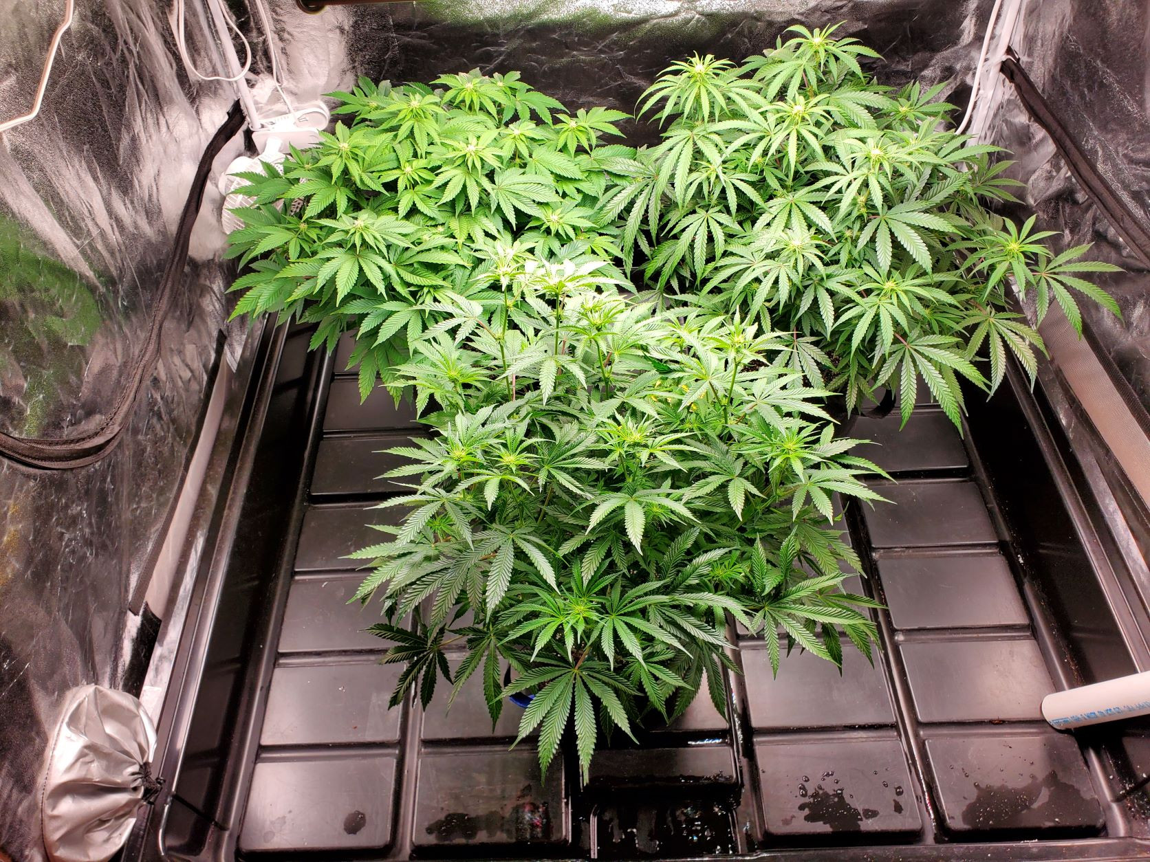 Blue cheese, strawberry cough, humming along, joined by RP-1 forced male. It has been soaked in colloidal silver and is now flipped. Hope to see some balls soon. Had to move this because I ran out of room in the veg tent.