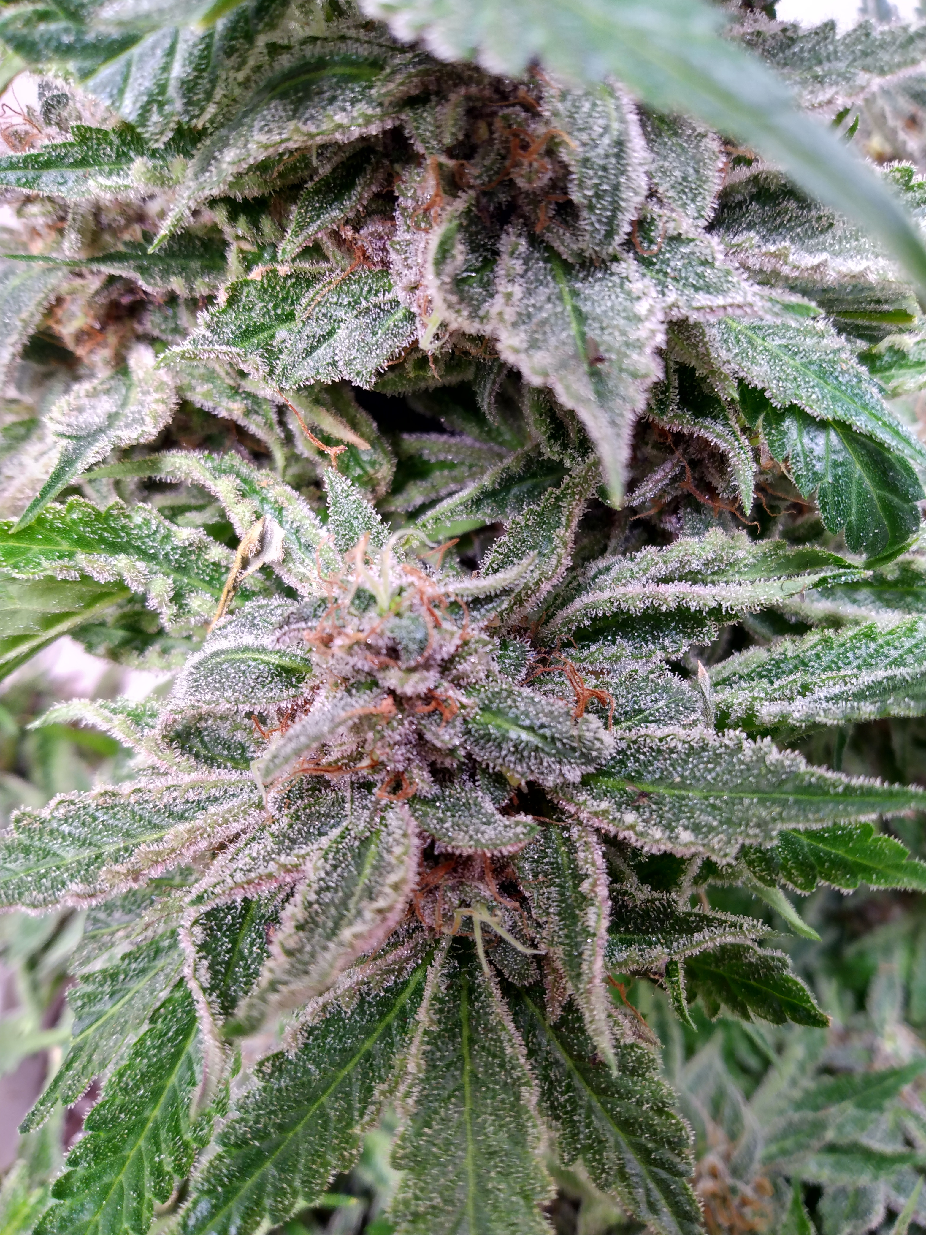 Starting week 8 in flower, Grandpas Stash clones are way ahead of Cement Shoes and GDB. I might start flushing them this week. Both are heavy with bud, one more so that the other. Shes got 4 or 5 yo-yos holding her up. Some icky sticky close-ups!