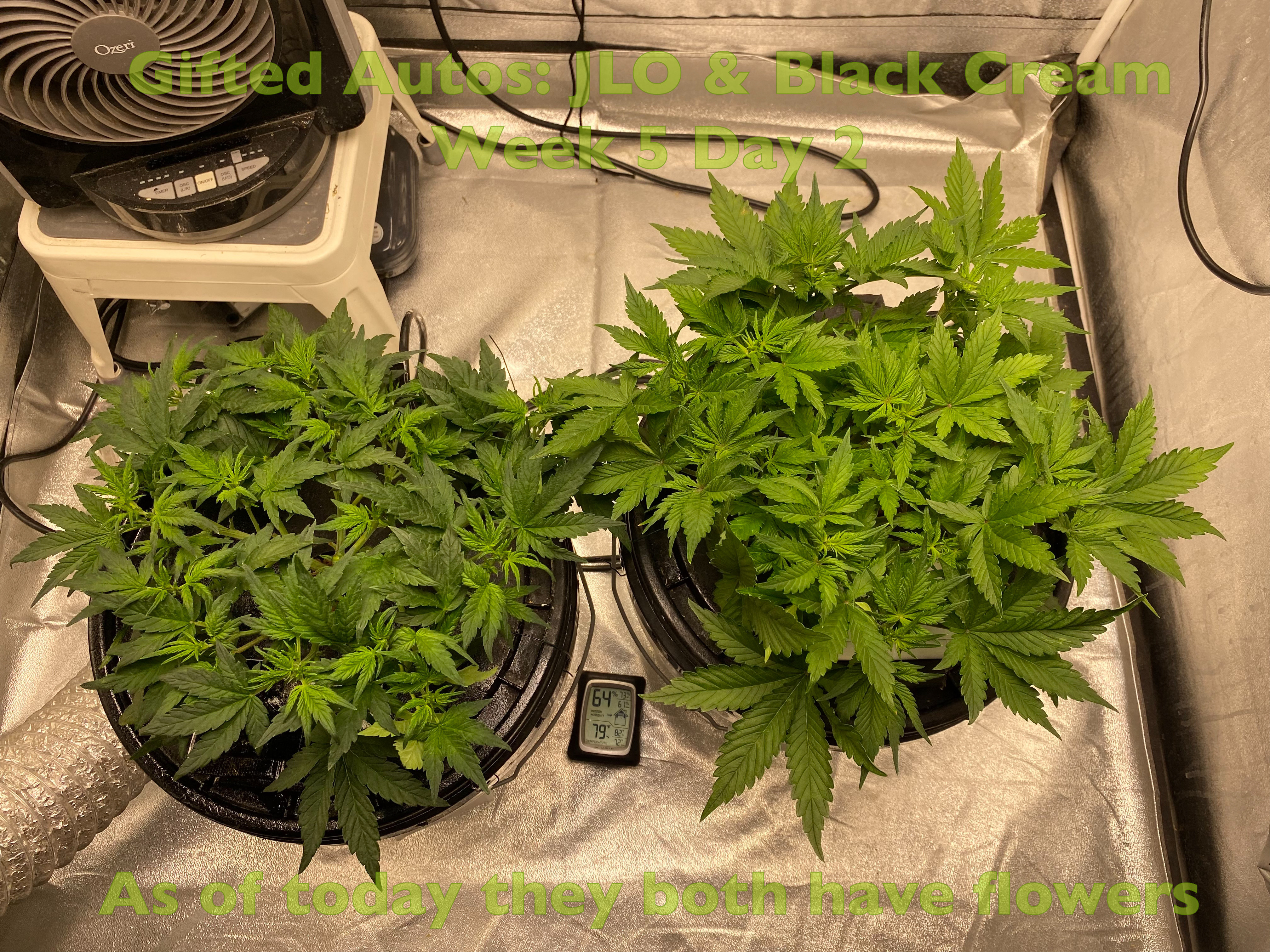 Anyway, here's my update. Today starts week 5 of flower. I'm convinced these aren't the same strain. The height difference and structure are making me think the right girl might be an Orange Velvet. Possibly mislabeled during germination by me, but will try to find some grow journals for the OV to compare. Getting lots of citrus smells from both.6 PhotosFirst grow!: 1 Tropicana Cookies, 1 Orange Velvet (possibly)