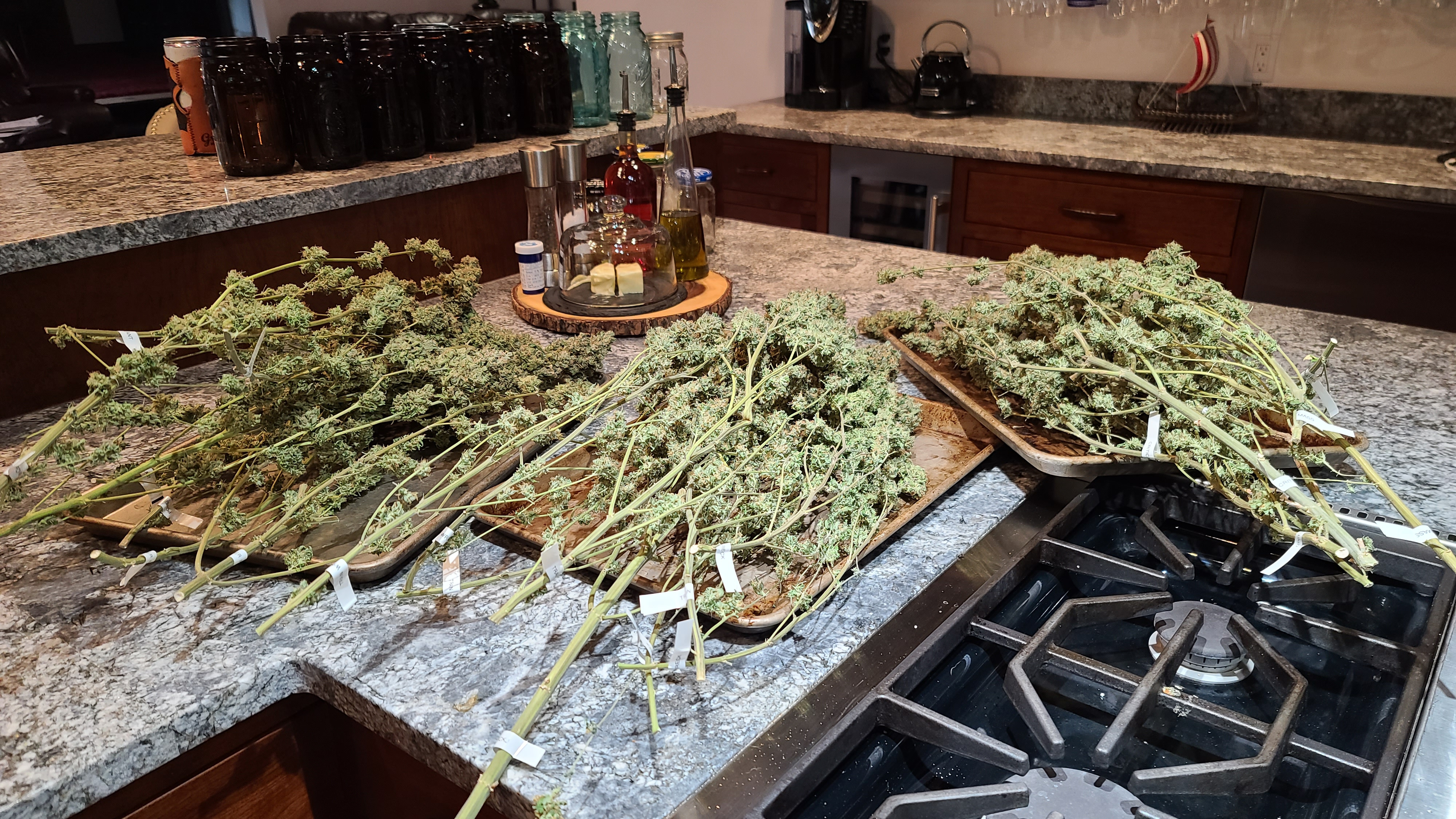 Chopped last Sunday and got them dried this week. Lucked out with temps and humidity for the dry this week. Now in jars for the cure. Will be some great smoke in about a month I believe.