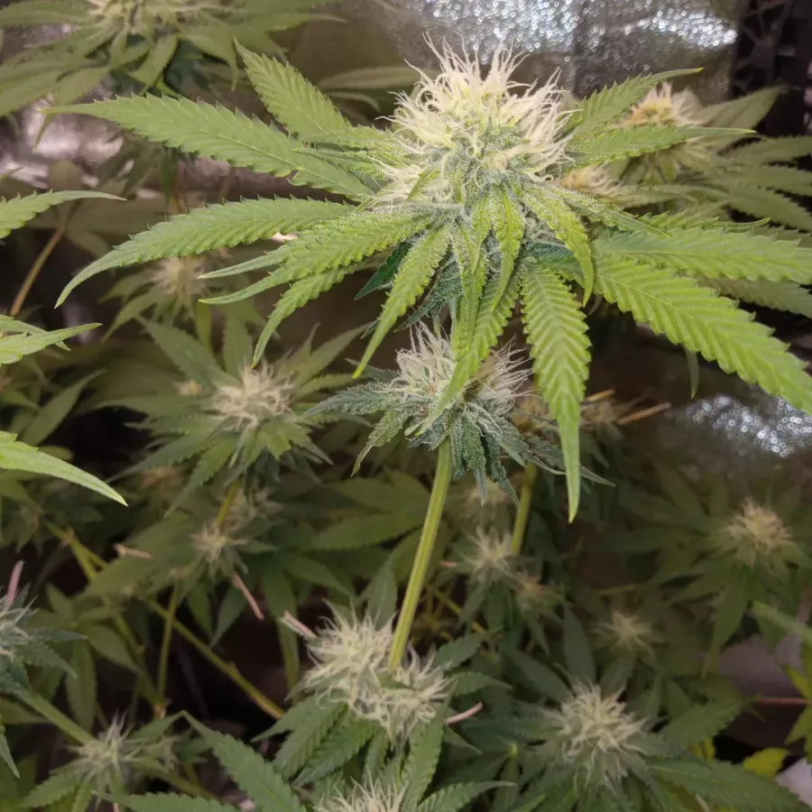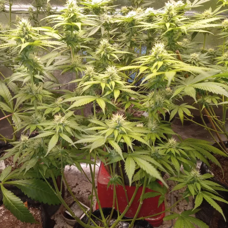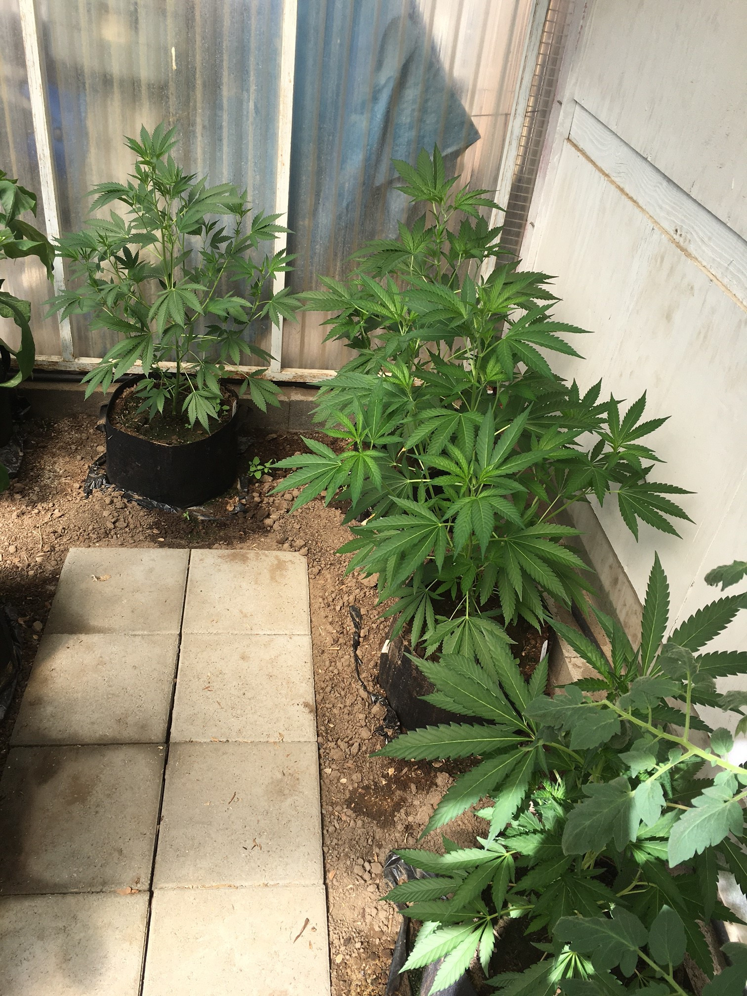I grow outdoors exclusively. Center pic is most of this year's crop a few days ago. I also have a few bag seed plants, mostly out of frame except the one runt front left. Included are Afgoo, Lemon Kush, Arjan Haze, Acapulco Gold, Bay Dream, Deadhead OG and Juicy Fruit, all feminized. All of my purchased seed germinated successfully. I gave a bunch of plants away. I have a total of 16 plants left, including the aforementioned 4 baggies, three of which are stunted but a healthy deep green. Checking every day for nuts. Don't want no boys.