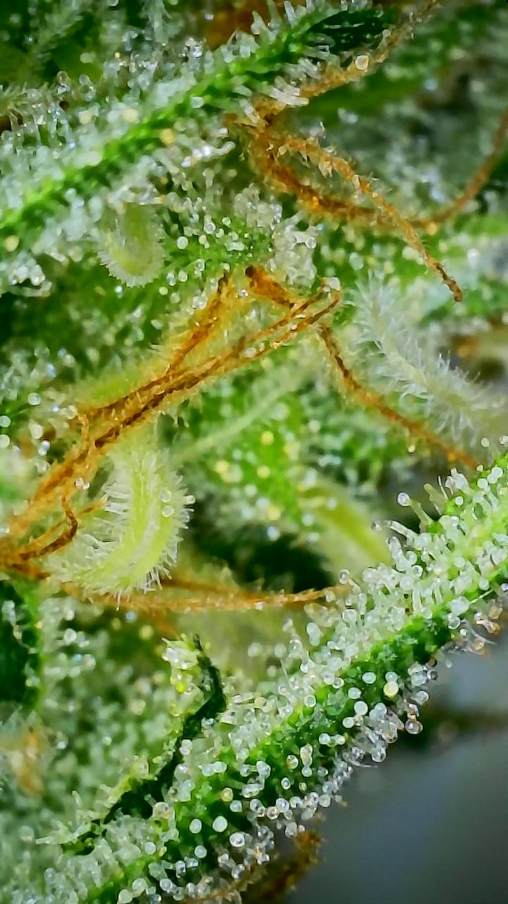 If you want Sativa (smoke that picks you up) you need to wait till the Trichomes are ‘mostly’ milky / cloudy and the red hair (70% or greater) have curled inward.