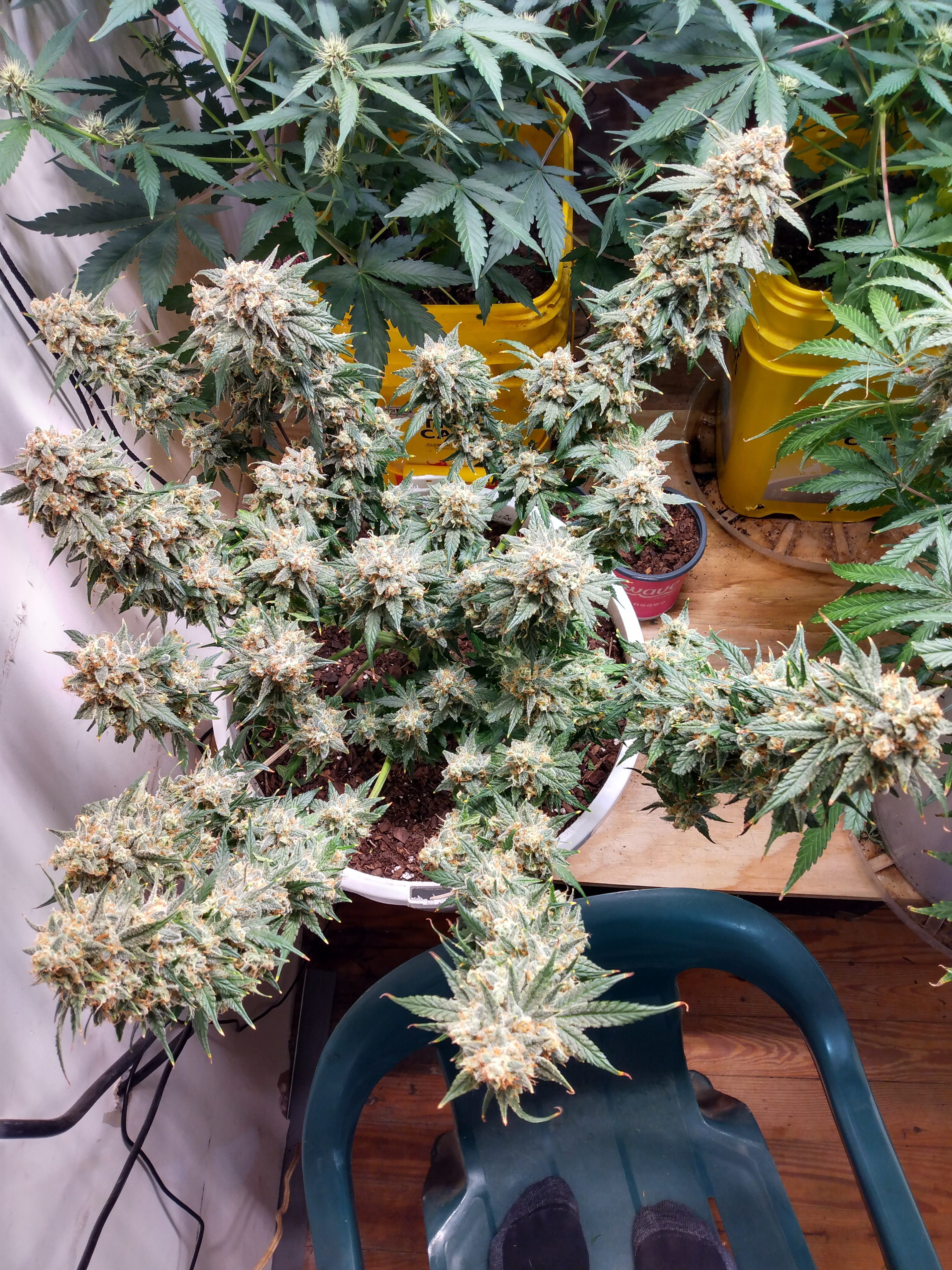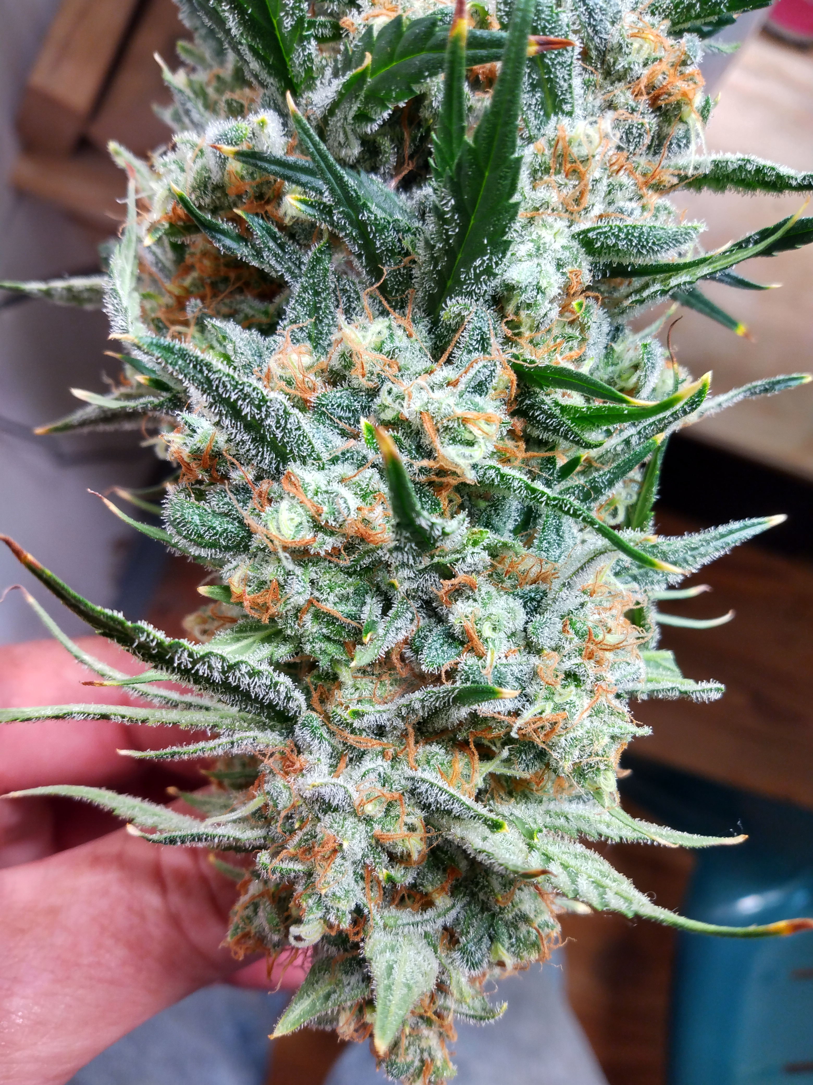 Well i harvested Mango merengue and White widow over the last few days. Mango, the bondage plant was a real pain to trim. She still has wires wrapped in the buds but i'll have to deal with those once its dry and a little less sticky. White widow on the other hand was a breeze. Really big buds on both. I'm beginning to wonder if less is more in terms of plants vs my tent..i normally grow four at a time which usually produces give or take a lb, but its also twice as much work,water and nutes. Have to wait and see how these two weigh out for a comparison. And i just put five WW clones in the tent for a quick veg..see how they look in 2 weeks, maybe flip them early and keep them smaller. probably not....lol happy growing!