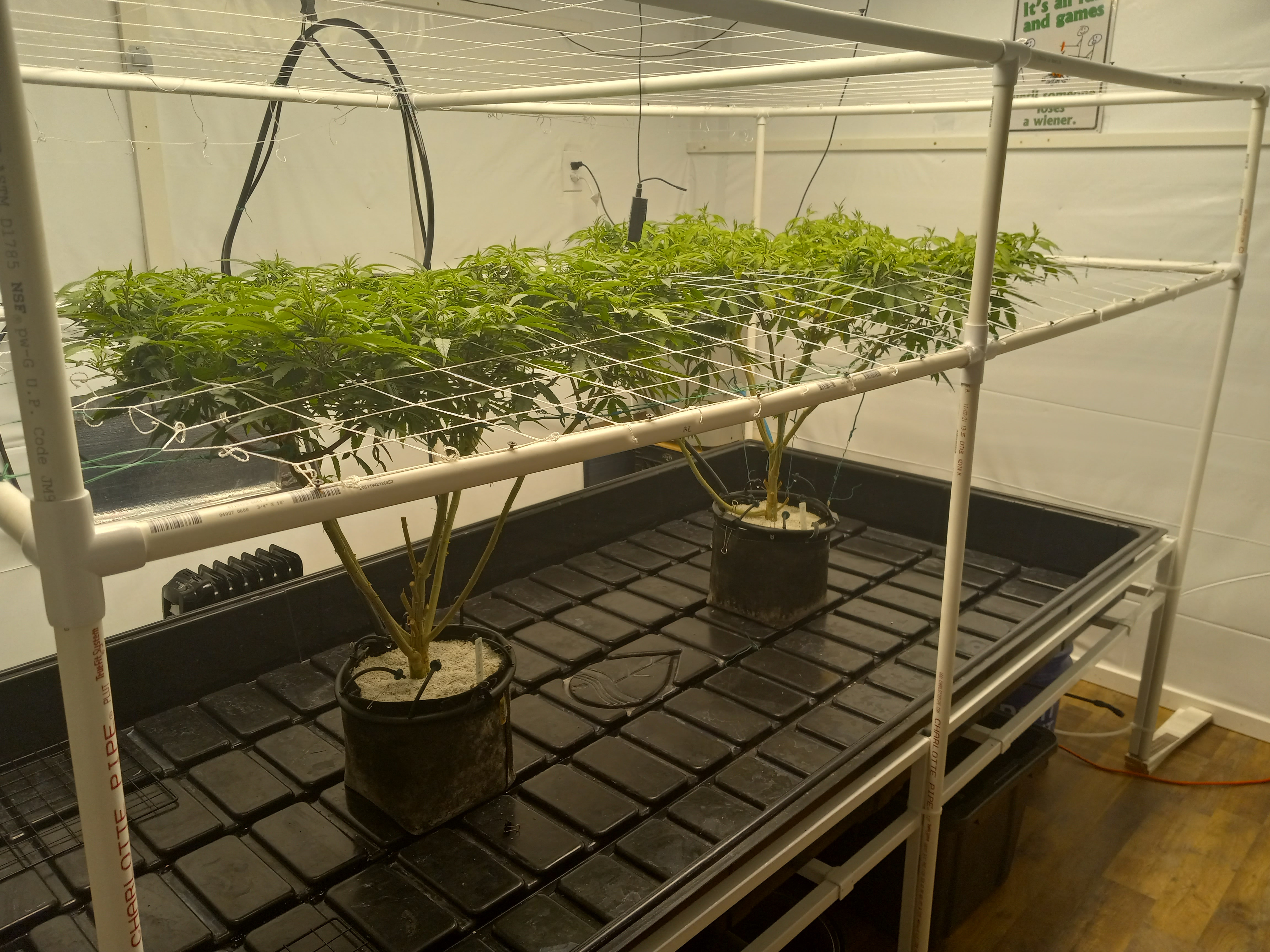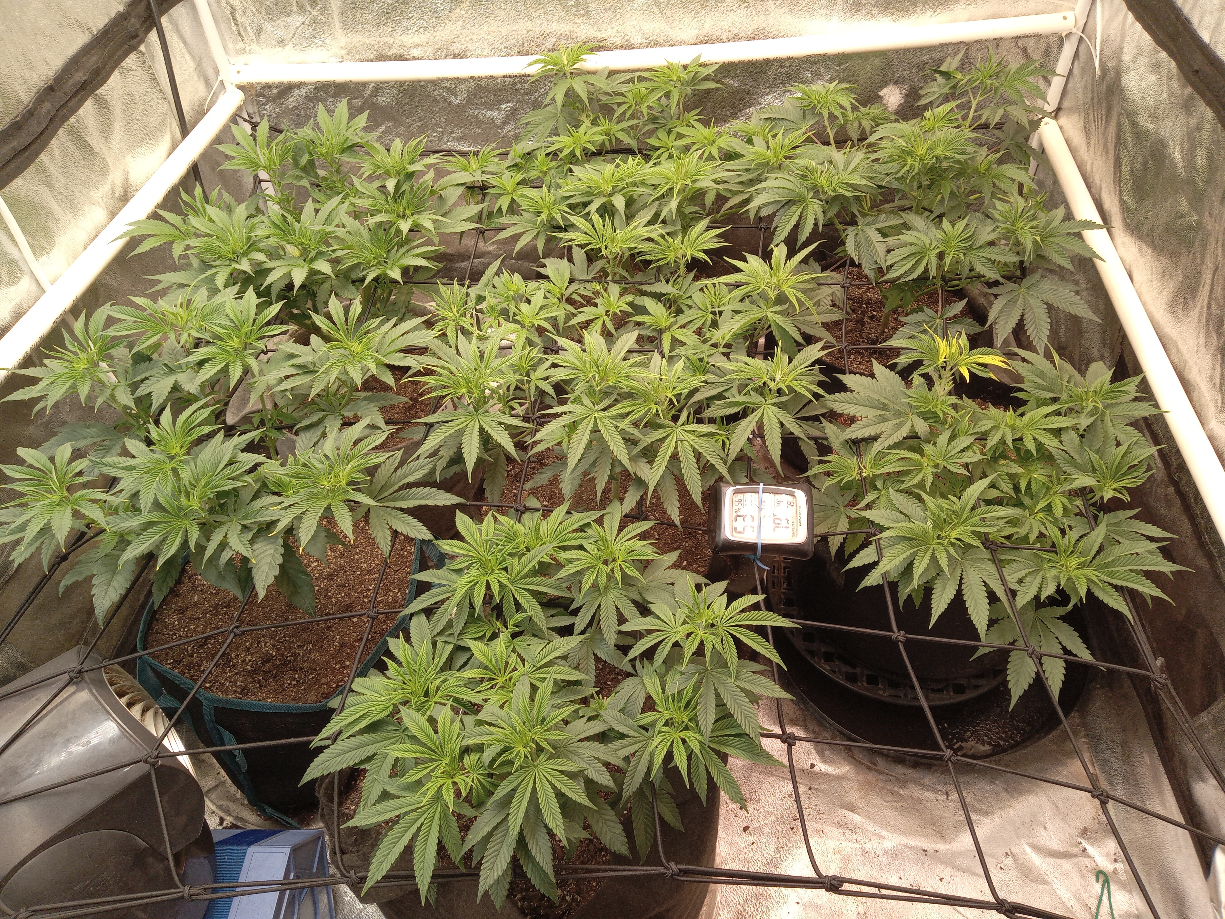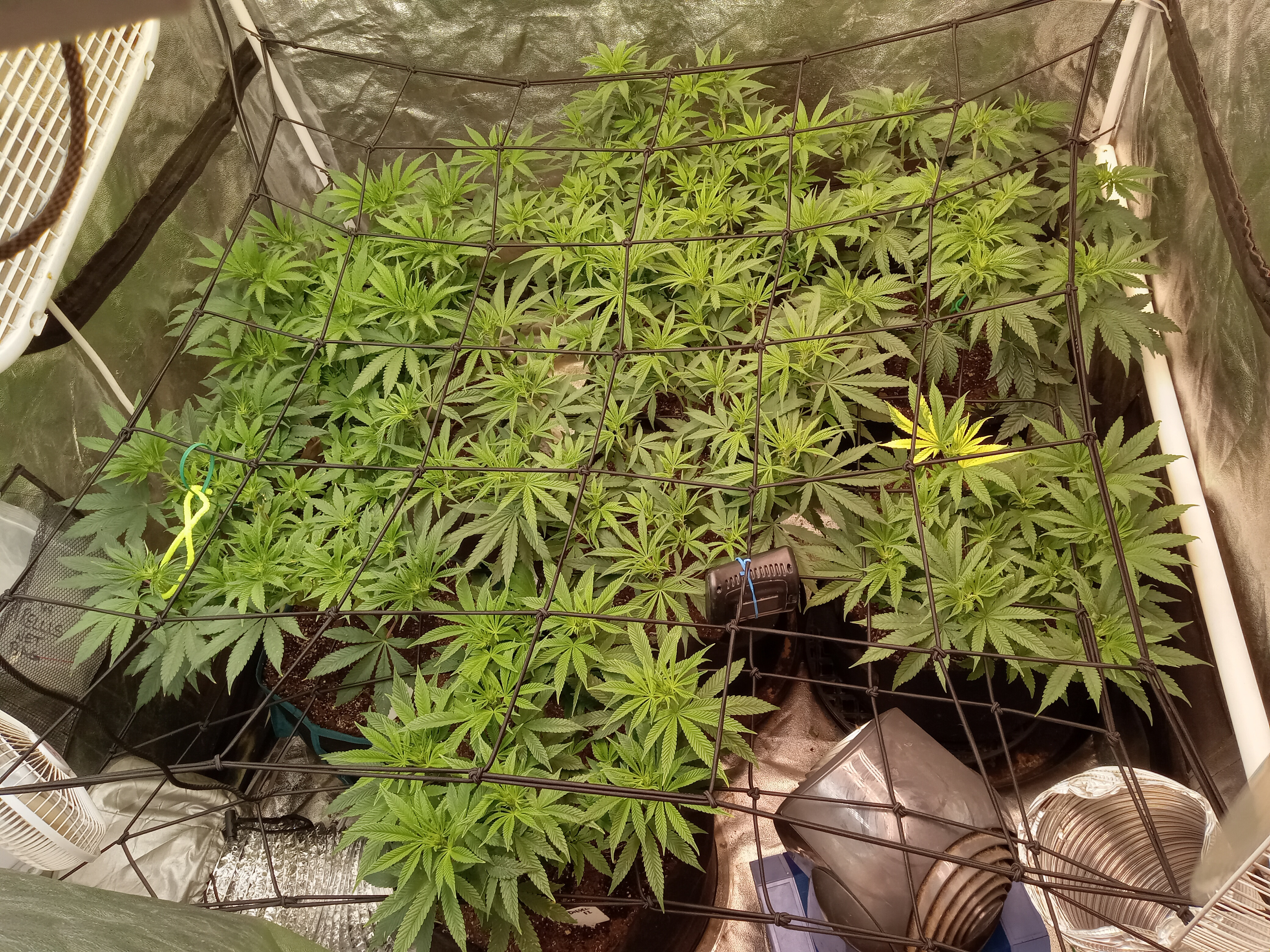 very nice clean set up. looks great. i like how you can get to your plants any where around the trellis. i have a trellis in the 4x4 and im not a fan of not being able to get to them or moving them. your isnt like that. you can move all around yours. great job