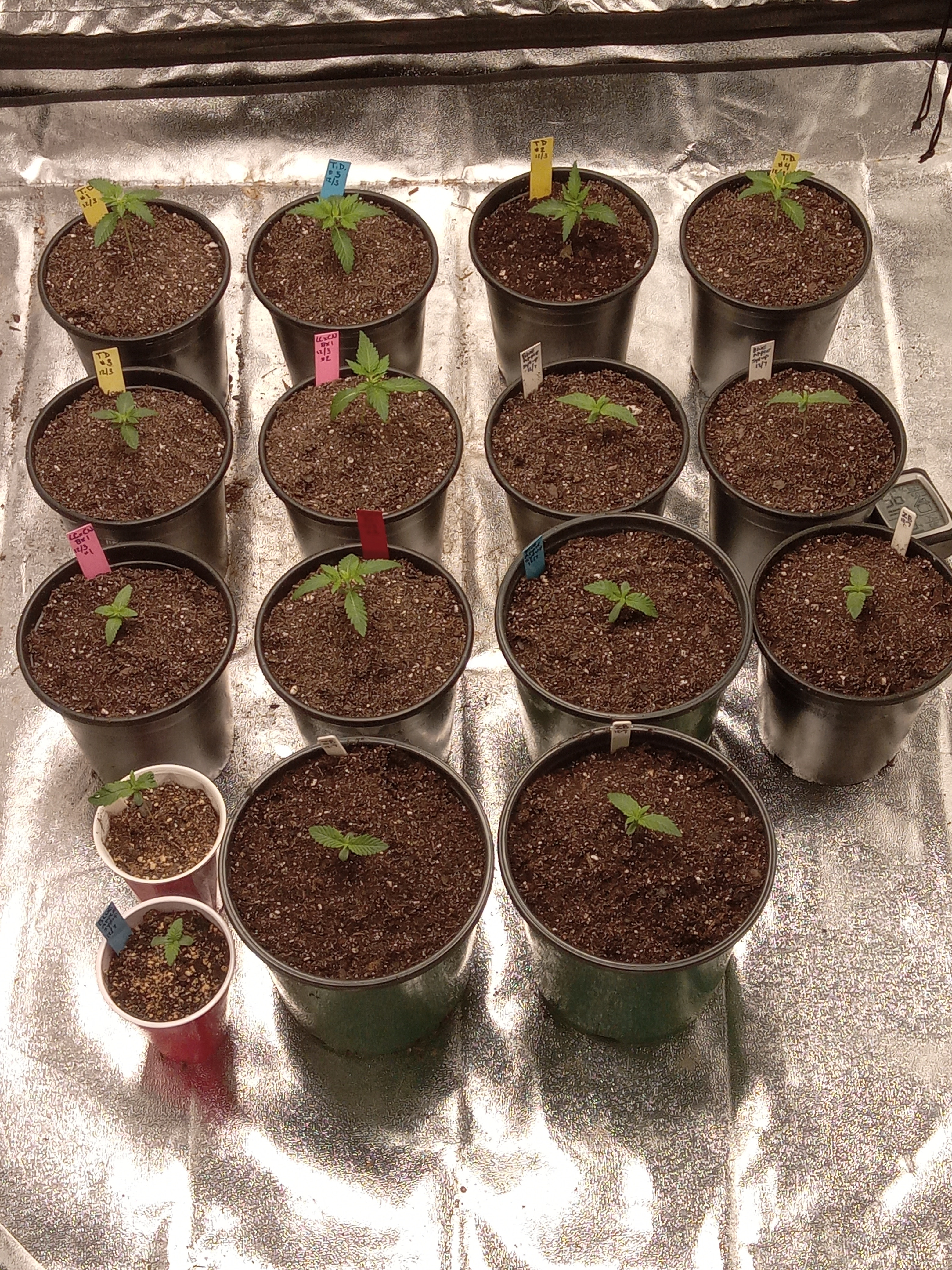 I'm going to uppot these to 1gal plastic pots and flip to 12/12 right away and try a sea of green approach.