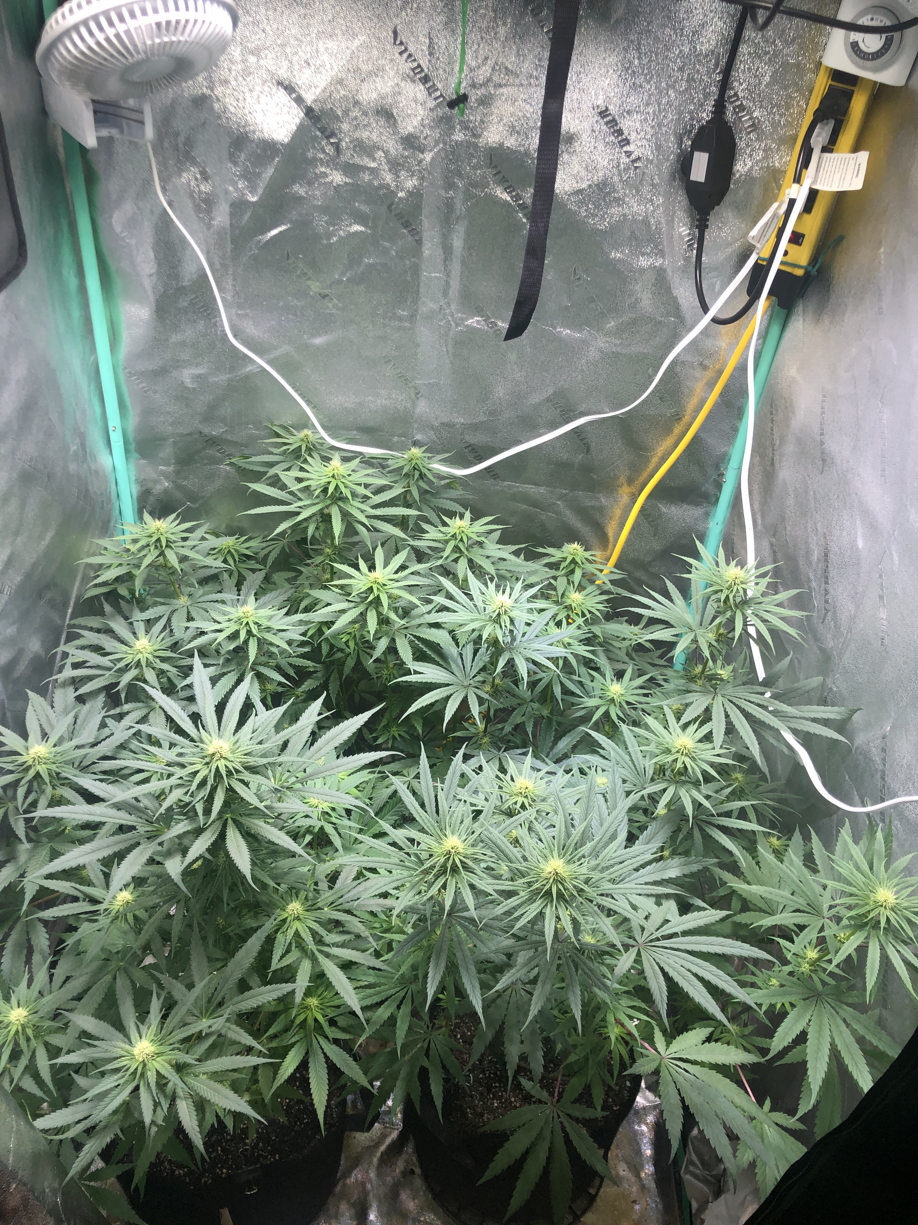 My tent today just before and after lights on. Budlets are forming so they’re just about start flowering.