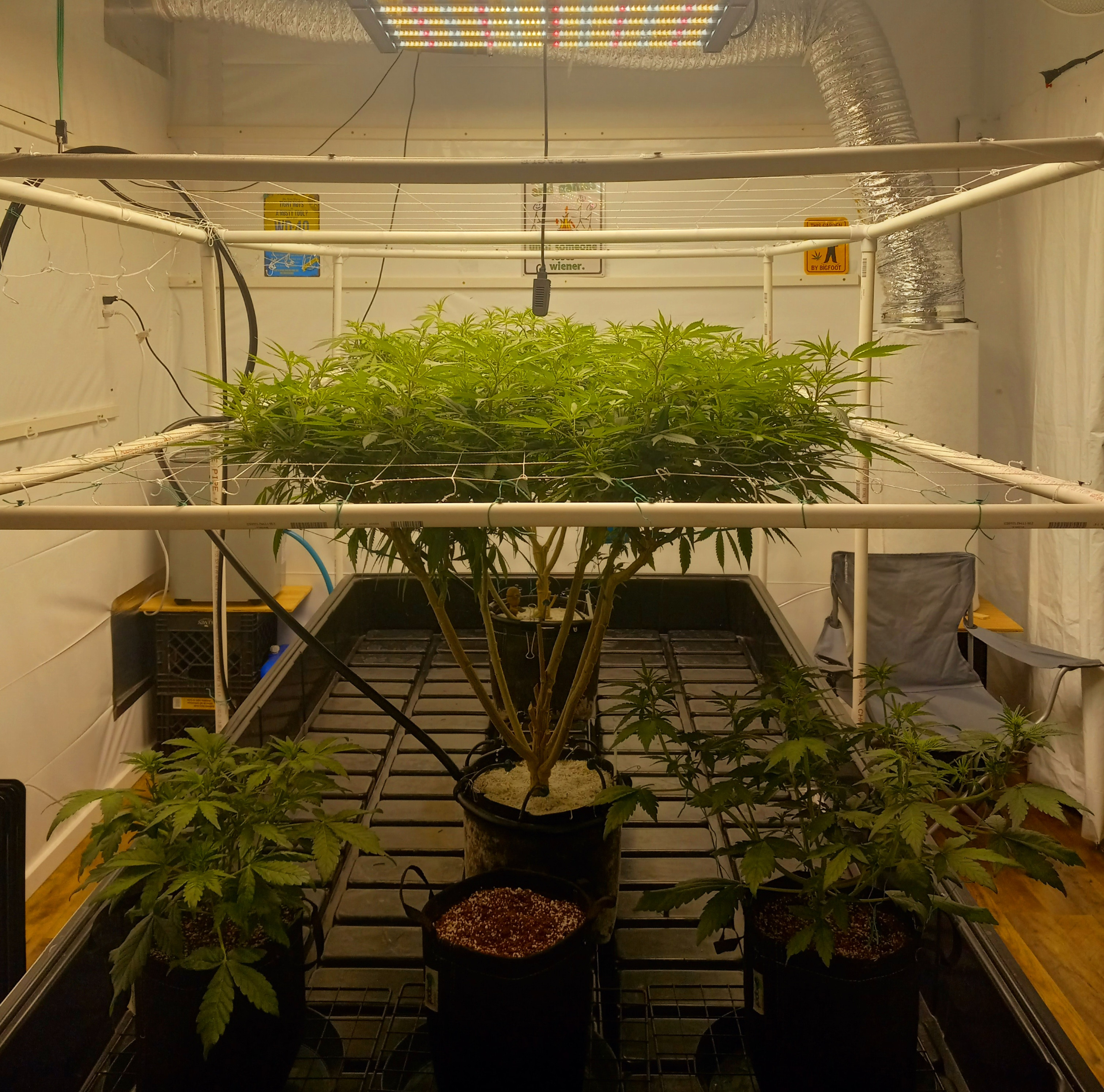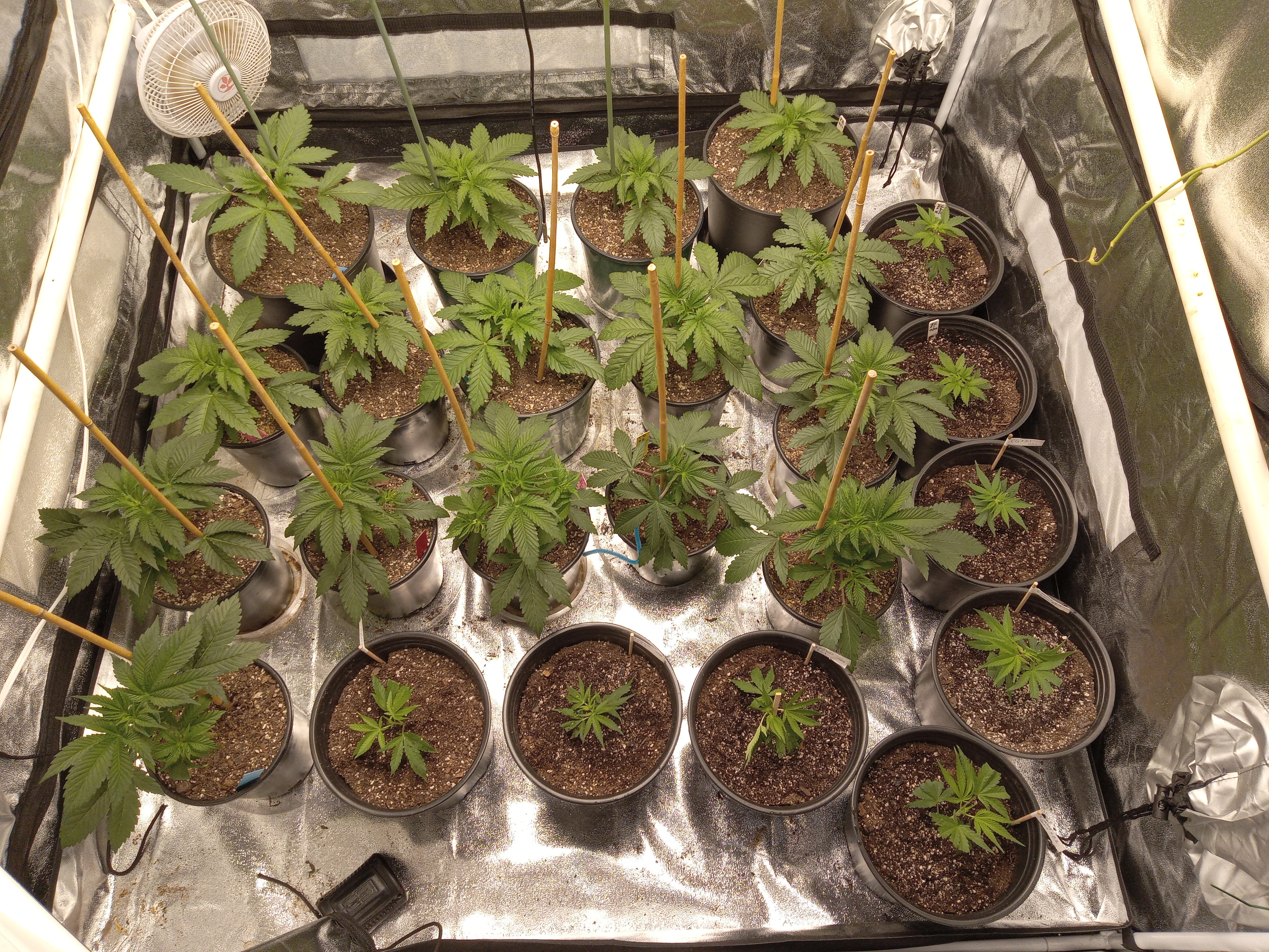 What I'm thinking of doing with the ones in the 1 gallon pots is to keep them trimmed pretty tight so most of the energy goes into the top 5 colas, which should help them get a little taller and take up less space. Basically each plant would only have 7-8 branches on the top half and nothing below. The other four gallon plants I'll top 1x and LST. Any thoughts appreciated!