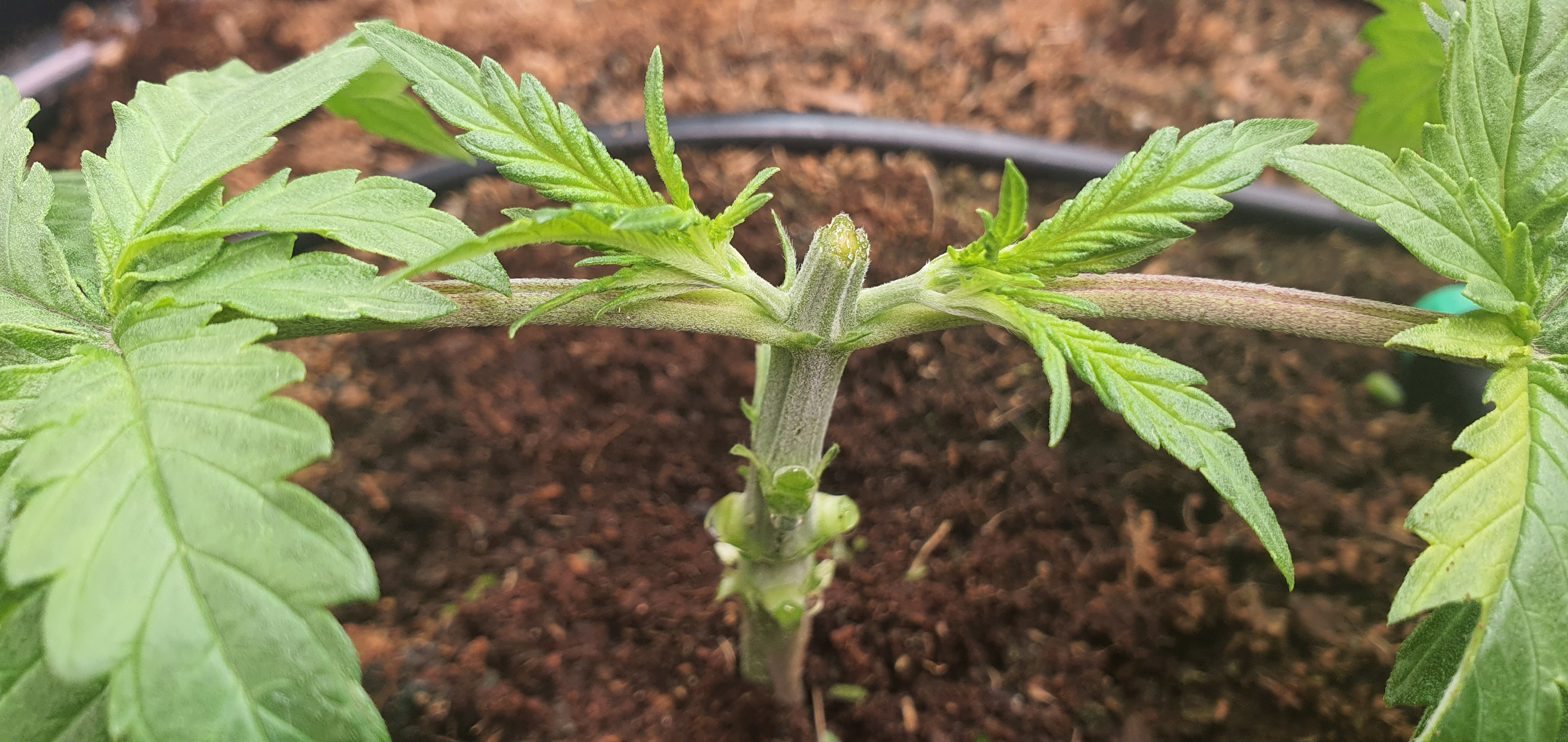 Seven pots, at least 3 different strains inc a random seed sprouting, must have planted last crop and it remained dormant, survived tilling and washing the used coco, in the pot with twins, both only just surviving, the other 6 doing well and 10 times their size.