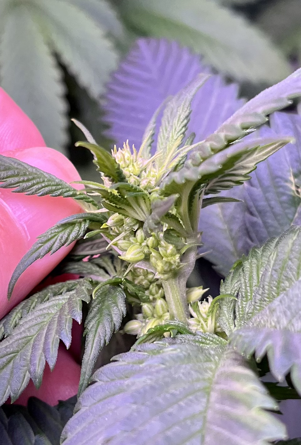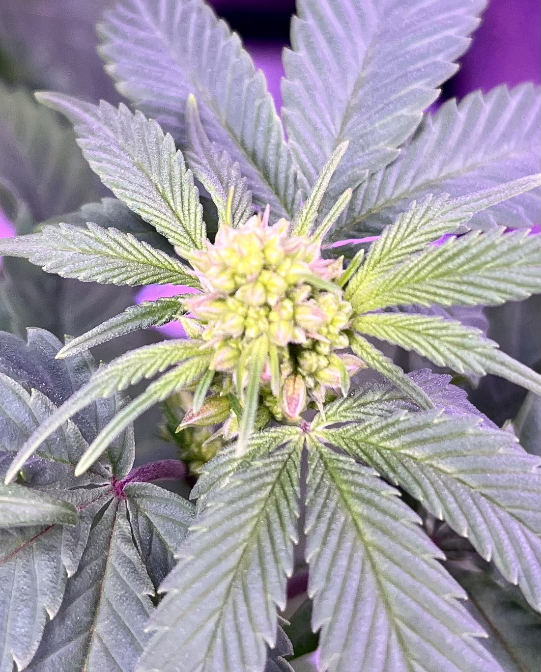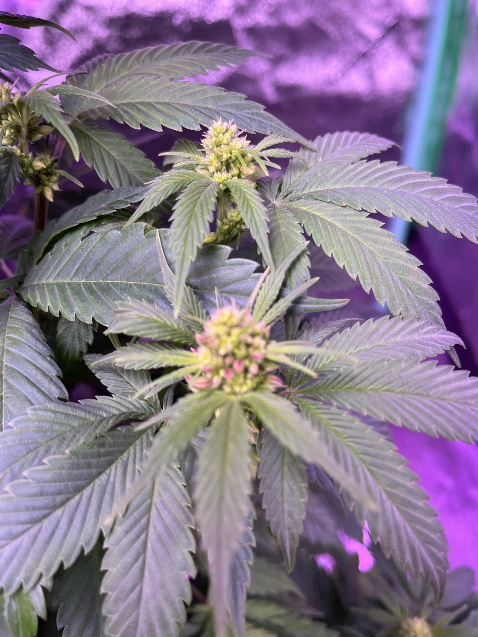 Last of my Grand Daddy Purple photos. Looks like no. 2 is a runt. Don't usually do three at a time but did a seed starting test and no. 0 is the test standard. Growing in ProMix BX and using fortified Miracle Grow veg and bloom buster nutes later on. New light a SONLIPO SPF2000 it has better coverage than the VIPARSPECTRA P1000 I was using, it's in the smurf tent now. The new one has a 120w veg light and two 50 watt red lights that can be switched off. Growing in my 32x32x60" tent.