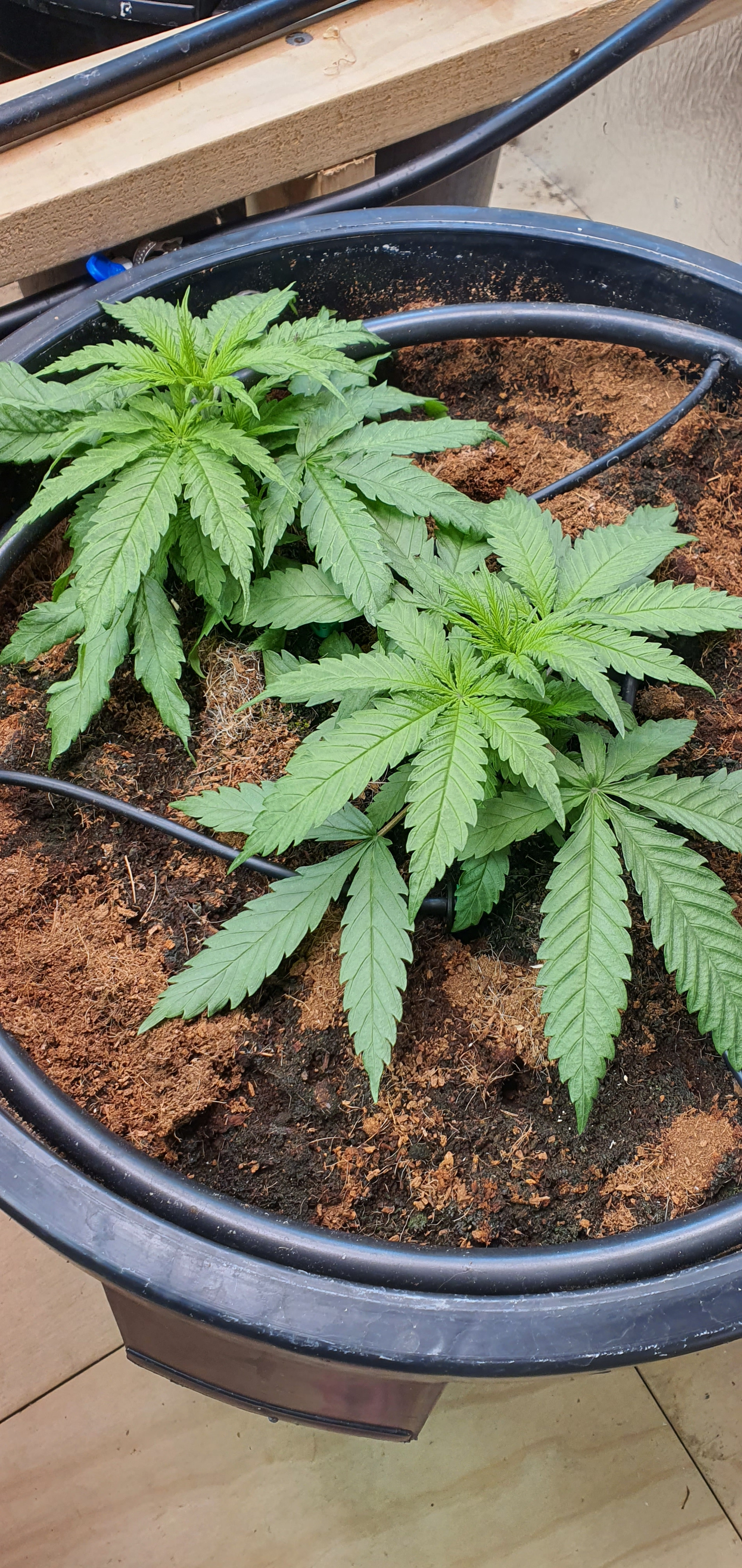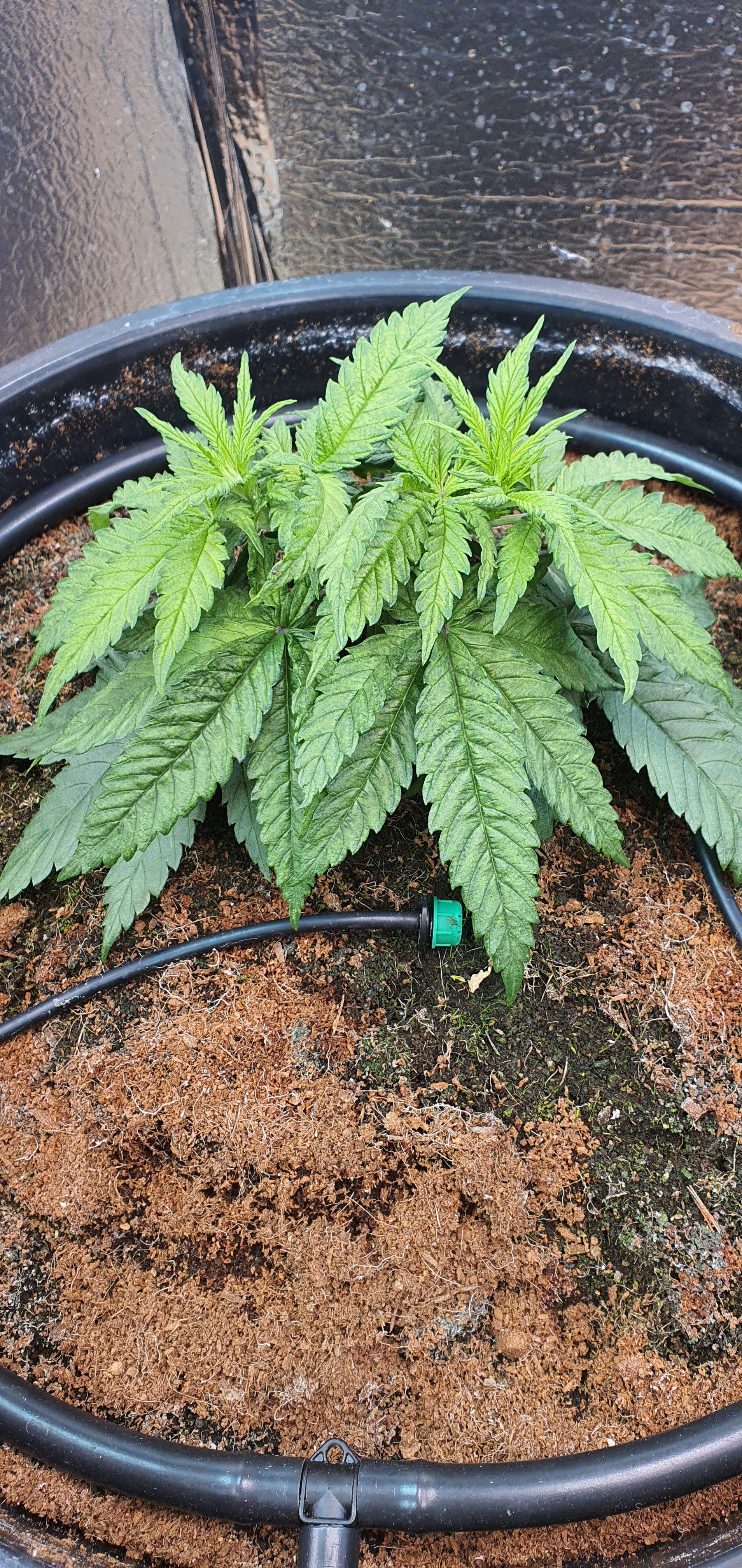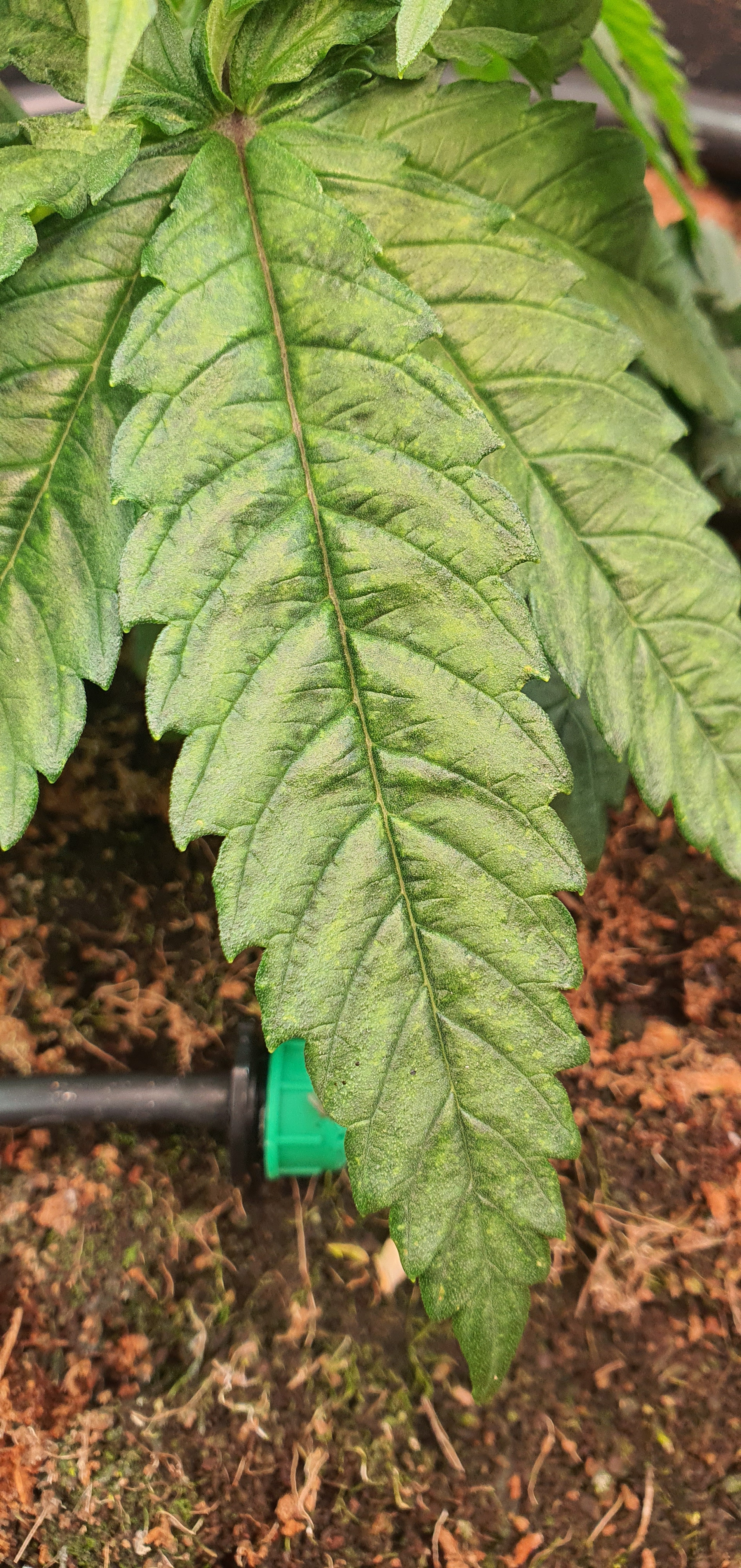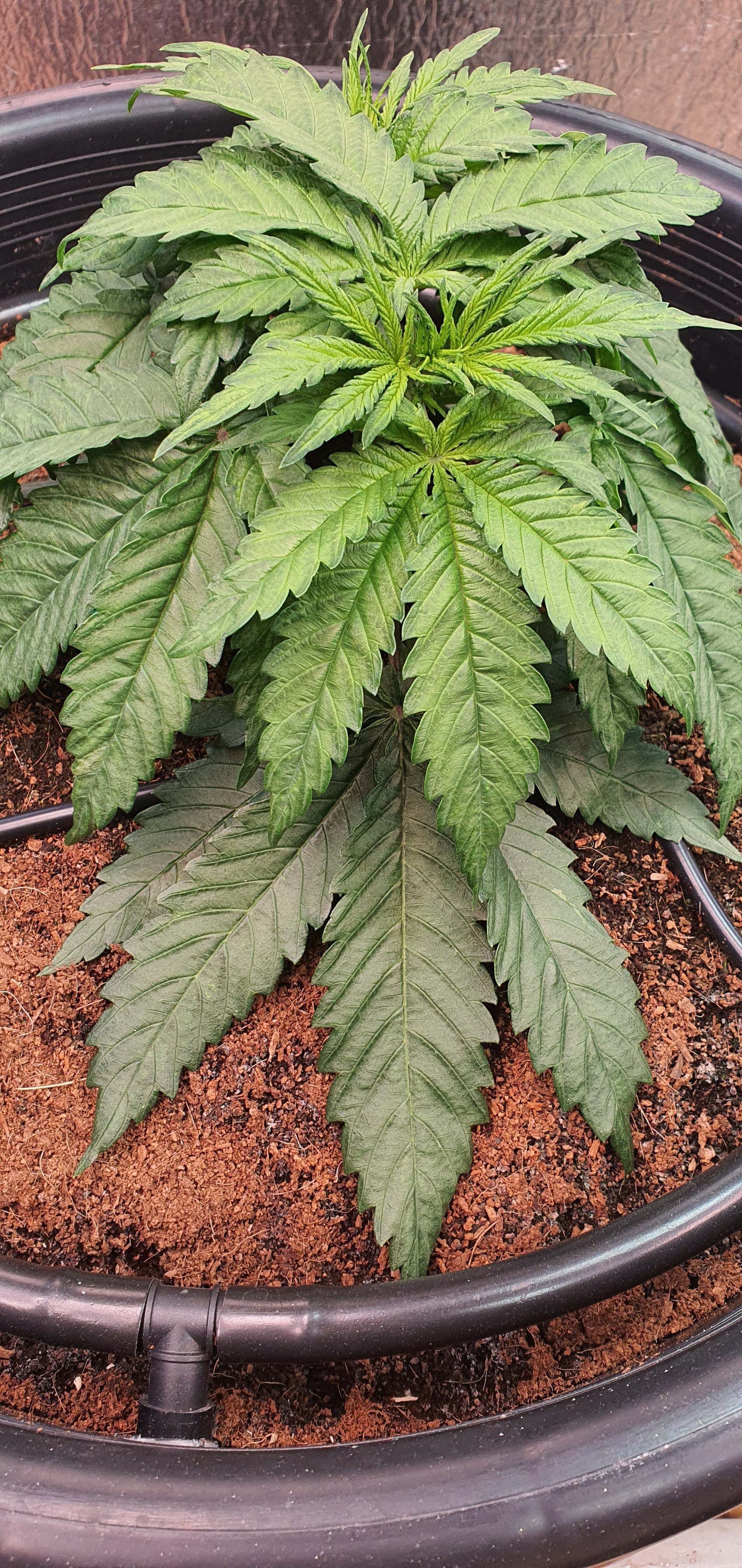 Bottom large leaves touching coco to be trimmed in 2 days and possibly 2nd top.