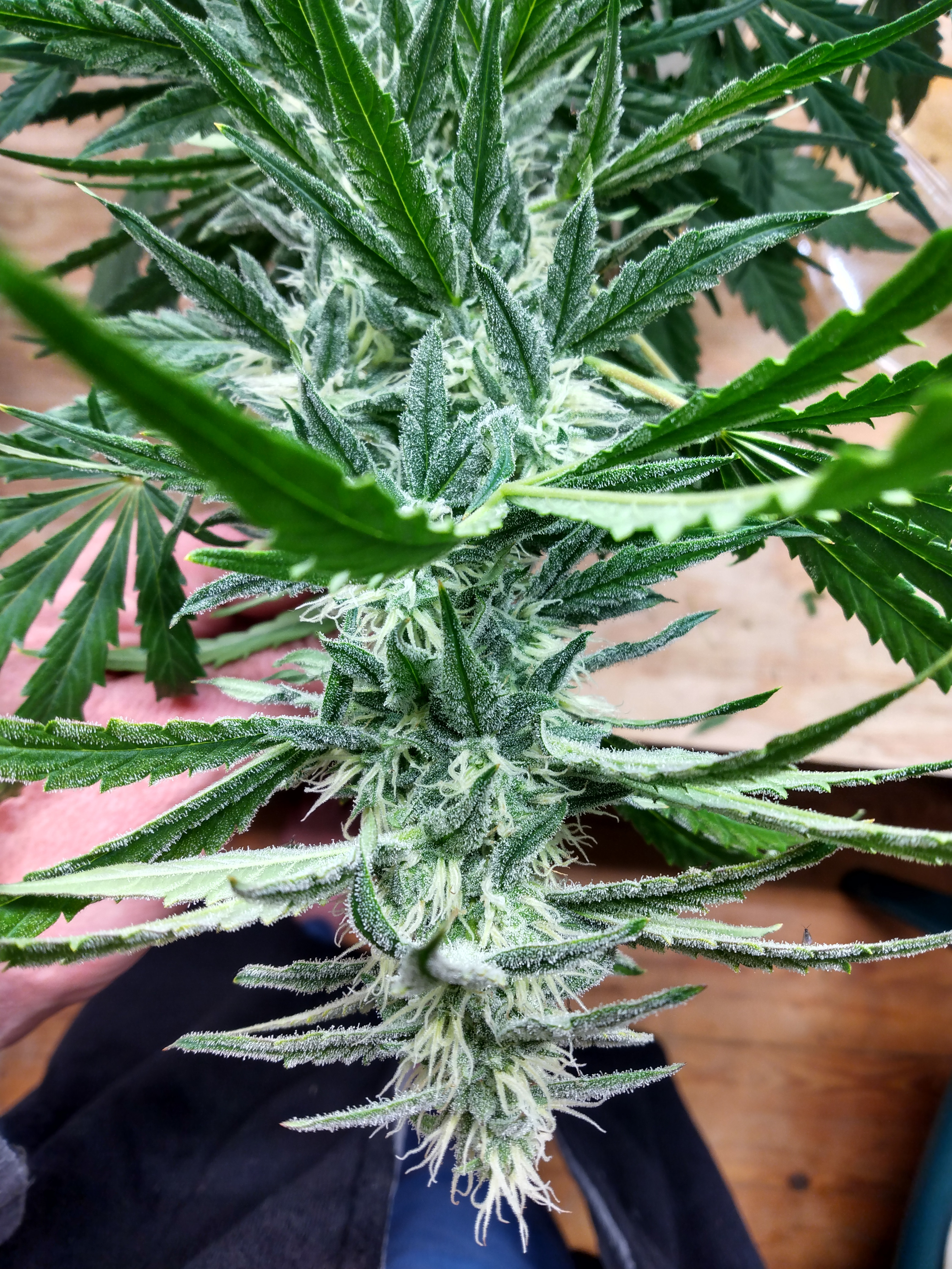 Ok it's going to be a bitter cold weekend for many of us on the eastern part of the us. Therefore I believe y'all will have plenty of time to be taking pics of y'all's grows. Westerners can join in too. Let's see some weed porn. Here's my hubbabubbasmelloscope at 63ish days. She's a cross of the original 90s bubblegum cut from Serious seeds. Been a pain in the ass since she started flowering. Mephisto warns she can be finicky. Light burn and starving for k. But soo worth the trouble. She smells just like bubblegum and overpowers everything else in the room. Heavy drinker like galaxy.keeping it green with the soil thing