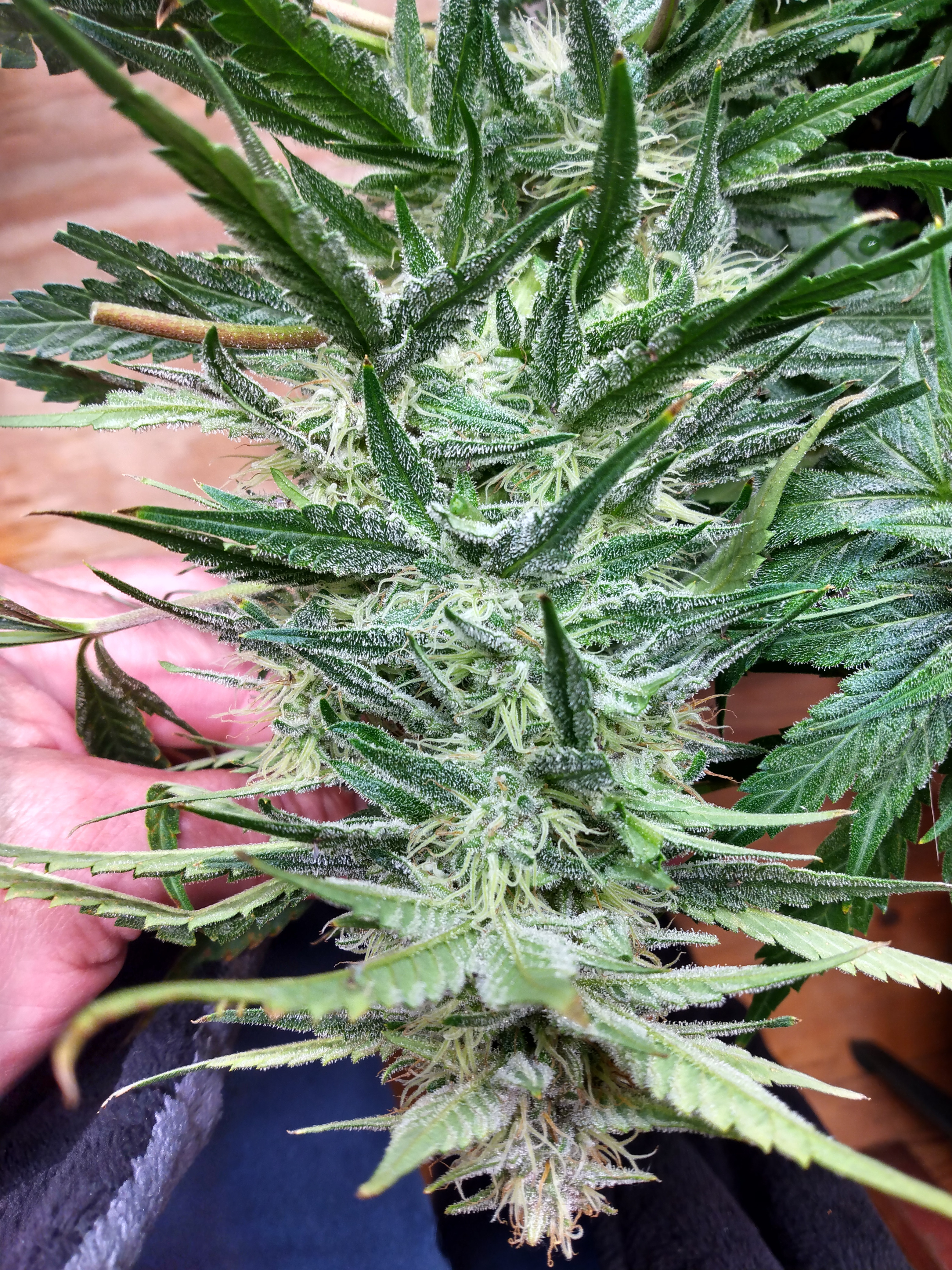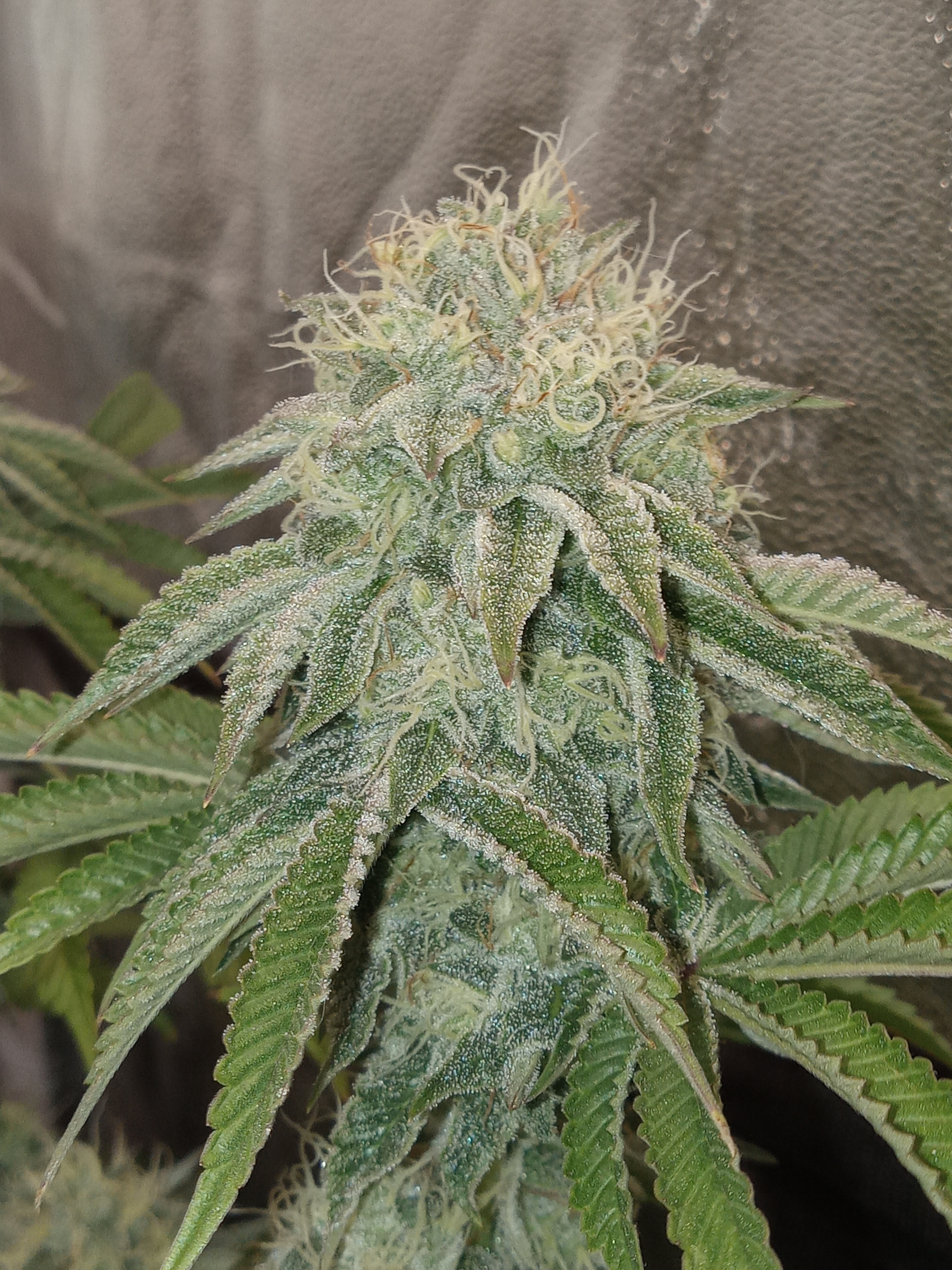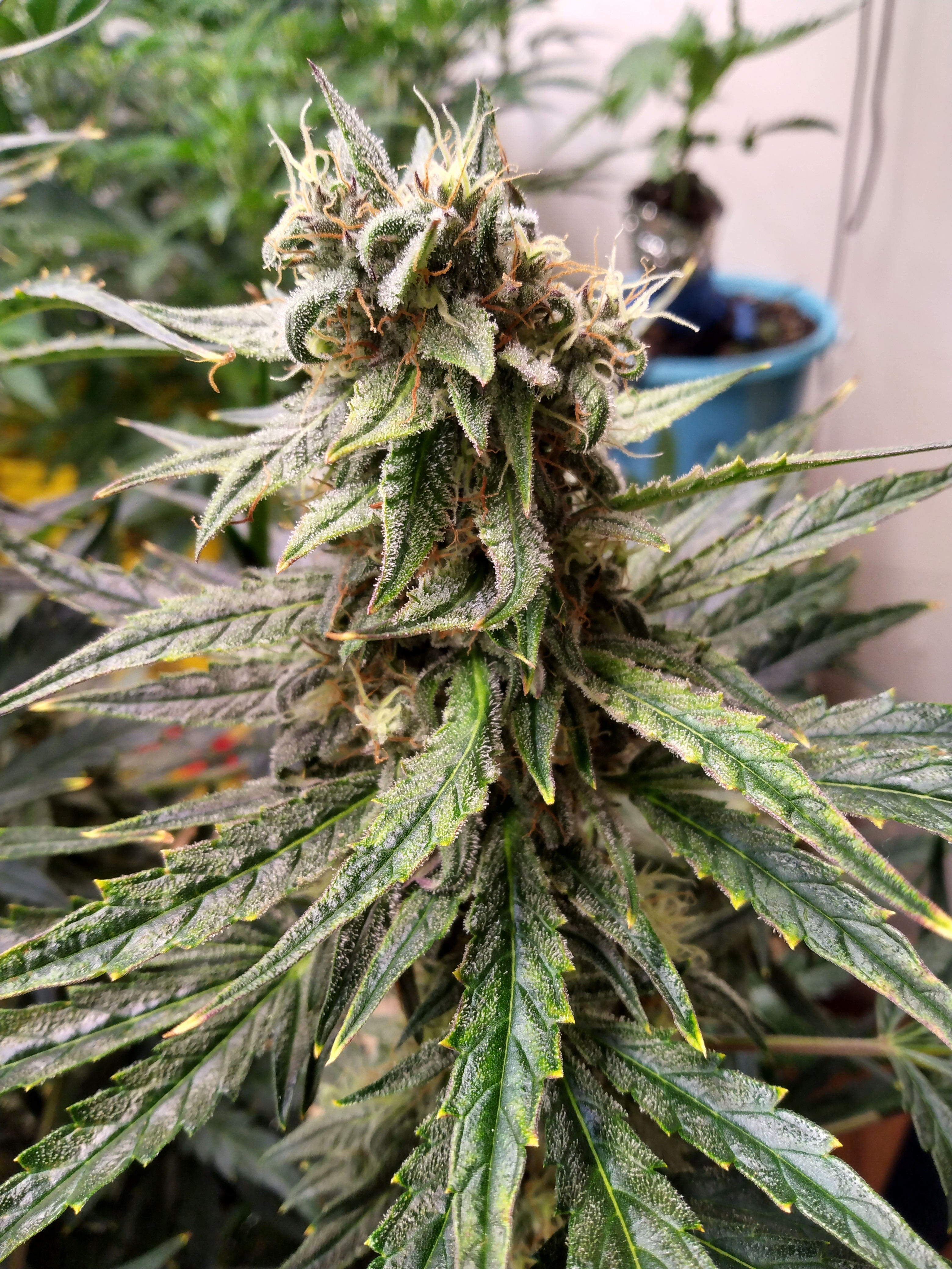Ok it's going to be a bitter cold weekend for many of us on the eastern part of the us. Therefore I believe y'all will have plenty of time to be taking pics of y'all's grows. Westerners can join in too. Let's see some weed porn. Here's my hubbabubbasmelloscope at 63ish days. She's a cross of the original 90s bubblegum cut from Serious seeds. Been a pain in the ass since she started flowering. Mephisto warns she can be finicky. Light burn and starving for k. But soo worth the trouble. She smells just like bubblegum and overpowers everything else in the room. Heavy drinker like galaxy.keeping it green with the soil thing
