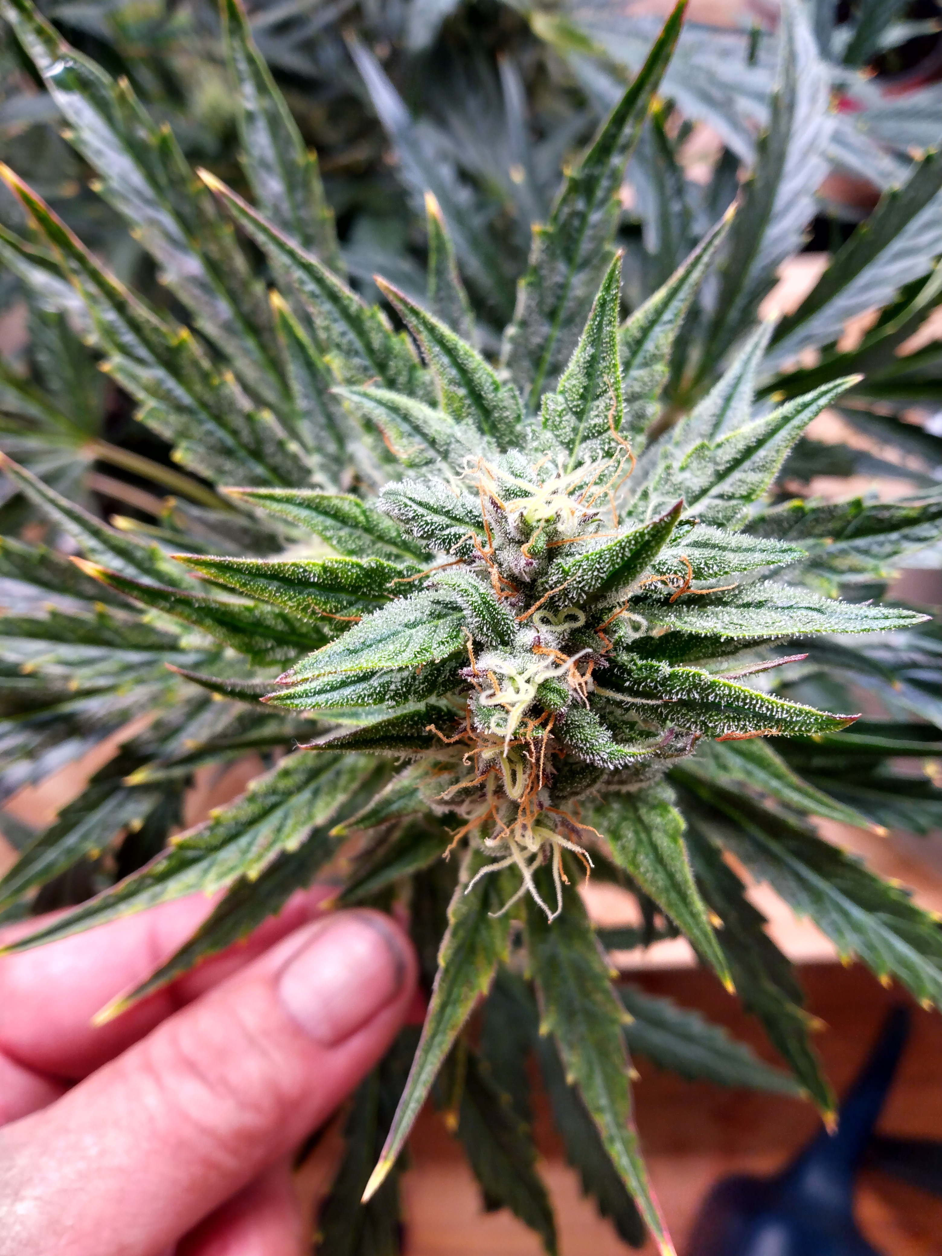 ID:	587990 Blueberry passion from Rocbud at 64 days. Stout indica growth like strawberry nuggets. Been another troublesome plant since early on. Nitrogen toxicity and waited too long to remedy. My bad on that. Stacking on the flower now and smells like blueberry candy. One thing for sure about Rocbud if it's named something he's not just chucking a flavor of the day at it . It's the real deal. Razzberry runtz Click image for larger version