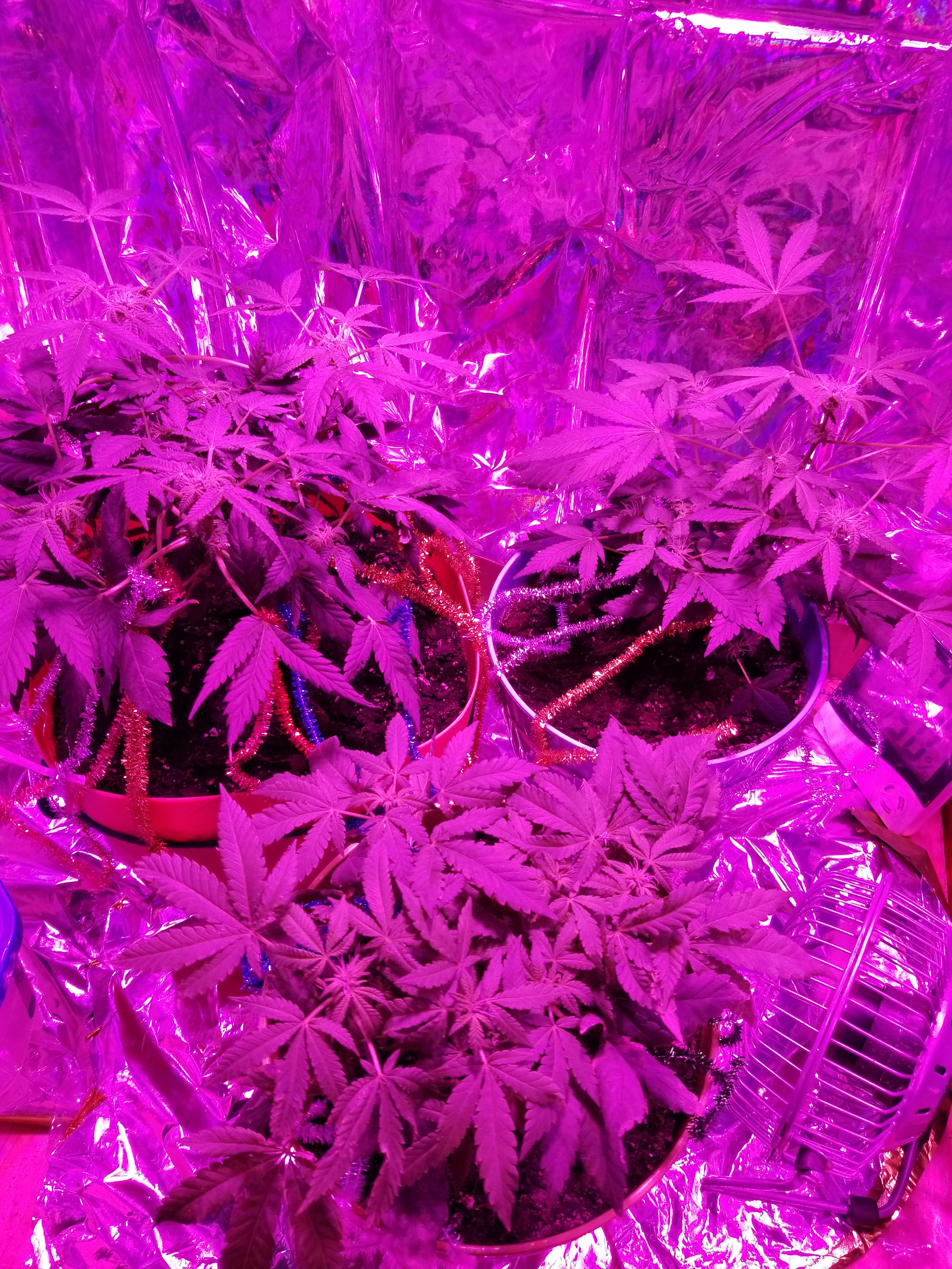 Second grow is leaps and bounds ahead of 1st. Im just letting the 2 auto's do their thing..a little defol here and there but for the most part just give them light and nutes. The 3 photo AK-47 clones on the other hand have been a bit of work. Flipped them on Nov 4, did a major defoliate about 2 weeks in and just trimmed them again tonight. I think with the extra heavy trimming and LED lights set super low, buds are gonna be MUCH bigger than the original plants...Hoping so anyway!11 PhotosShappel S3000 3.5x6x6' ice hut