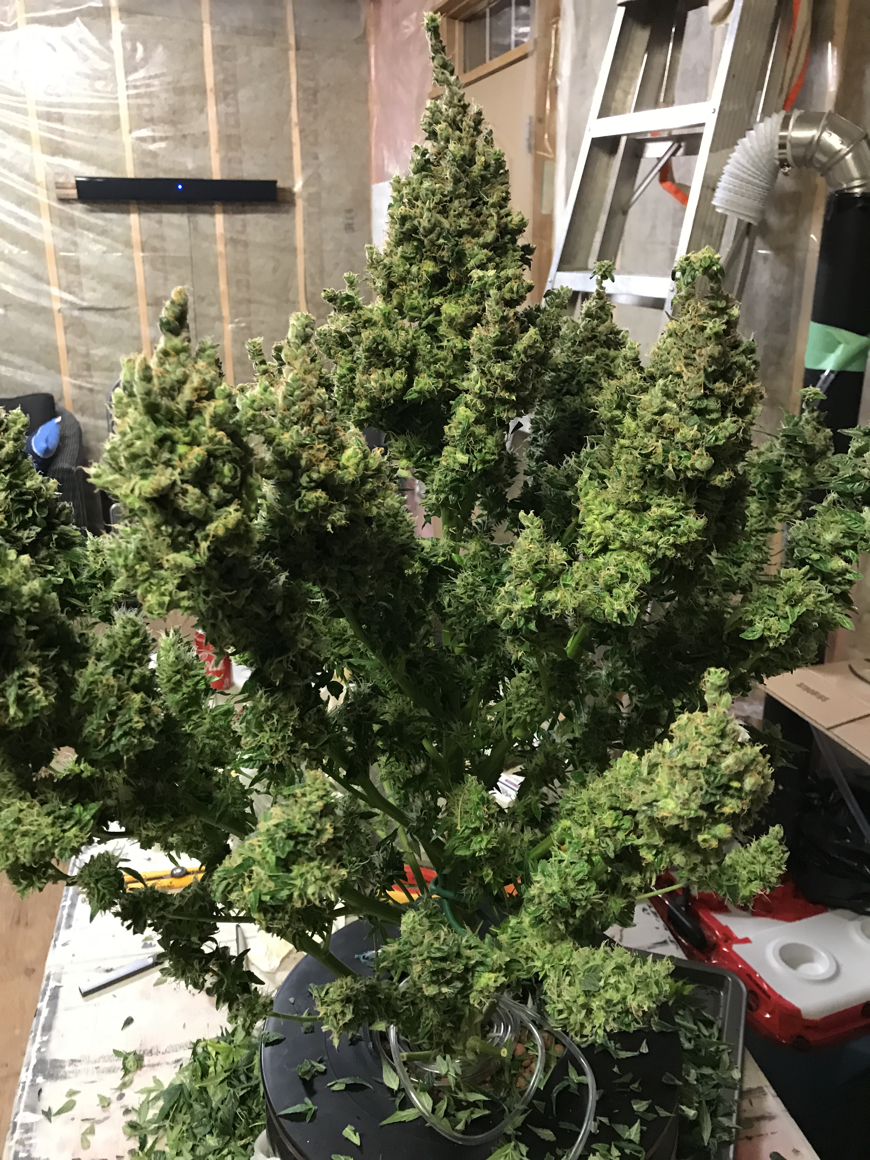 I did the same thing on my last harvest, YYCannabis. At least to Big Bertha. It saves a lot of touchy feely. I also hold stems when I trim so I'm not knocking off trichs.