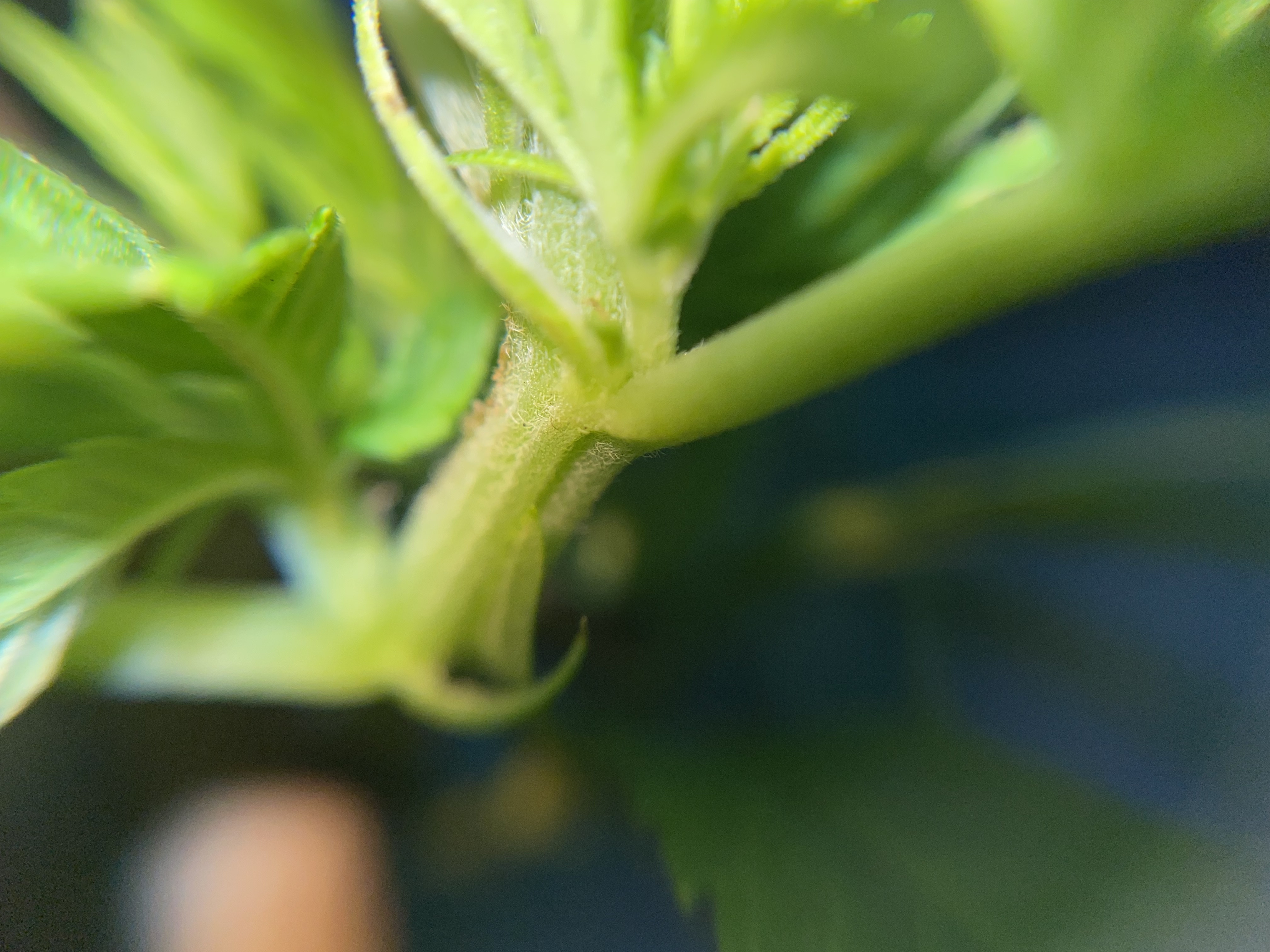 First 3 are pre-flowers found 15 minutes ago~ zoom in and if you can’t see them you need to do a pre sex update! This is how early it stars and they won’t show to naked eye properly for another week. It’s actually flowering early than I want… but hopefully it’s just grows big and juicy it’s in a airpruning pot/homemade. Drilled holes it’s working I can see root clumps happening and the growth is good starting to see it wanting to stretch when the flowers start properly and the veg stage goes to flowering.