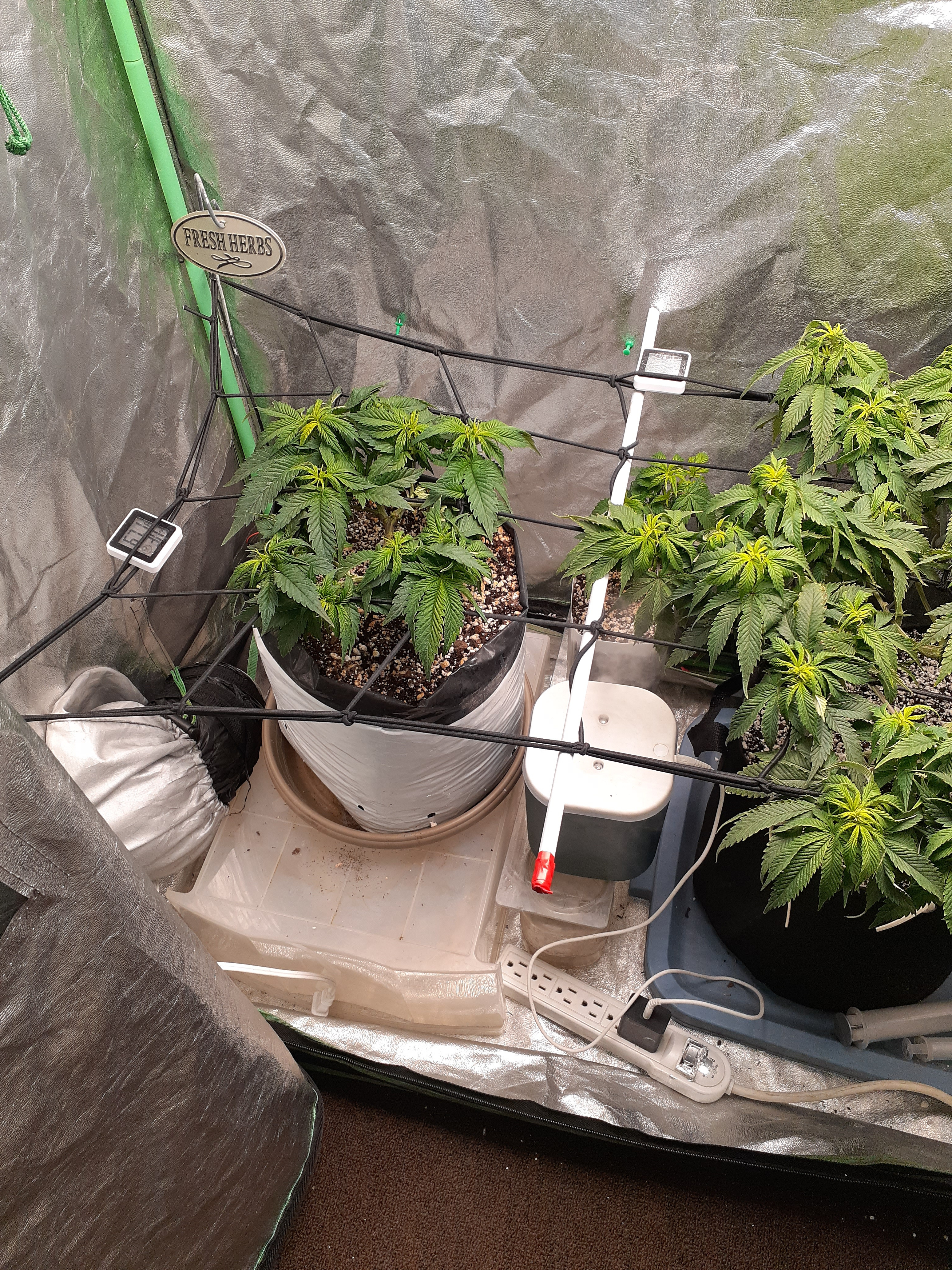 Front right was chemically topped at the first node. Healthy but slow. Most bud sites because of topping.
