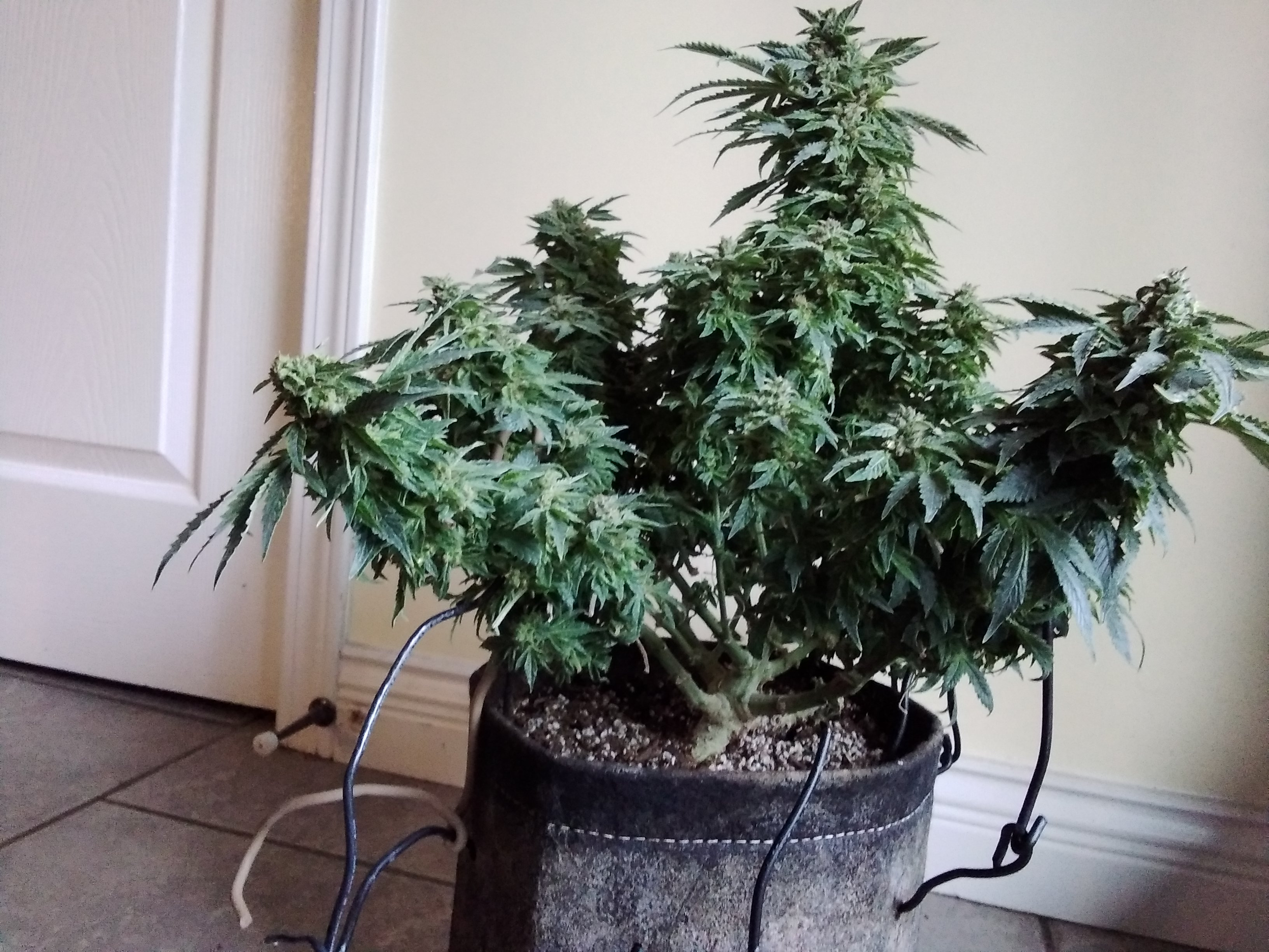Sorry it's been a crazy week. I will post more pics, but HGK recovered, thank God. BUT: Auto Diesel developed root rot. I came home and the room STUNK. I pulled the cup and it was black slime. Since it's an auto, already stunted from calcium deficiency early on, and now this, no time to recover, AND, I got way too much shit started, AND, we're getting ready to start clone off and solo grow, which I'm going to do a few of both as a joint project, meaning I'm going to do clones, and then run some of them in solos (easy excuse to sex my new seedlings). All that to say "bye AD", I'm not going to bother recovering her. Sorry.