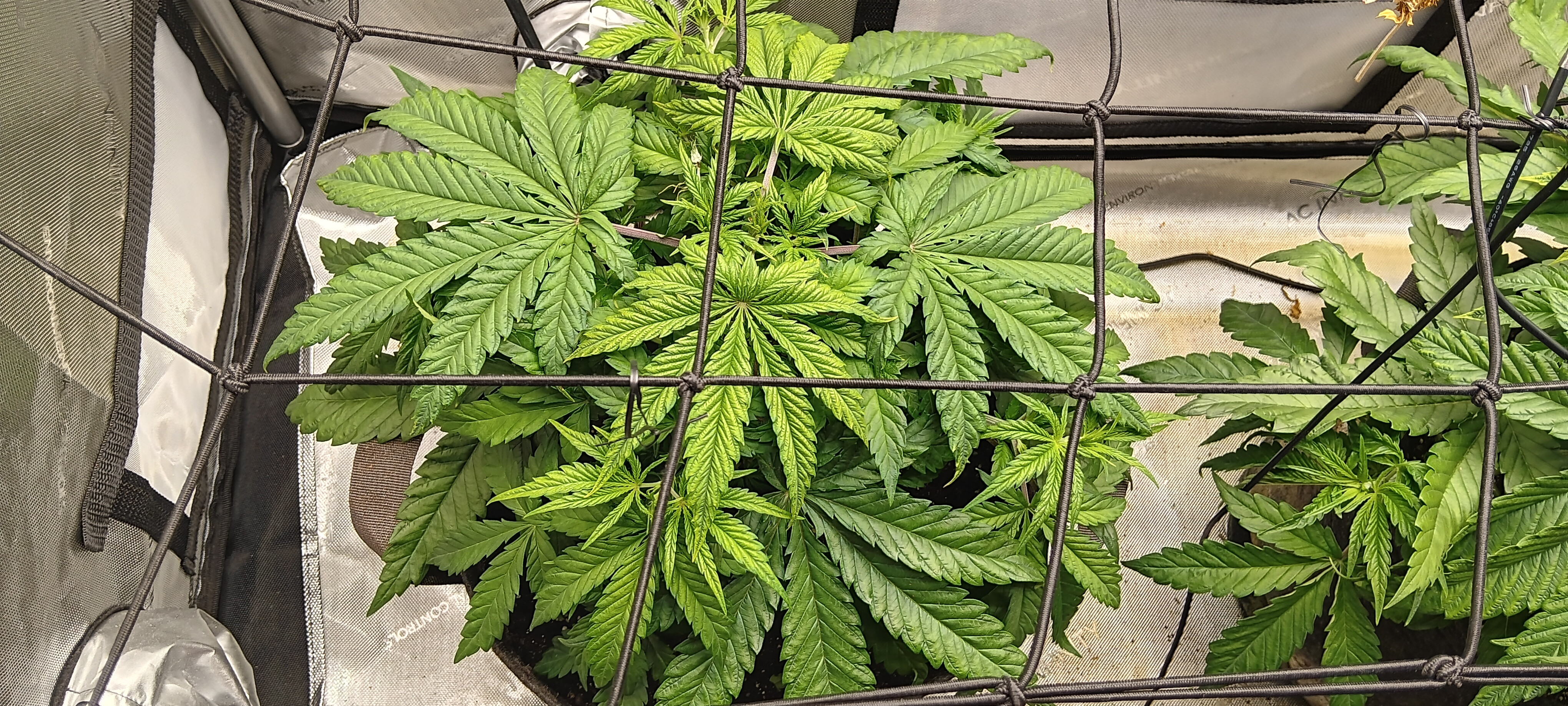 Starting week 3 since flip today. Budlets everywhere. Took the structural net out to let them stretch for week 3. I'll help them again as needed now. Seed mom is a tank. Vegging since Dec.