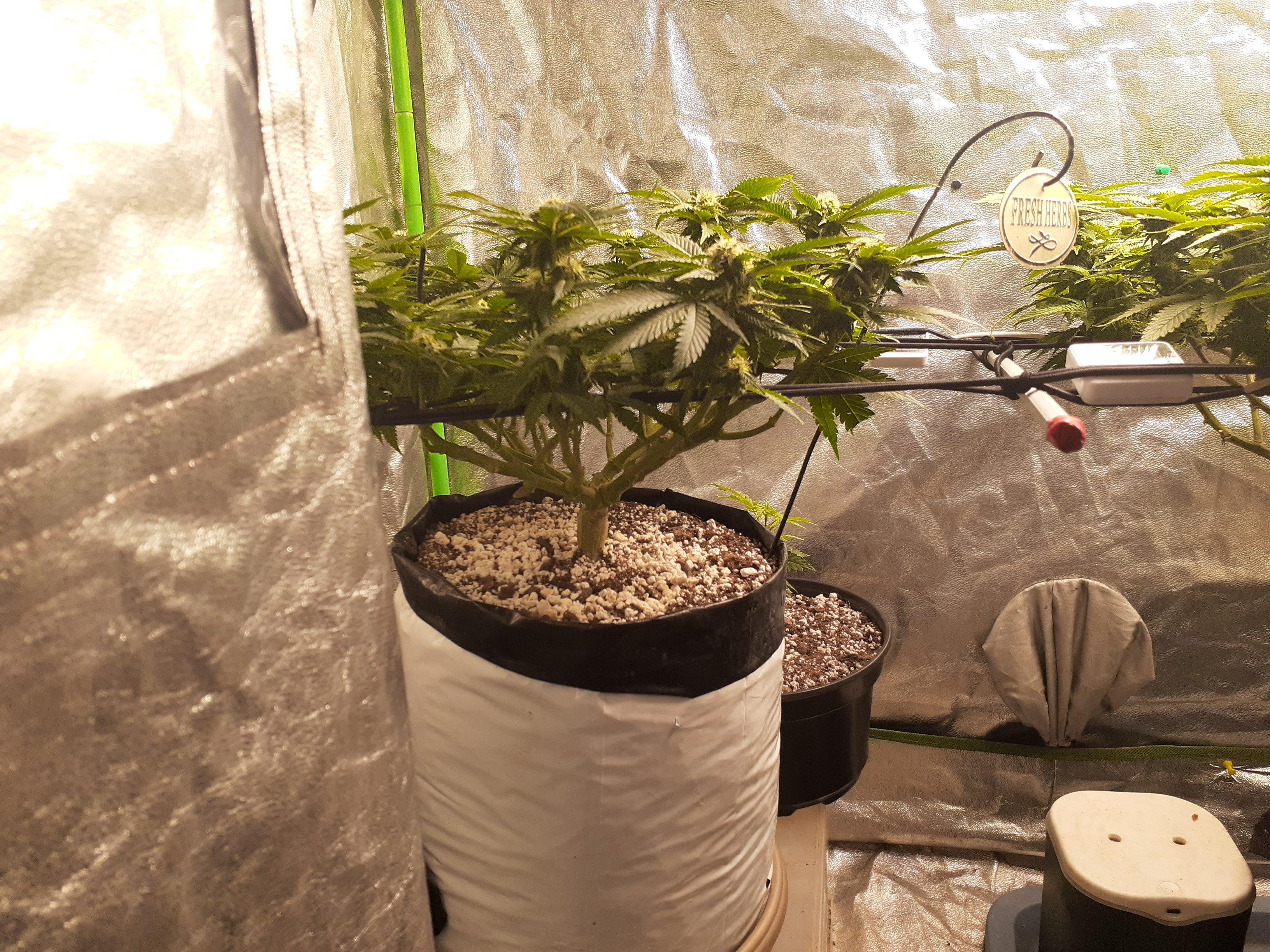 Well this recent attempt at autos has been interesting. My Night Queen and Chem Dog were starving to death on plain water. I thought it was just me over watering but after watching them turn light green after a few days i said fuk it and gave them some nutes. Duuuh, they were just hungry. Just cleaned the tent and re-potted the ladies into 5 gal coco/perlite. Gonna take them a minute to stretch their roots but now they have the big light to bask in. Whatdayawanna bet this tent is gonna get out of control in about 6 weeks lol