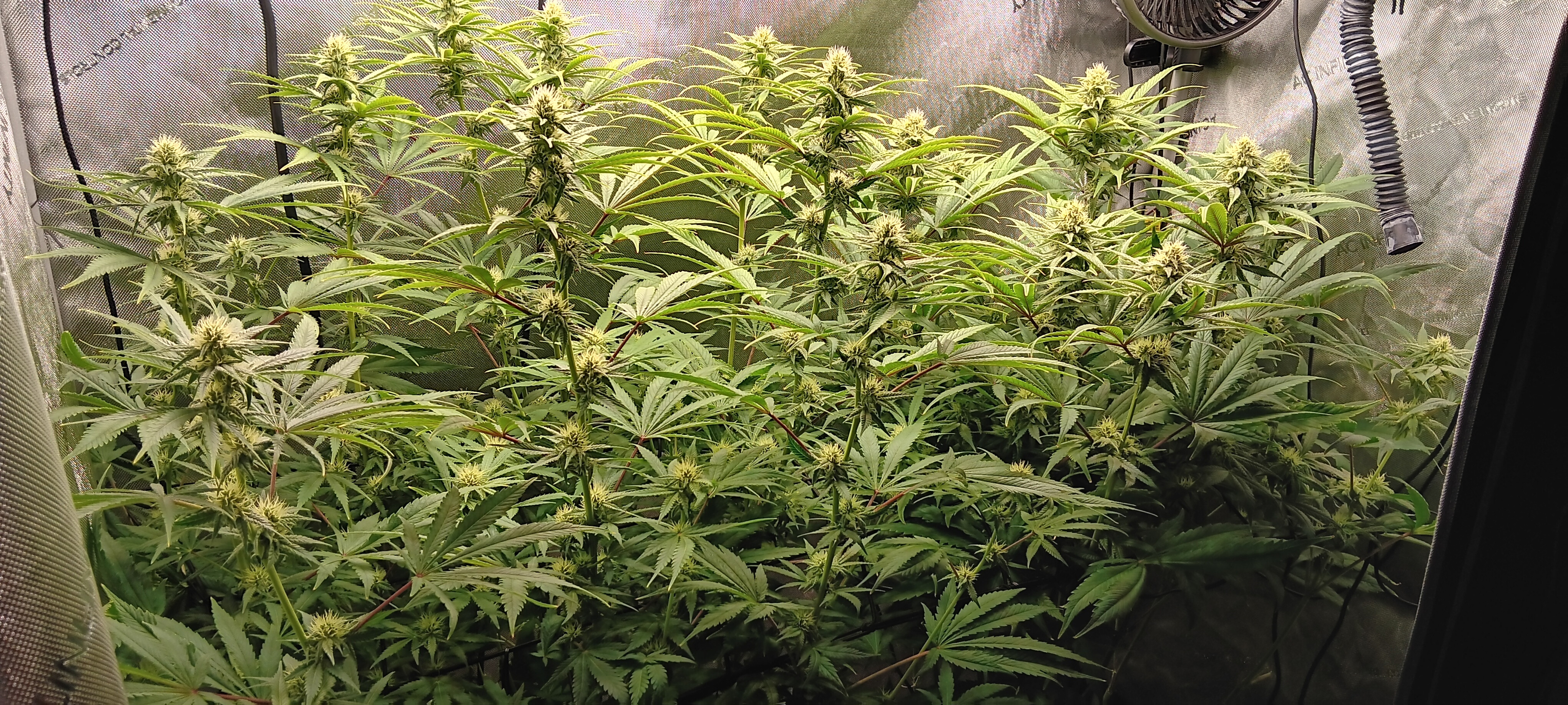 So i just made a post three days ago..plants were doing well. I switched to bloom nutes, did a slight deflo on any great big fan leaves and tied them down. What the hell is happening!.....at this rate it'll be a jungle in another couple weeks. Slow the fak down girls. Autos and photos are keeping pace. cant tell which is which without the sticker3 PhotosShappel S3000 3.5x6x6' ice hut