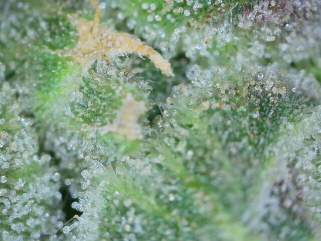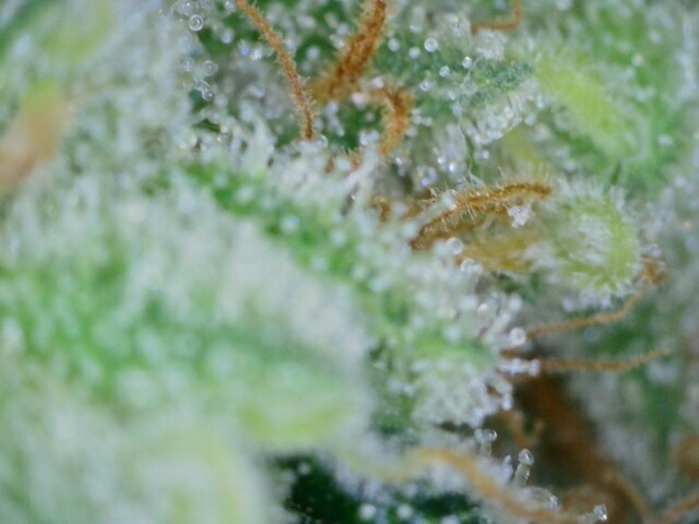 Hybrid sativa from my seed. Longer than two weeks. These buds are extremely unbelievably dense and still growing at a good rate. Nothing of note otherwise. Last of the 3 to produce trichomes.