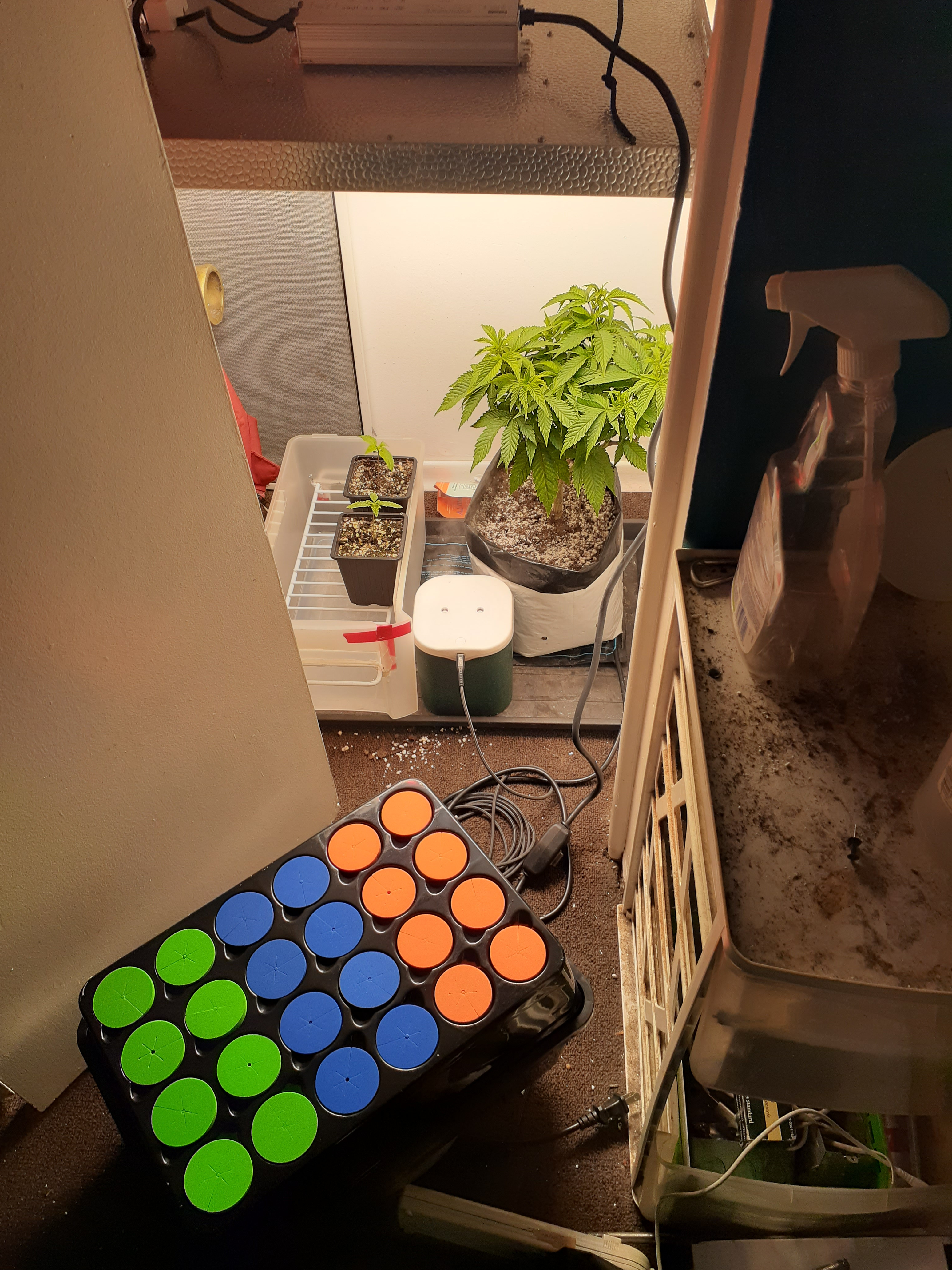 Veg Cupboard #1. Light dimmed to 60% EC 1.3 21/23⁰C RH 80-85%. It's full. 3 OZ x SD