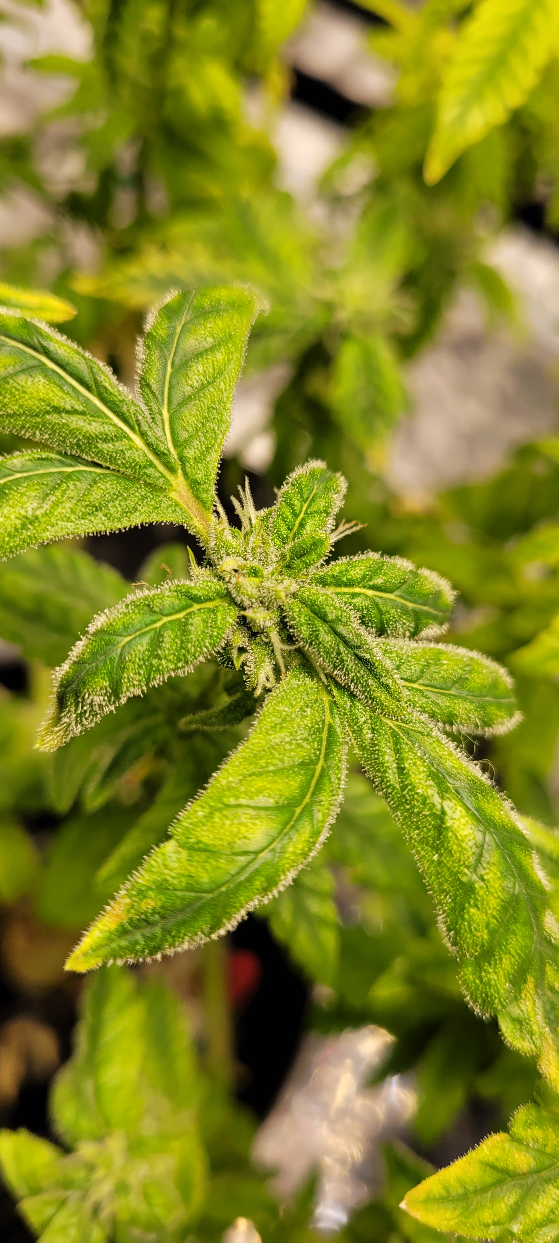 I just gave her a bit if a defol since a lot of the bud sites were covered by fan leaves again, but the whole plant is sticky and fuzzy, she's smelling hard of myrcene and starting to get some limonene smell in there too. I have some high hopes, and I included a couple close-ups of the budding sites for y'alls enjoyment.