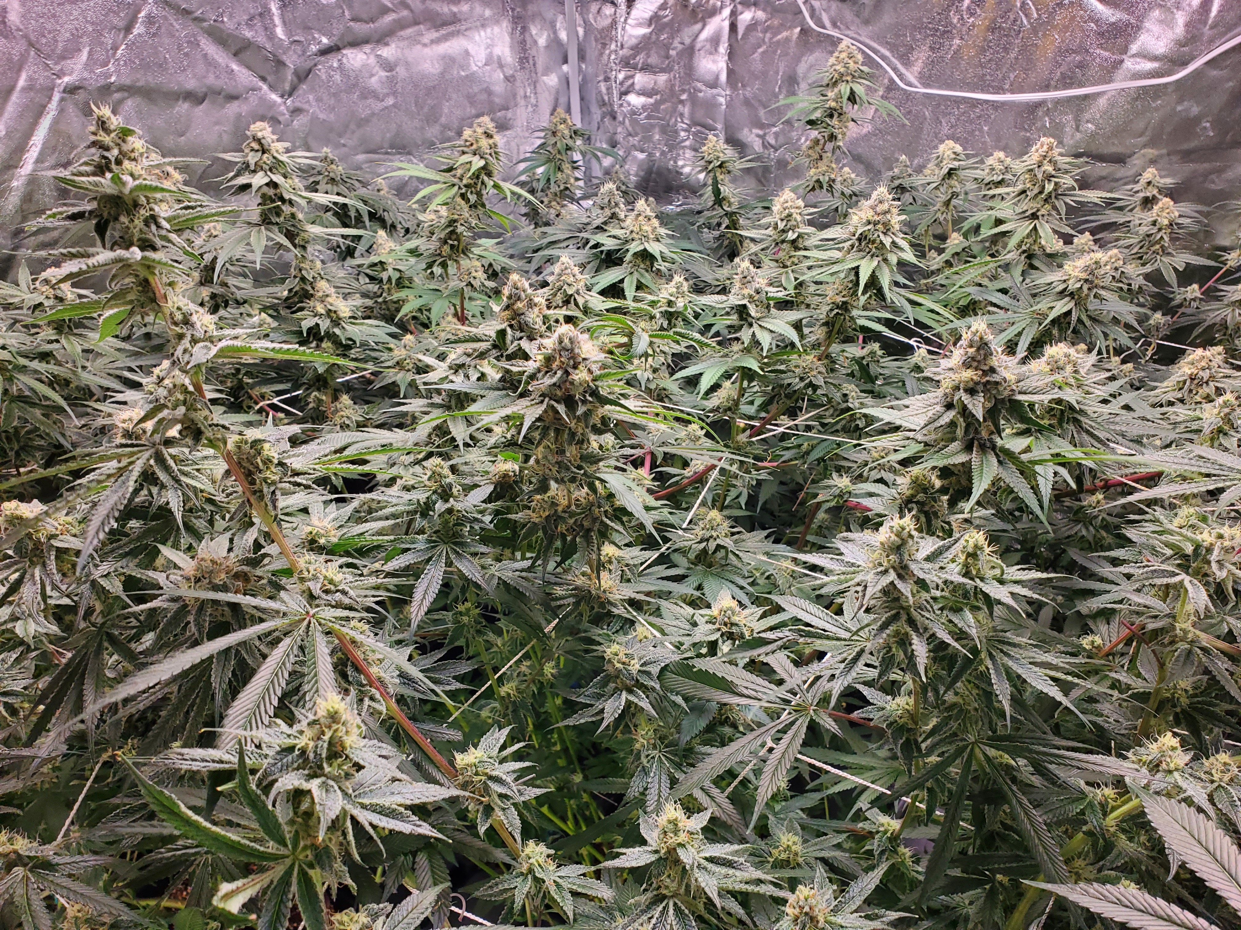 Veg Cupboard #1. Light dimmed to 60% EC 1.3 21/23⁰C RH 80-85%. It's full. 3 OZ x SD