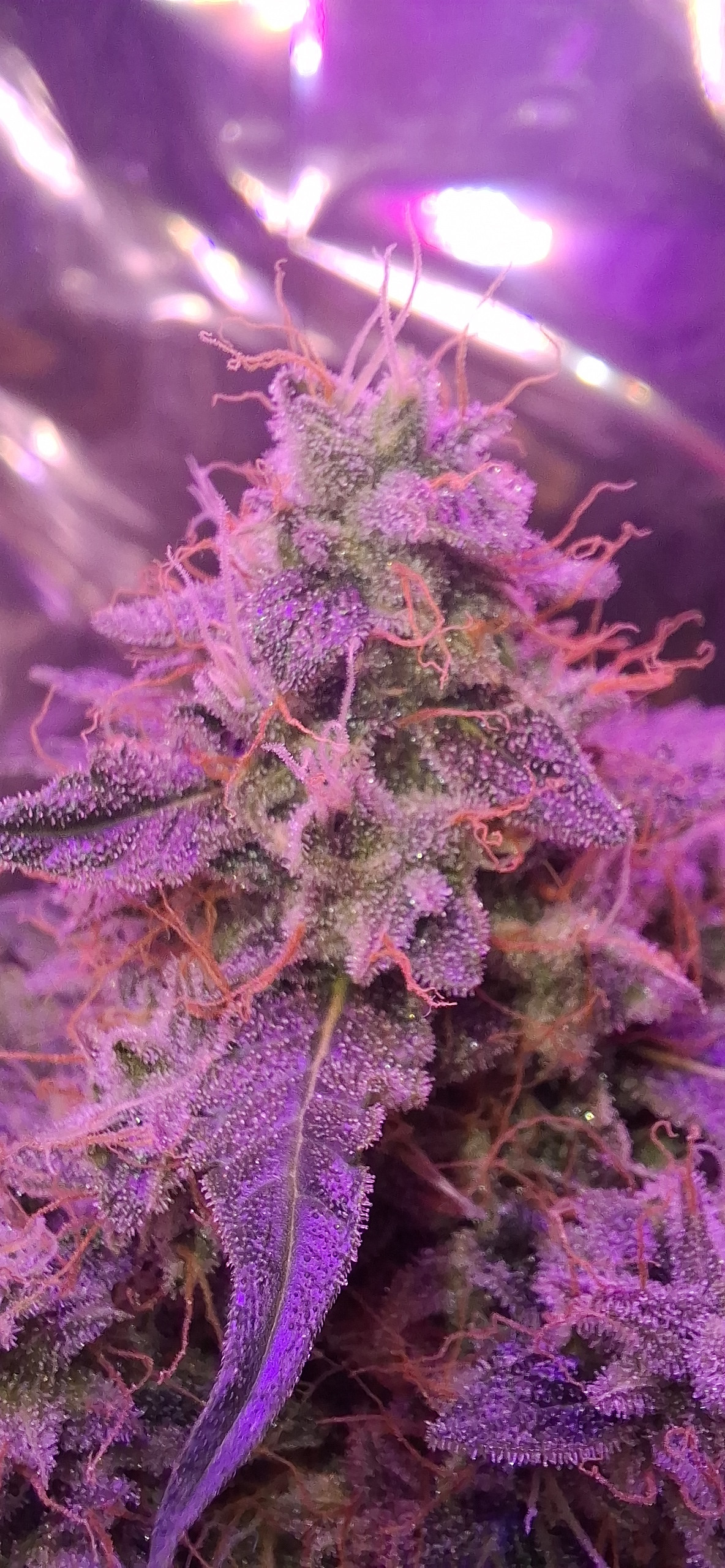 I just gave her a bit if a defol since a lot of the bud sites were covered by fan leaves again, but the whole plant is sticky and fuzzy, she's smelling hard of myrcene and starting to get some limonene smell in there too. I have some high hopes, and I included a couple close-ups of the budding sites for y'alls enjoyment.