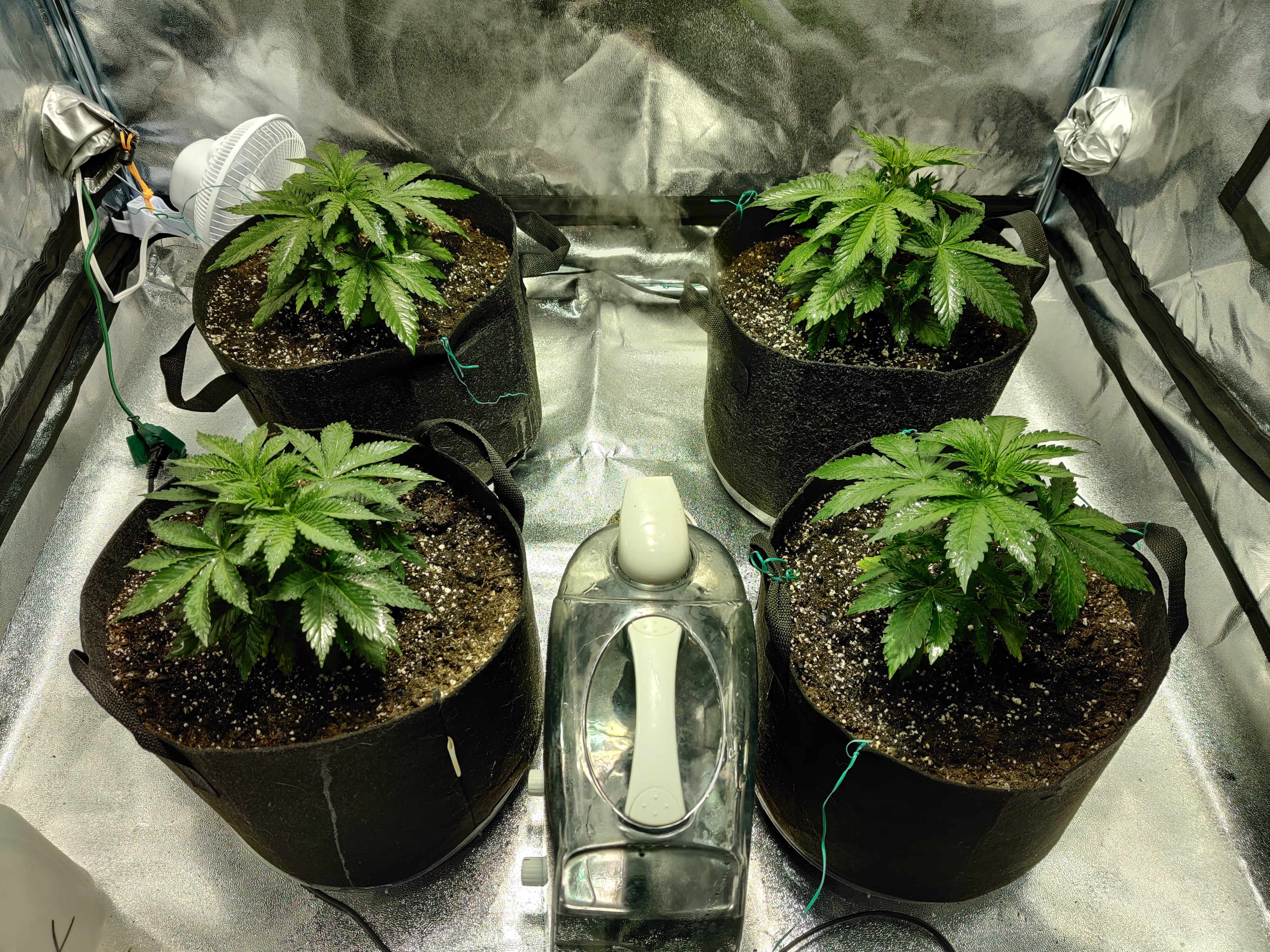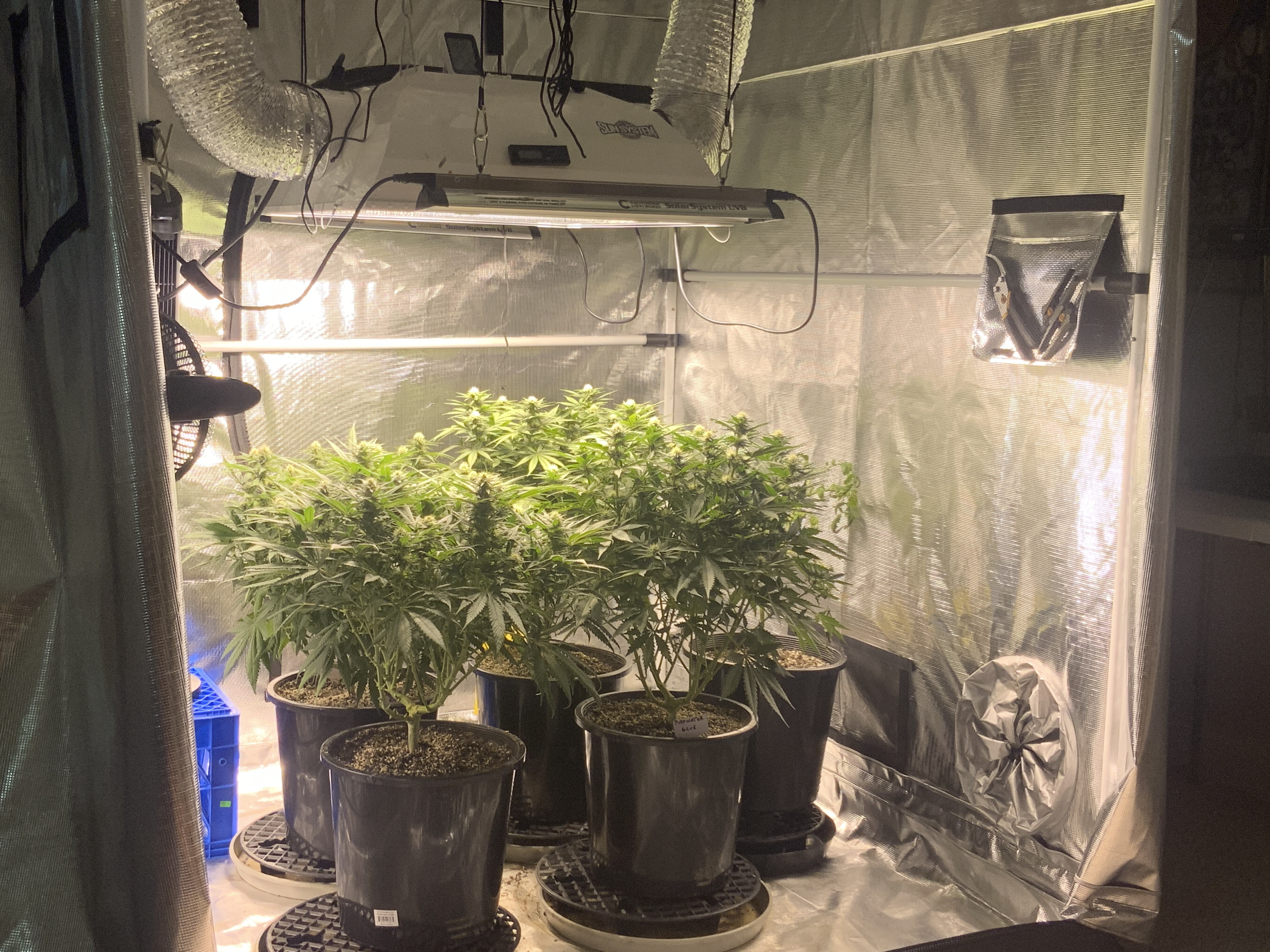 SoOrbudgal, with 3 plants it works just fine. However with 4 I can never get to the one tucked into the corner so it never gets as defoliated as much as I'd like. I've contemplated trying to make individual nets for each bucket so I can turn the plants but that's a project for another day lol