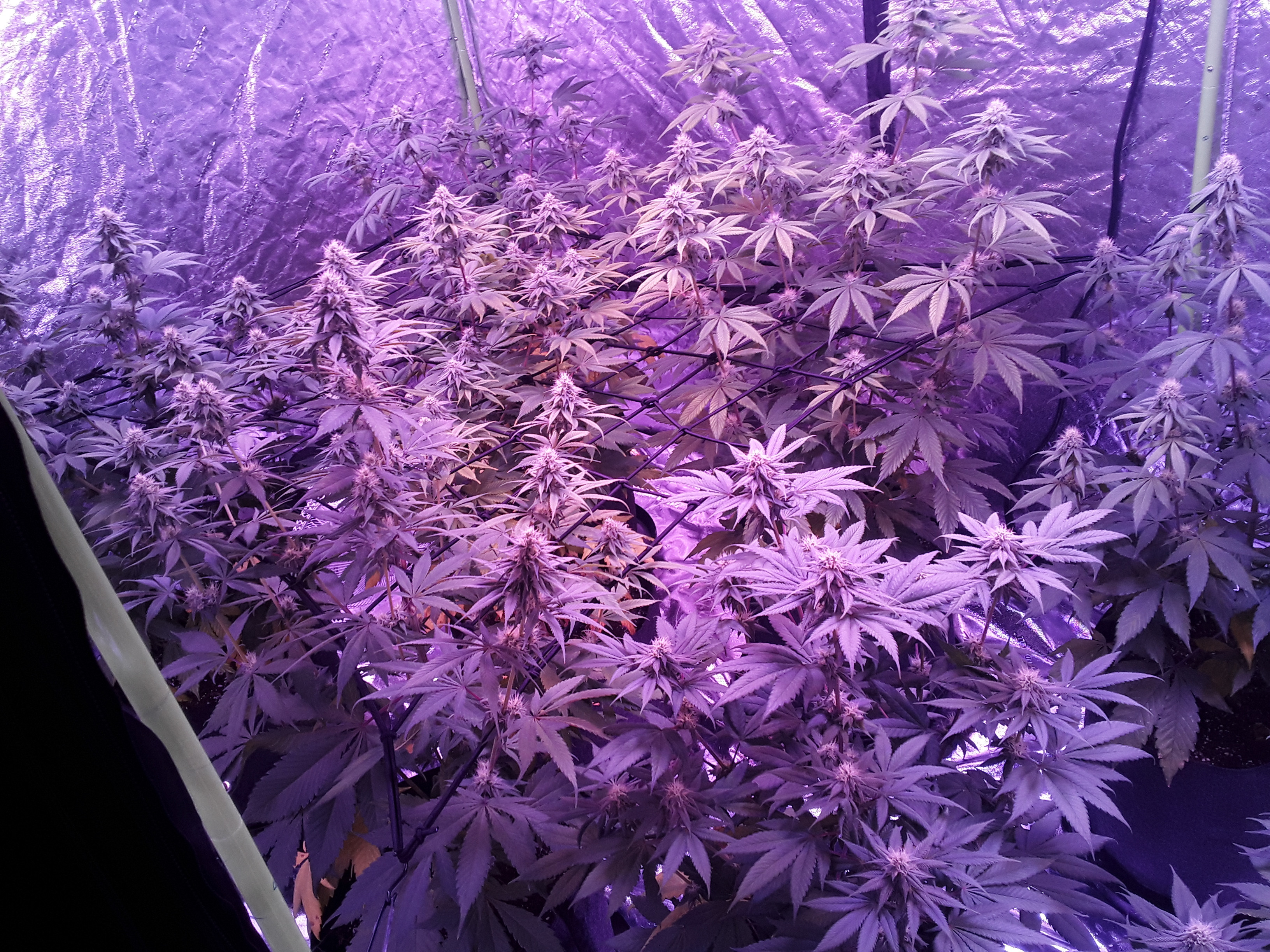 Well, this is new. My AK-47 photo clones are showing purple colors developing on sugar leaves and buds. I didnt have any color like this on the mother plants. Im thinking its either the much cooler temps at night from my last grow(10 degrees cooler- 64 degrees) OR maybe its a result of cloning? I'll be harvesting Medusa before the weekend...she's really struggling trying to hold herself up