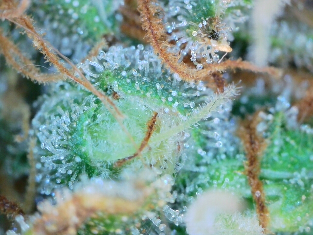 Autos are coming to a close...Finally! Buds are getting way to heavy for the tall plants, i don't like them, too much bondage involved. Took some trichome pics, their in the window but i wouldn't mind a bit more color. Oh, and hurricane Beryl stopped by here in southern Ontario and kicked the shit out of blue cheese...new strain...shredded blue cheese