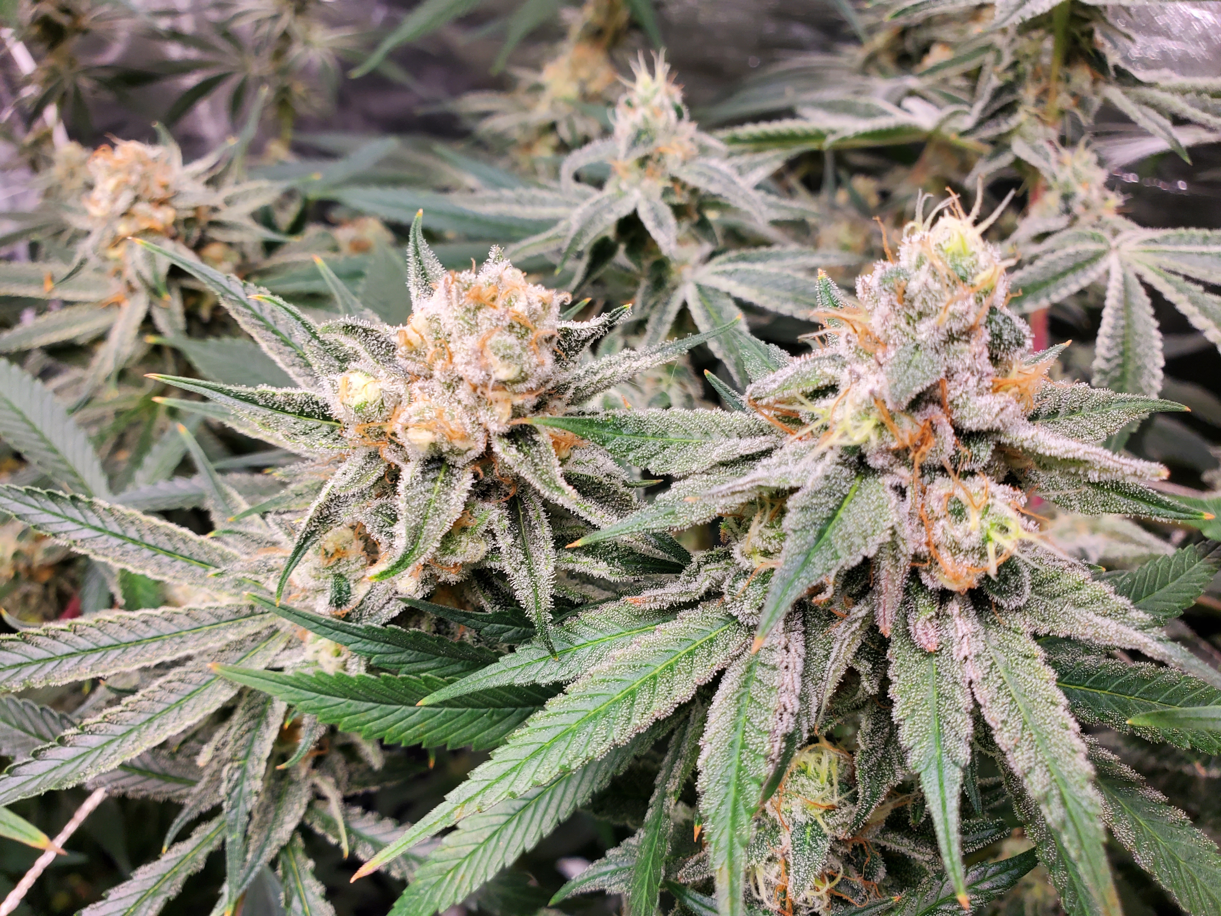 Nice and sticky buds. Strong aroma just came on last few days. Buds are very large and very dense. Cloudy and healthy. A very good yield