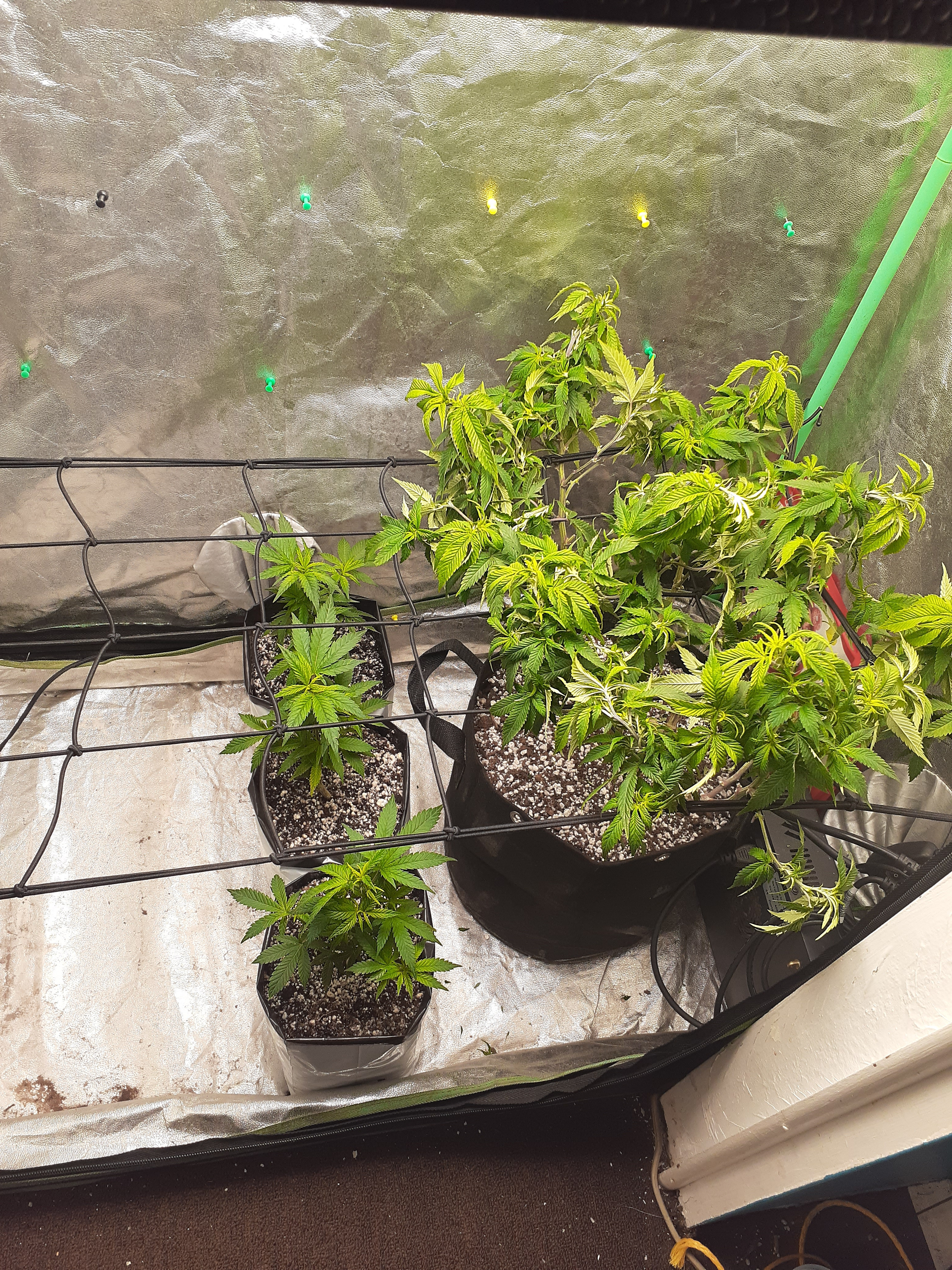 7+ feet tall and 5 gallon coco/perlite does not do well in windy conditions. So their spending the next couple of days in the garage. Now their invading my space....