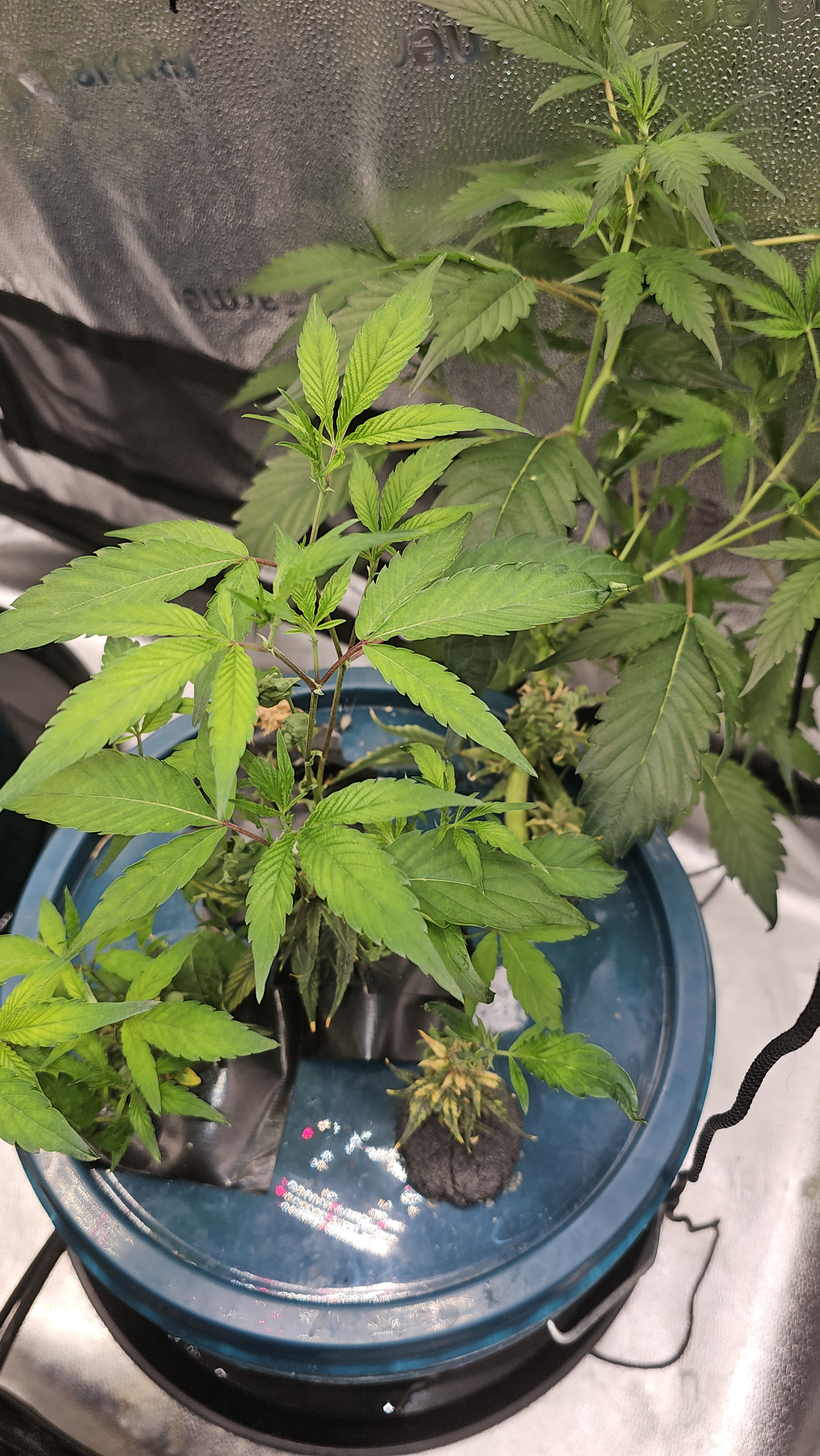 The other bucket with about 8 of 11 that have rooted, but they all went to flower, which I hate and so do the clones. These will stay in the bucket for a while now. 11xOZxSD.