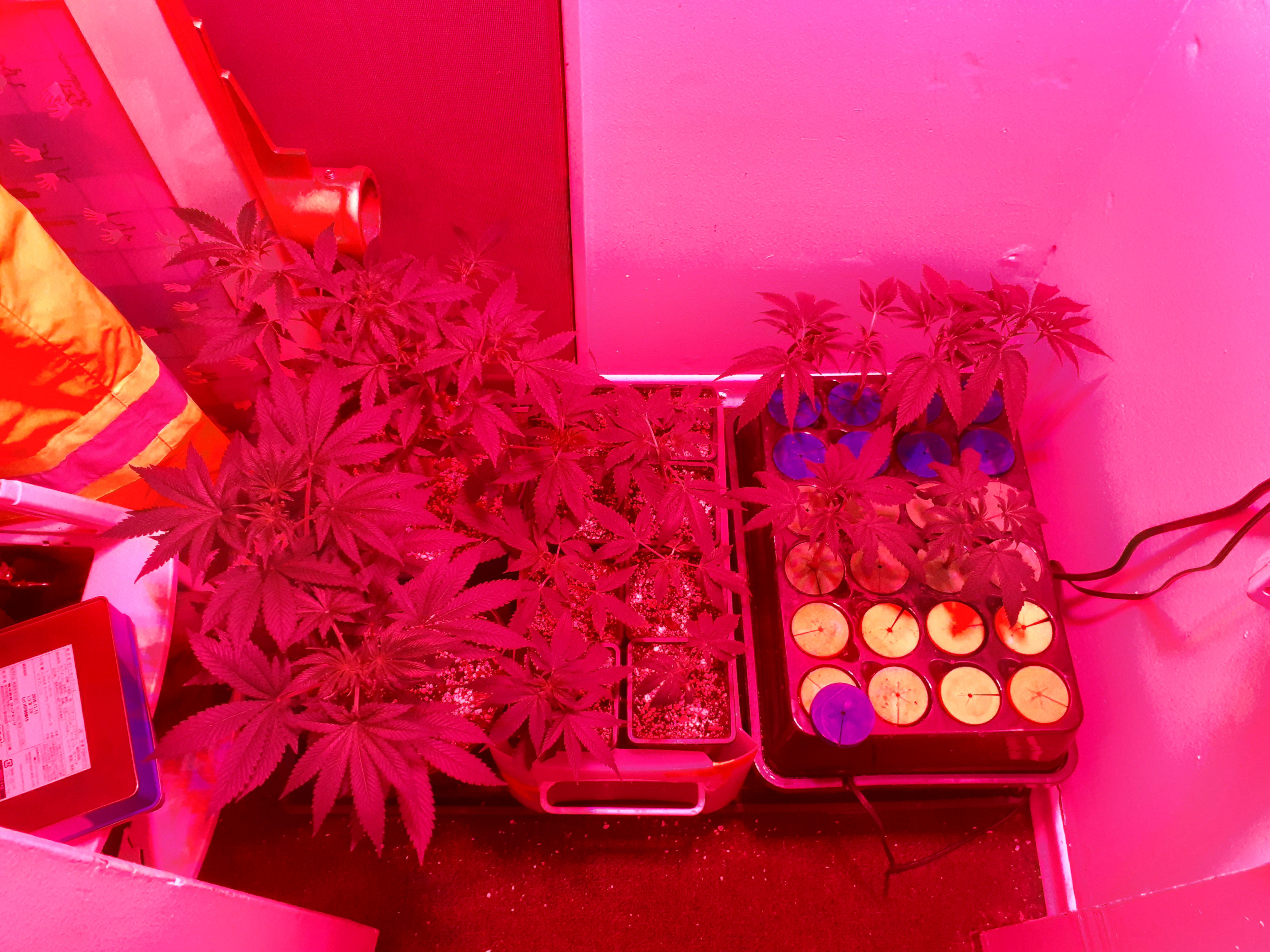 Veg Cupboards: Two 4x2x6H cupboards. SF2000 Evo in one SF7000 in other. Climate controlled and automated. Hand watering