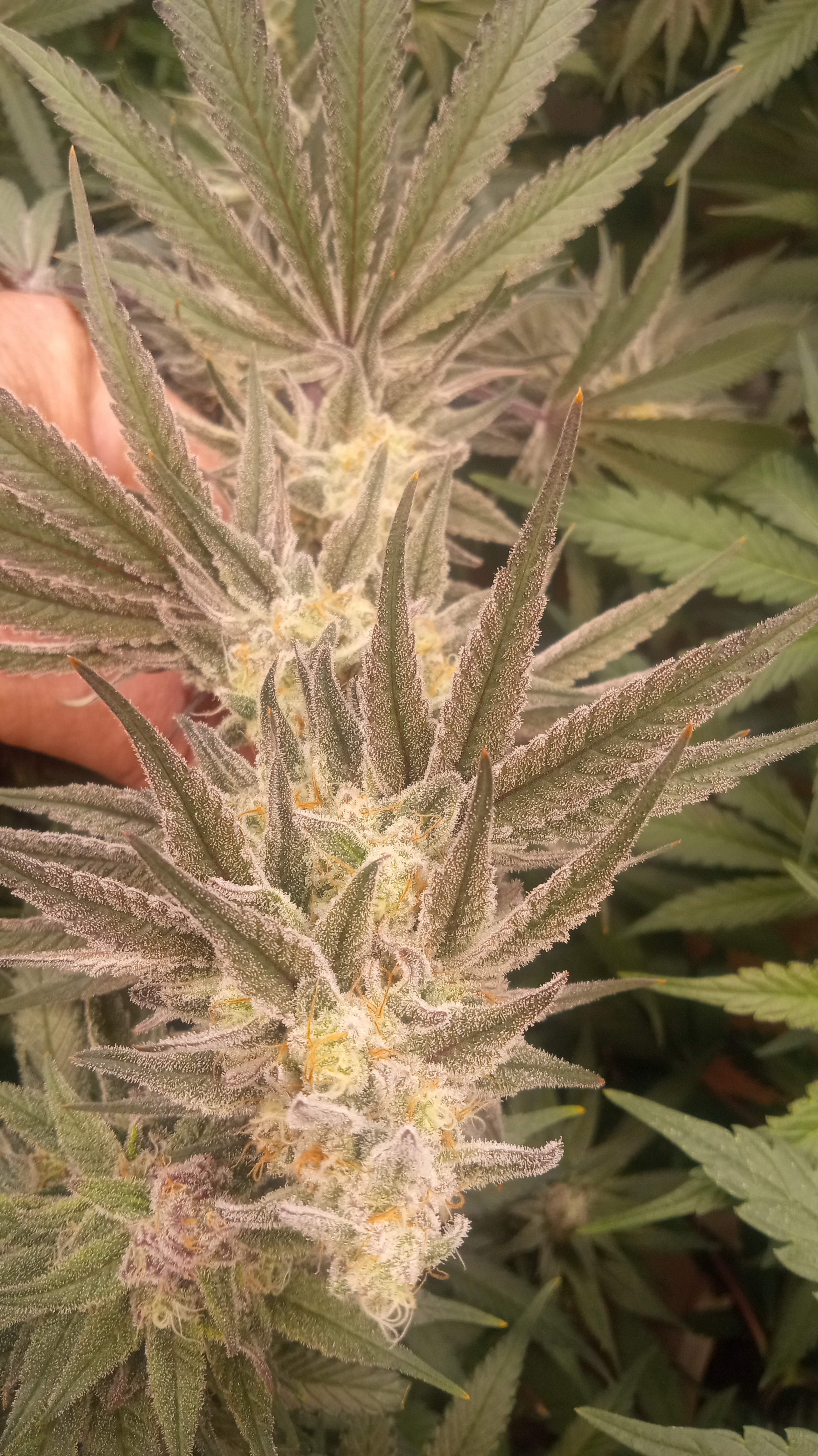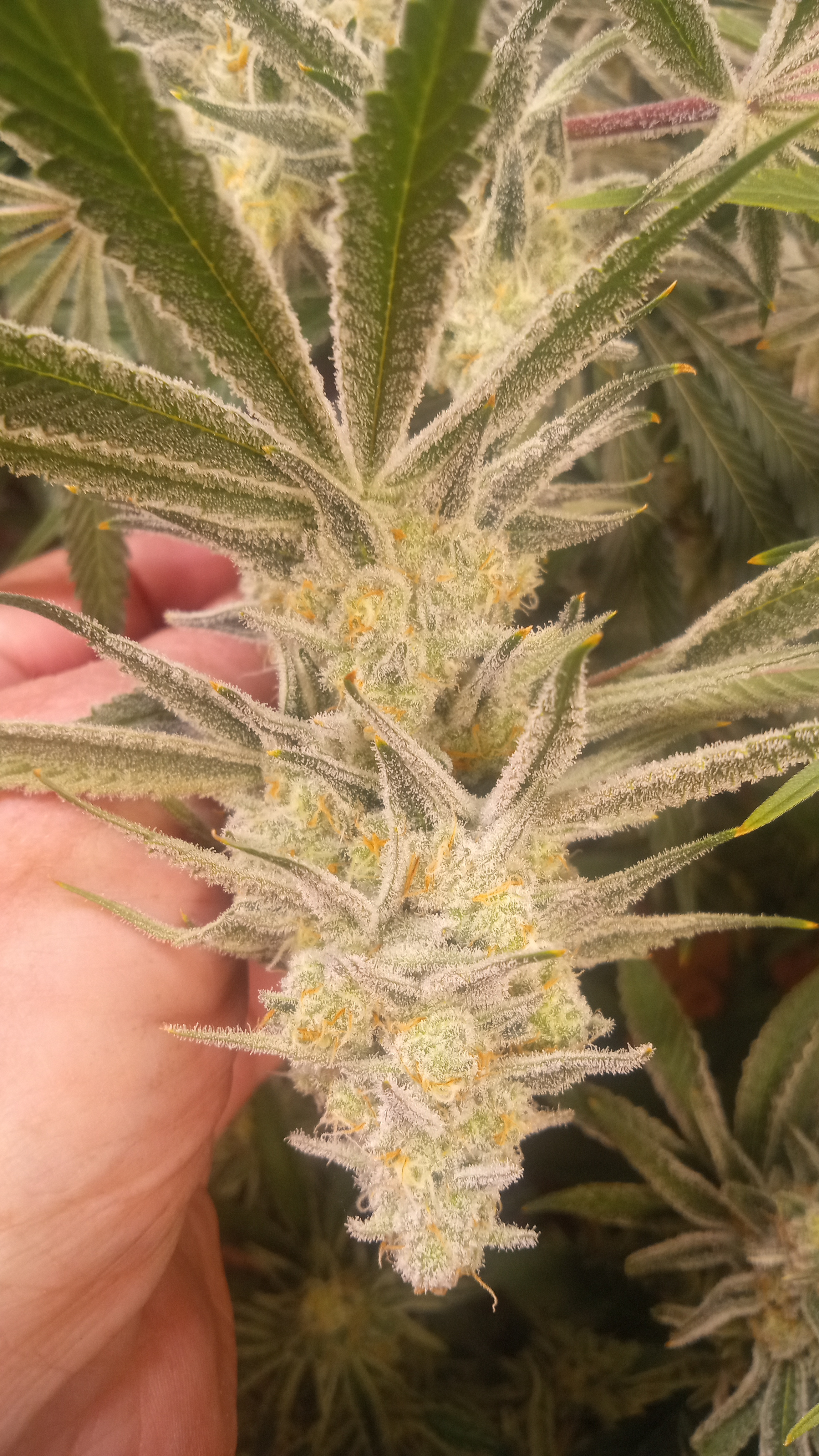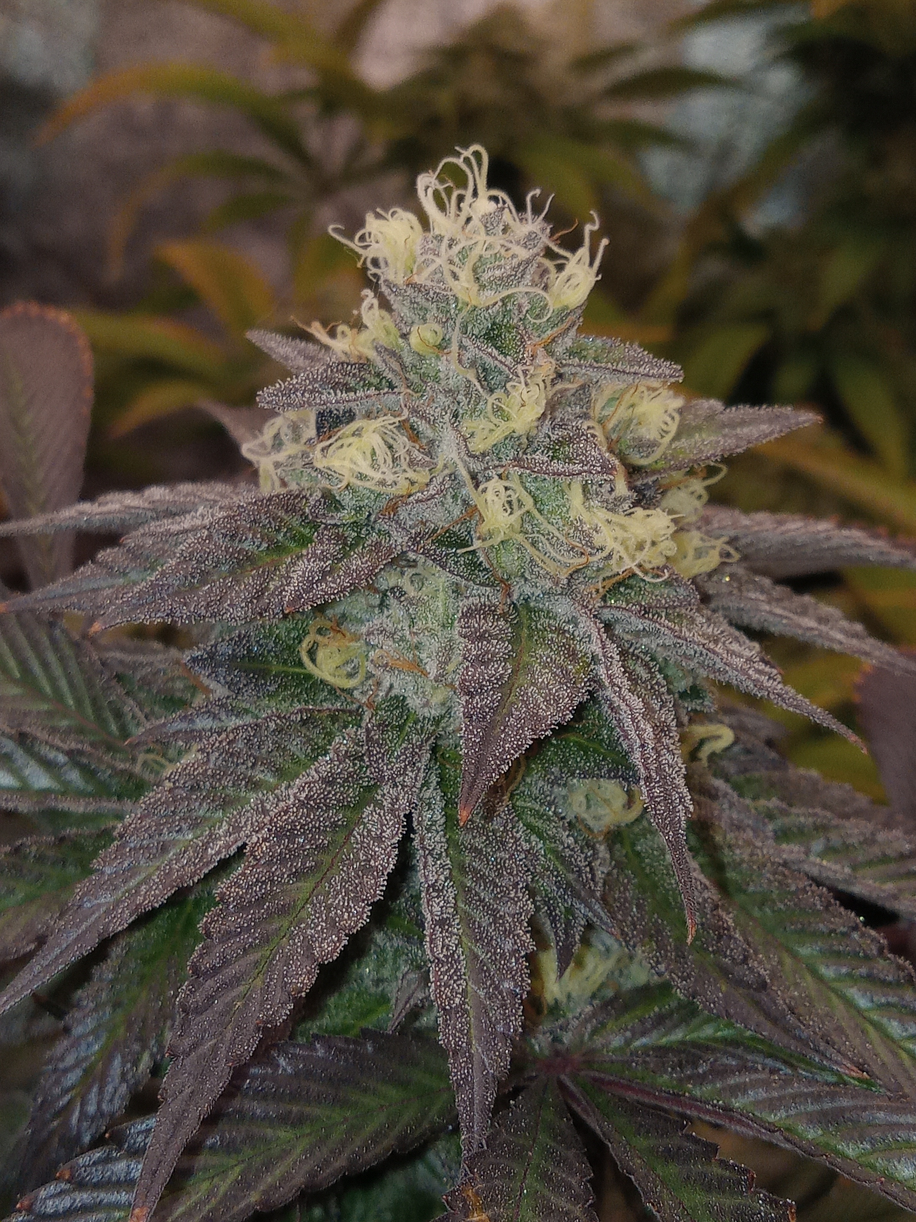 After taking some night shots, I think the Sour Orange is the frostiest followed by the Terpy, grape caper, purple punch and finally birthday cake. They're gonna look amazing in a few more weeks 🥰5 PhotosPeace. Love. Mushrooms and Weed.