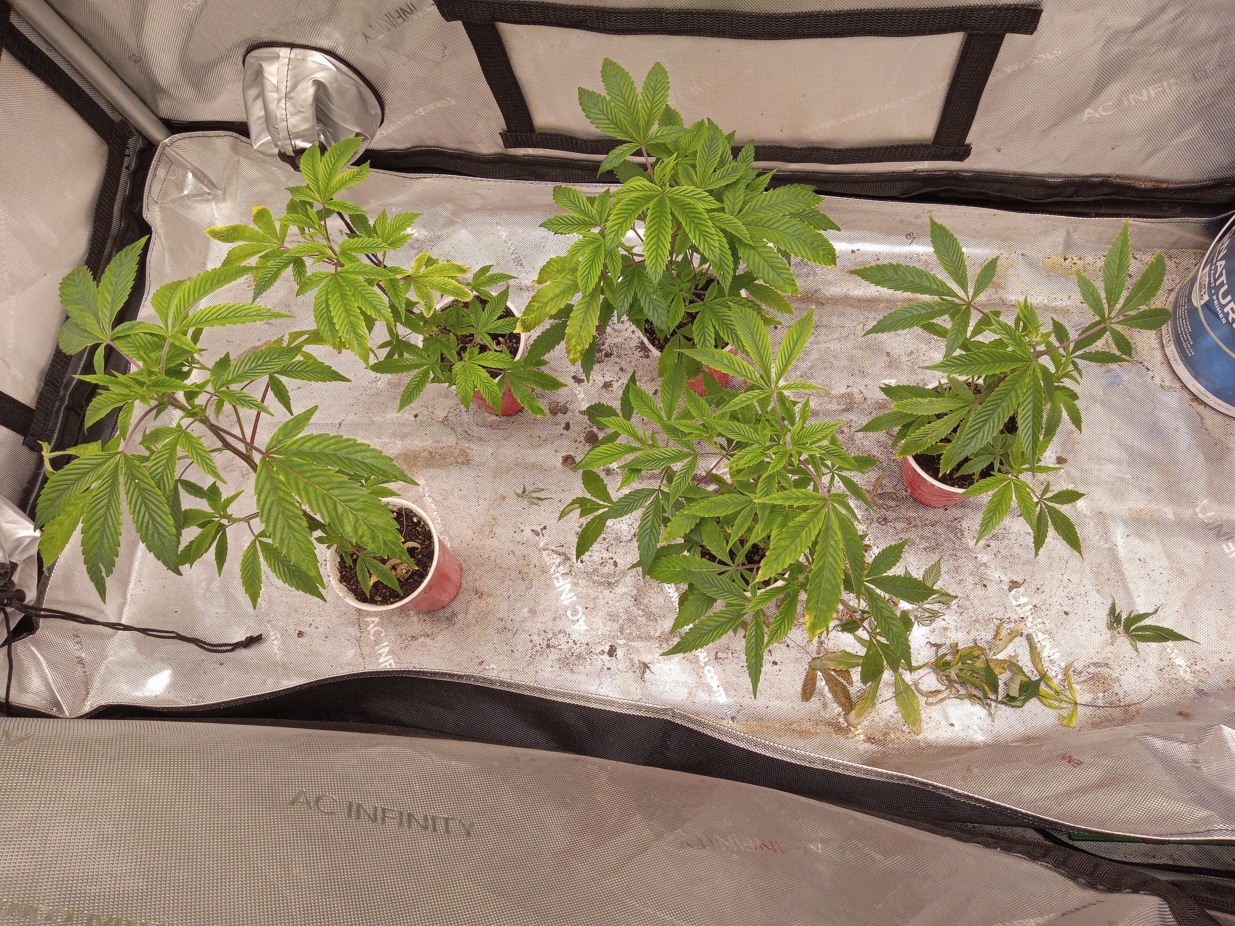 6” AC Infinity outdoor air in and out, humidifier, dehumidifier, heater, oscillating fan.