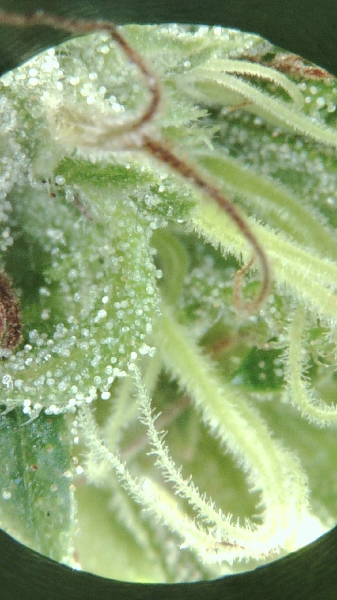 With sugar leaves and trichome frost,