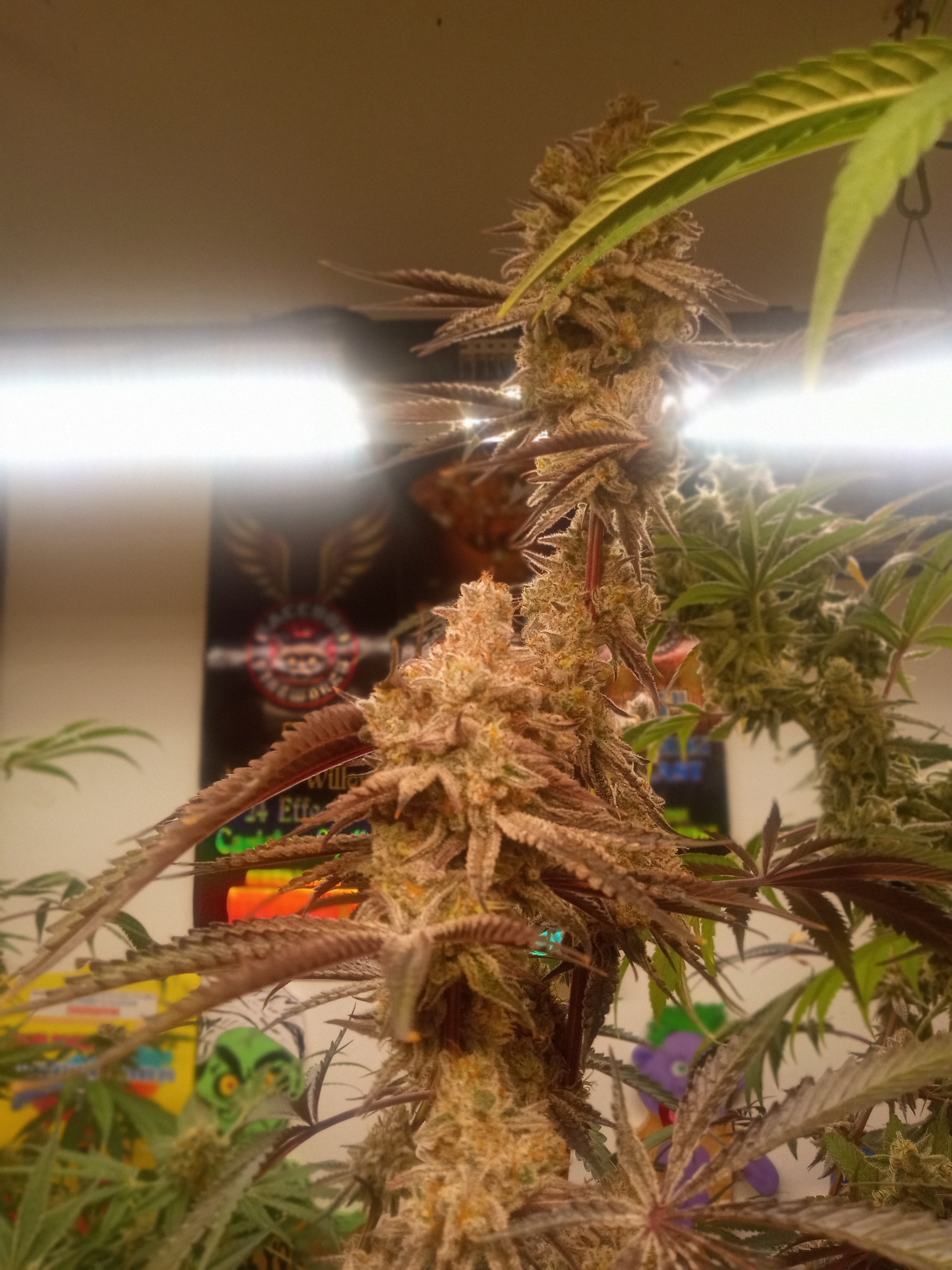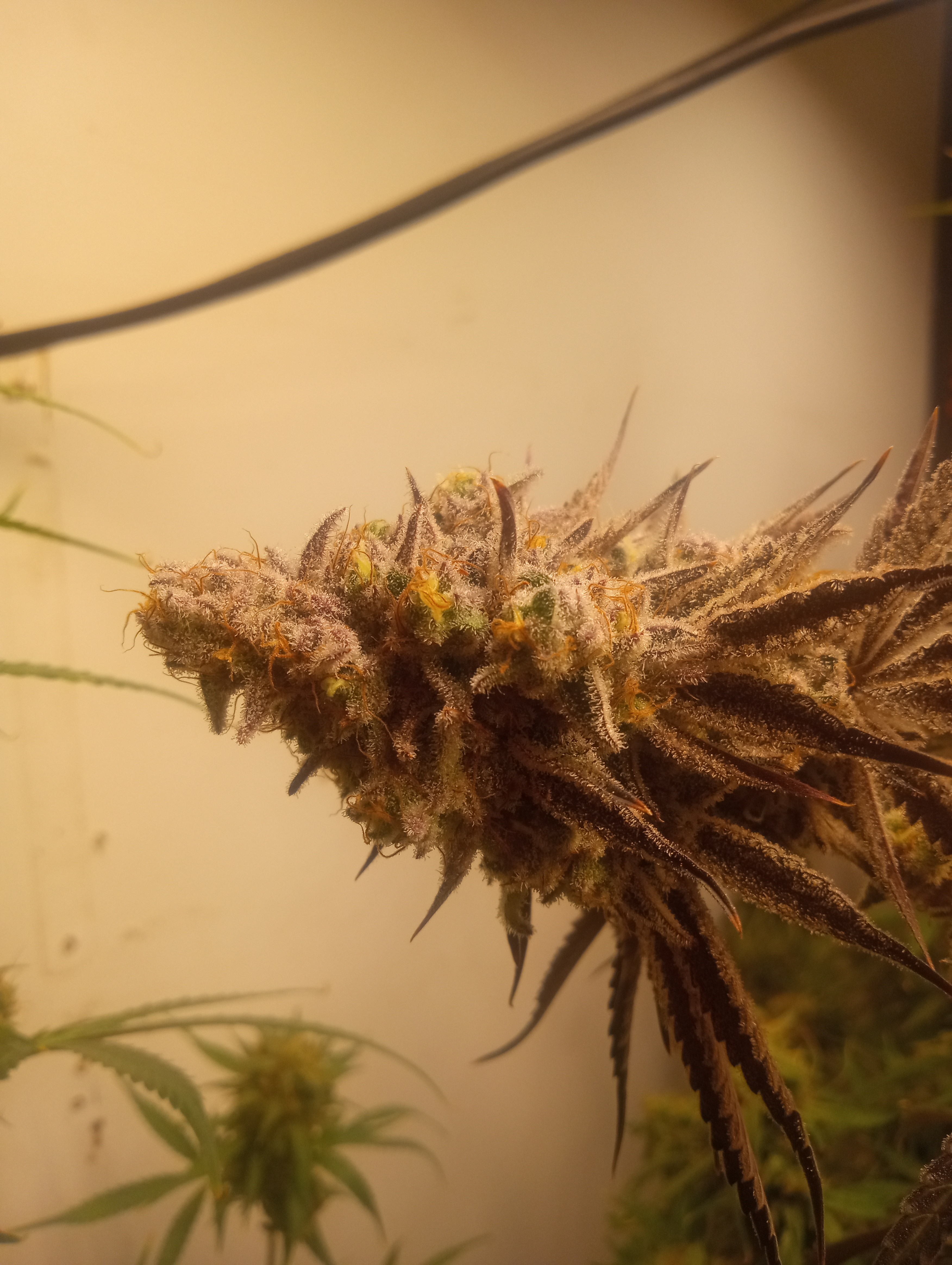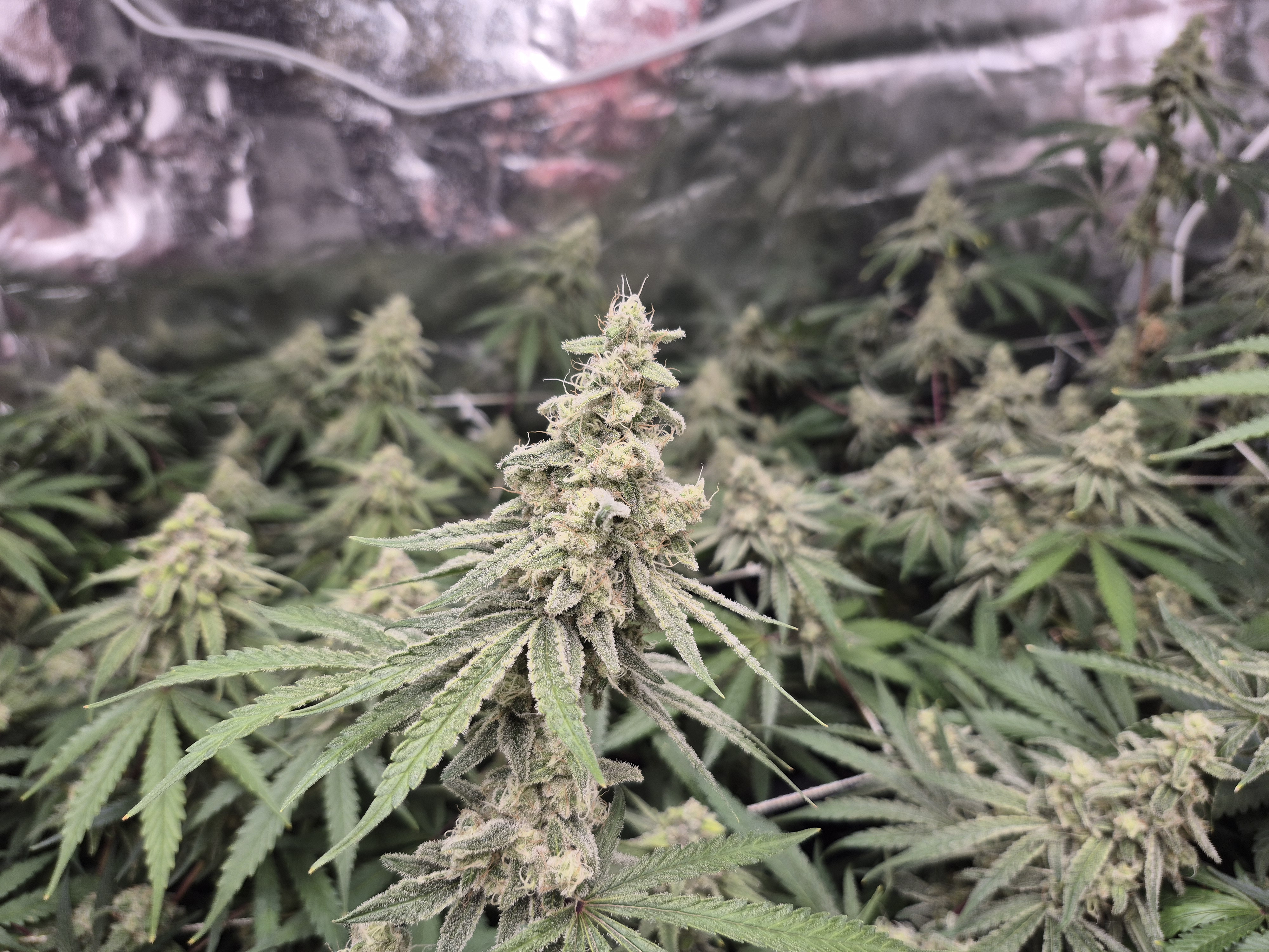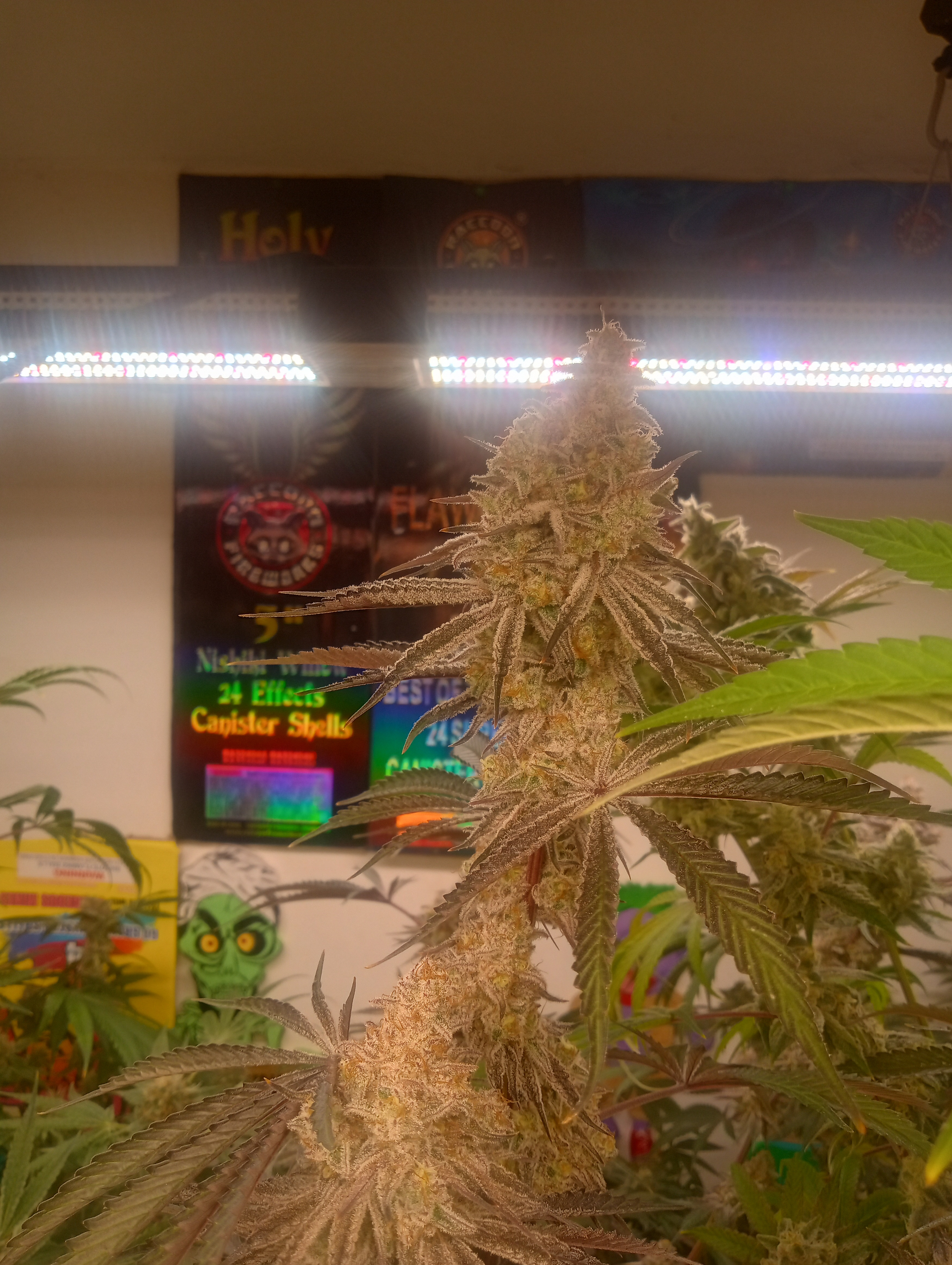 The 20/20 earlies are coming along. Early frost has been flowering for about 8 weeks. I checked the trics on a whim and she's pretty cloudy. Still a bunch of white pistils .the next 3 weeks are going to be nail biters with bud rot. The summer lemon is still 5 or 6 weeks out. Jelly Breath from In House Genetics finally gave me enough amber 11 weeks post flip and 17 weeks above ground. She'll be coming down tomorrow or Tuesday.4 Photos