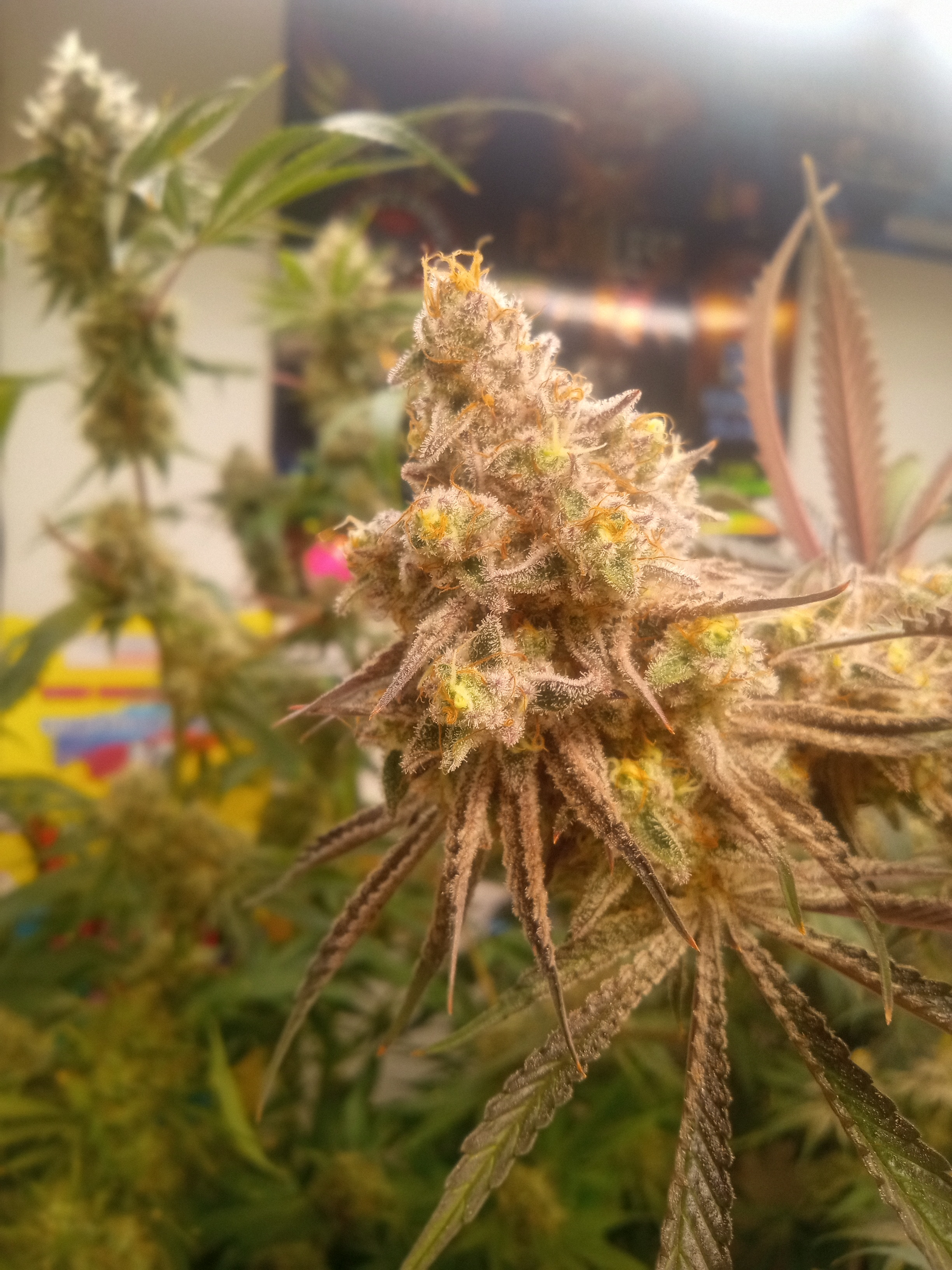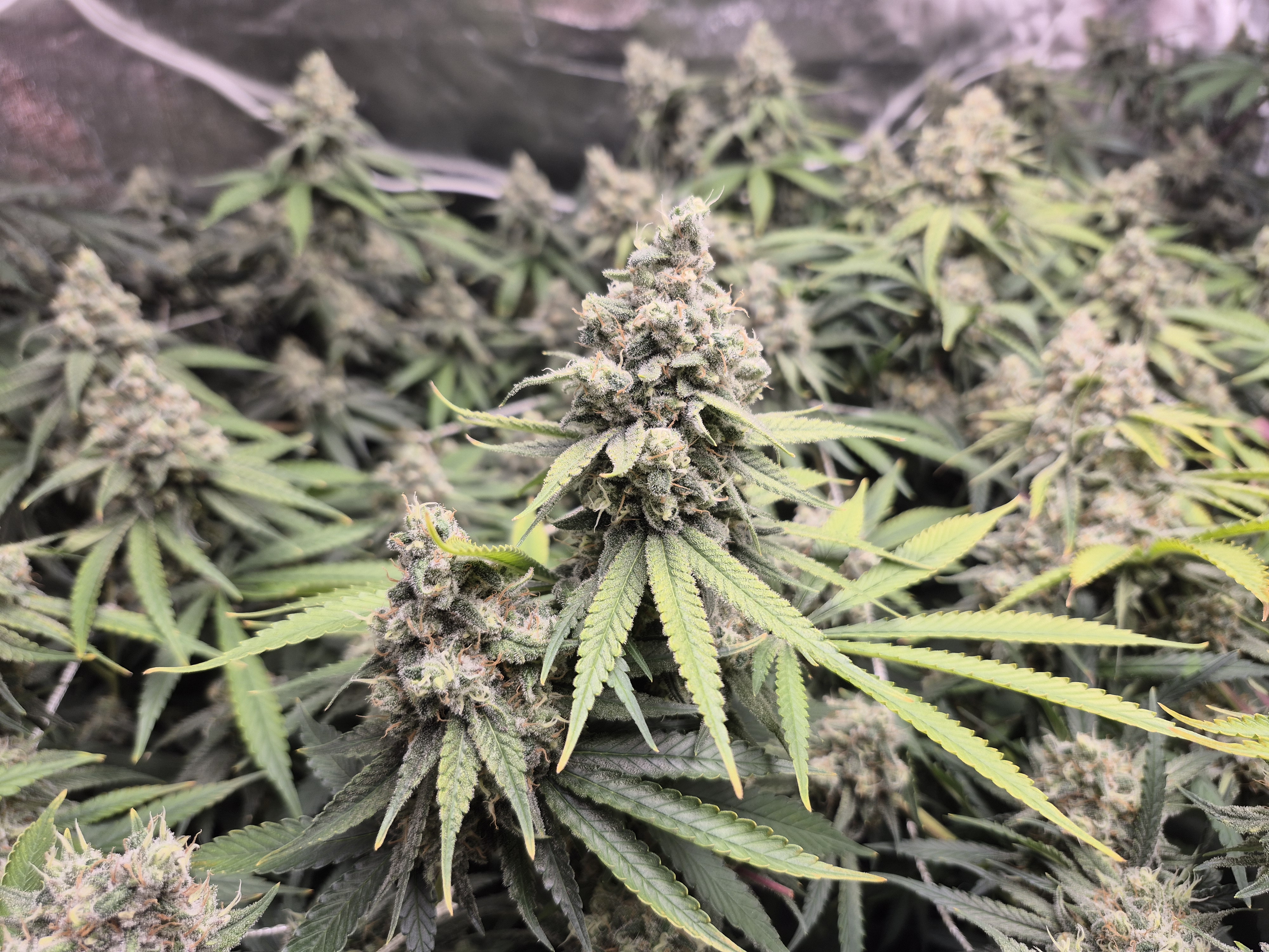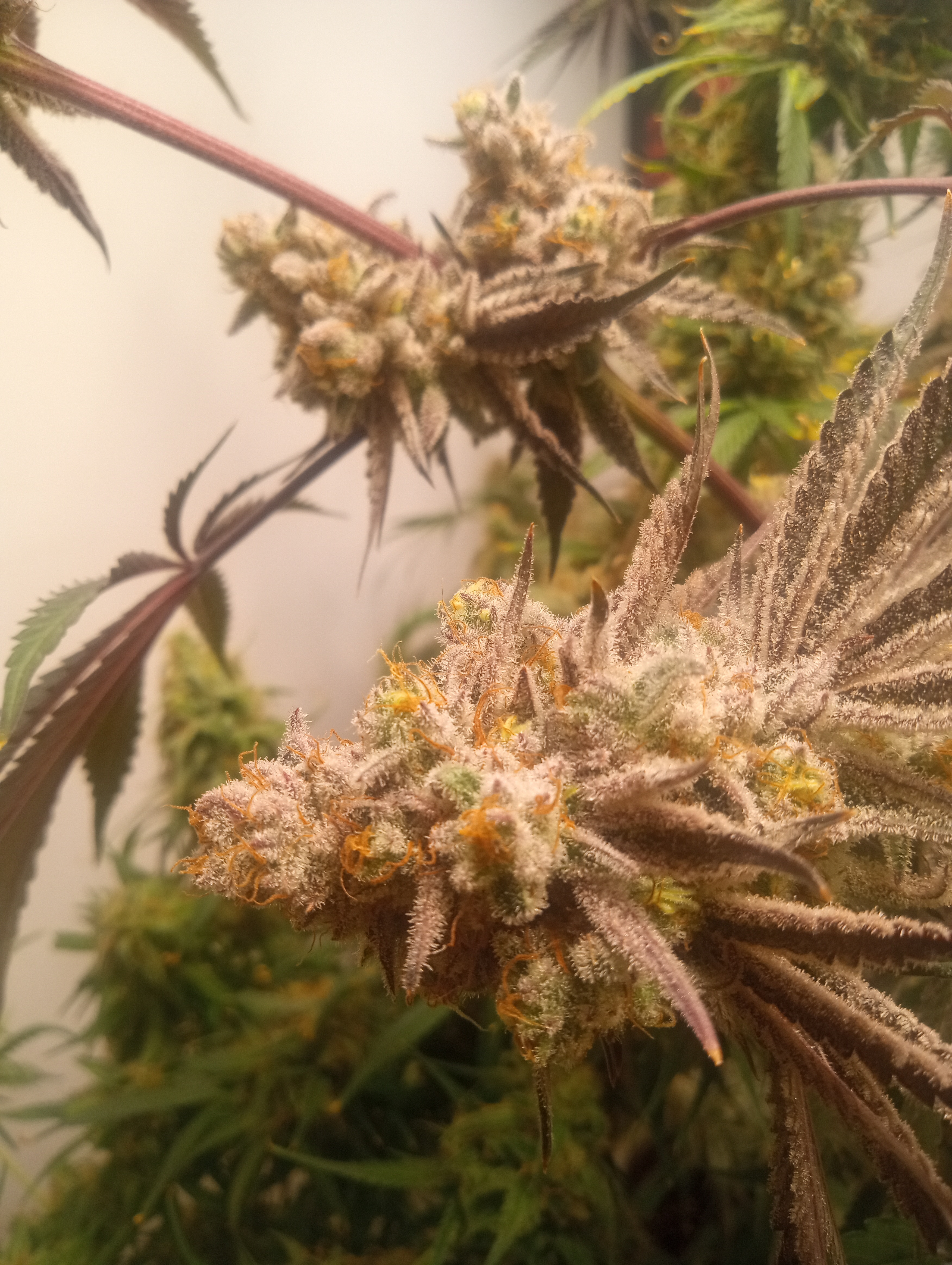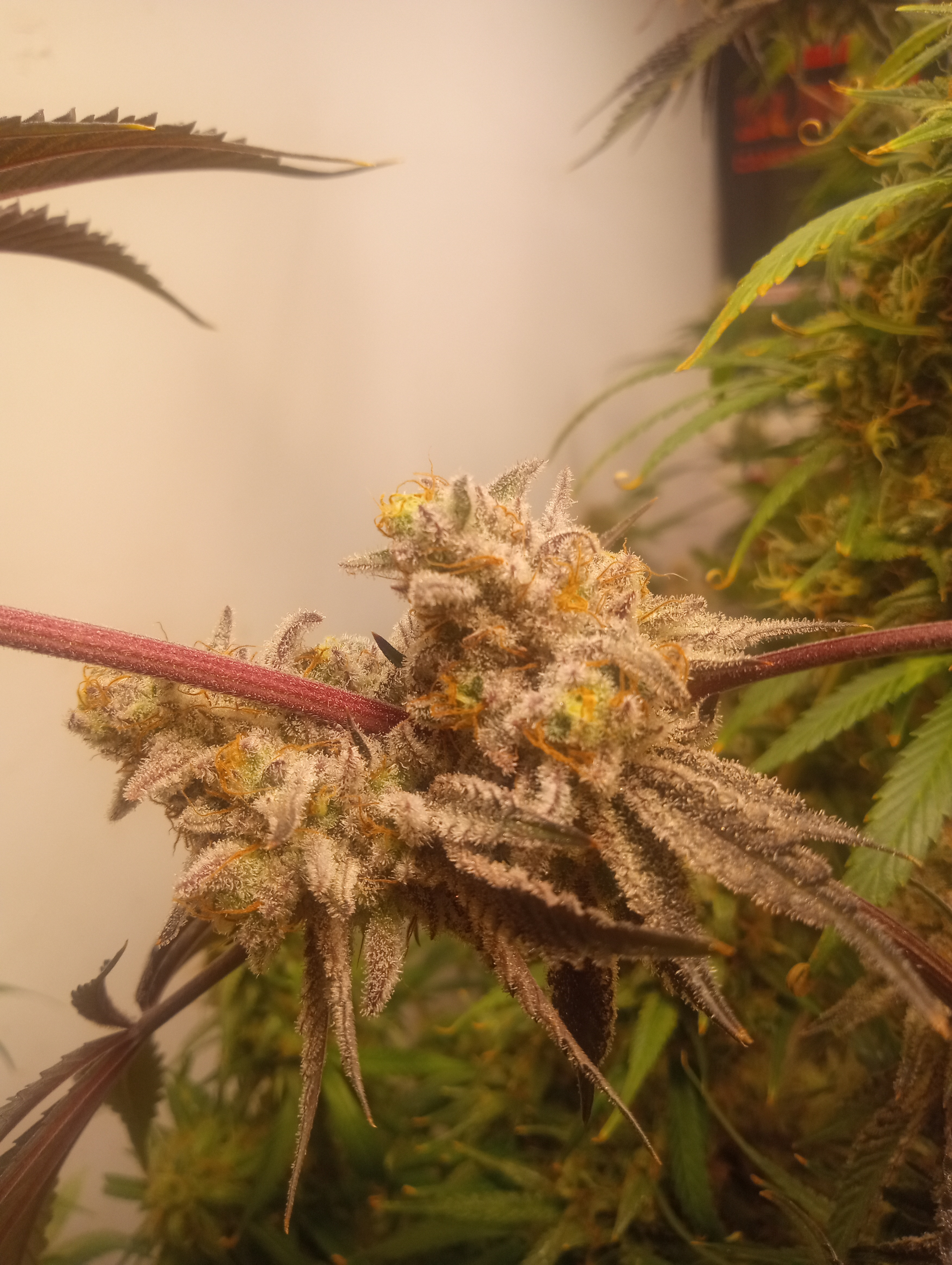 The 20/20 earlies are coming along. Early frost has been flowering for about 8 weeks. I checked the trics on a whim and she's pretty cloudy. Still a bunch of white pistils .the next 3 weeks are going to be nail biters with bud rot. The summer lemon is still 5 or 6 weeks out. Jelly Breath from In House Genetics finally gave me enough amber 11 weeks post flip and 17 weeks above ground. She'll be coming down tomorrow or Tuesday.4 Photos