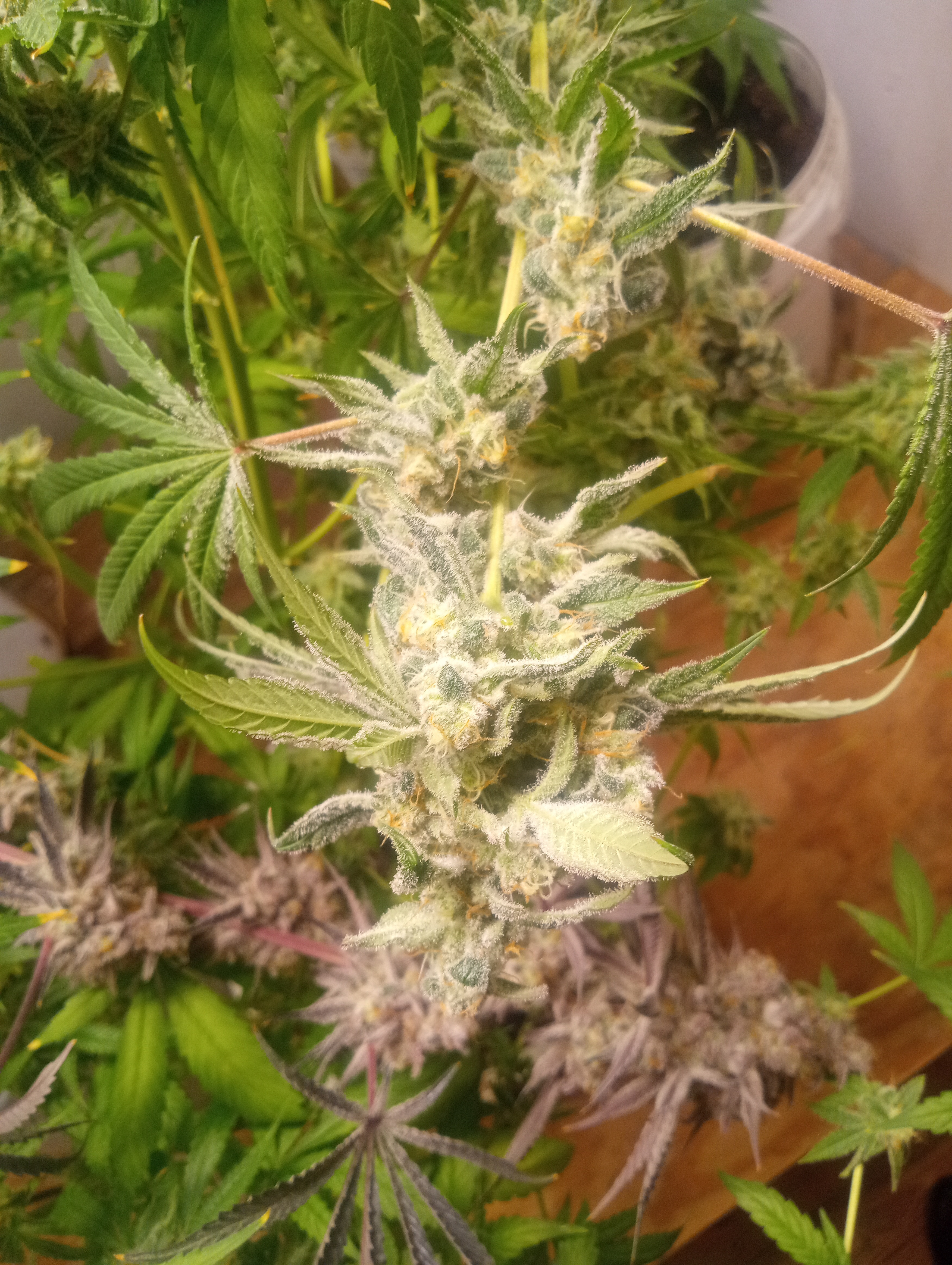Few pics of the photos. In no special order g ride, sugar cane, my strains wedding night and razz cherry. Yes I need to get a better name for her. And of course masterpiece. She's special and also easily identifiable. Click image for larger version