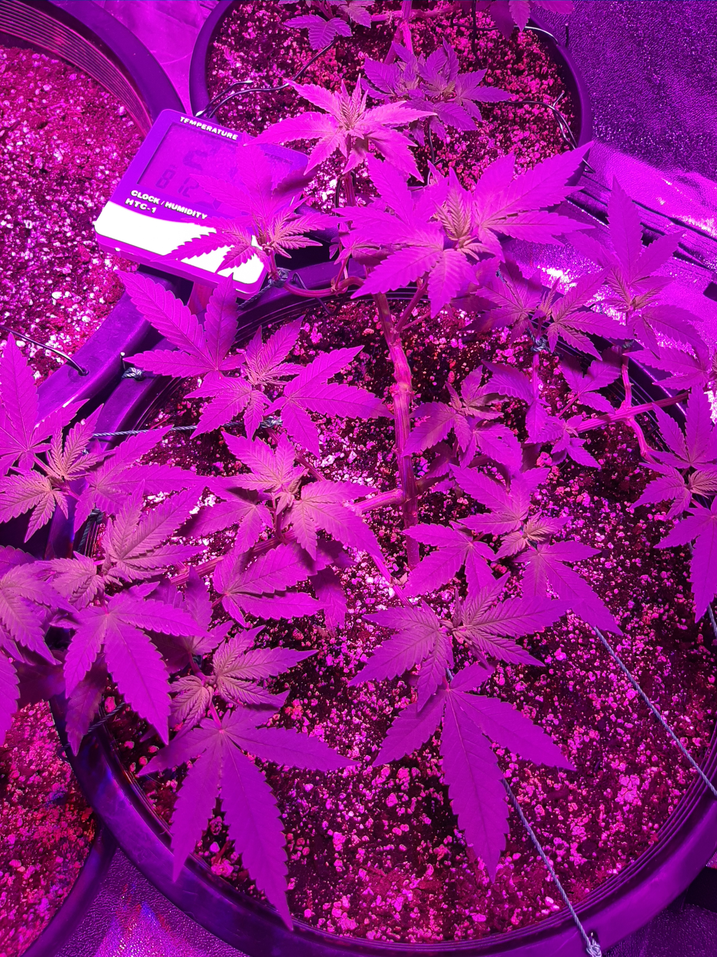 I'll join in. Here's them Thai Skunk needin to be tied down again & close to bein tall enough to flip. The cute little button down there is a SoOrbudgal Black Cherry Punch clone. Maybe bein 38in from the light will git er to stretch a little. I'm super excited to see them go into the flower tent!! Thanks again Budgal