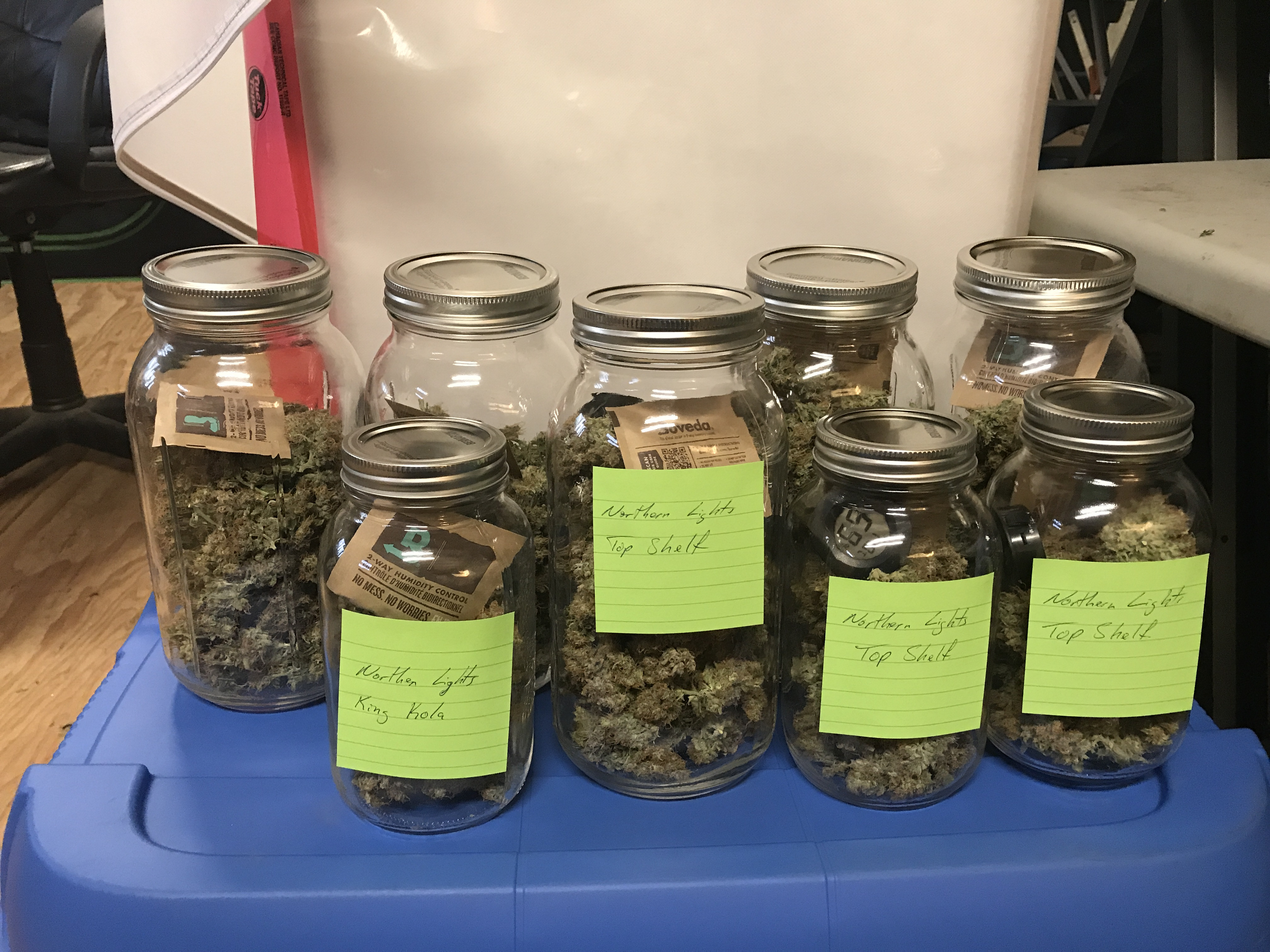 Anyways..the humidity is reading 63% in the jars after 1 hour (including boveda packs). The final harvest totaled 286 grams, about 9.8 oz, of good useable bud. A lot of the small popcorn buds were absolutely glazed over with trichs. Main kolas were not dense, but slightly loose.