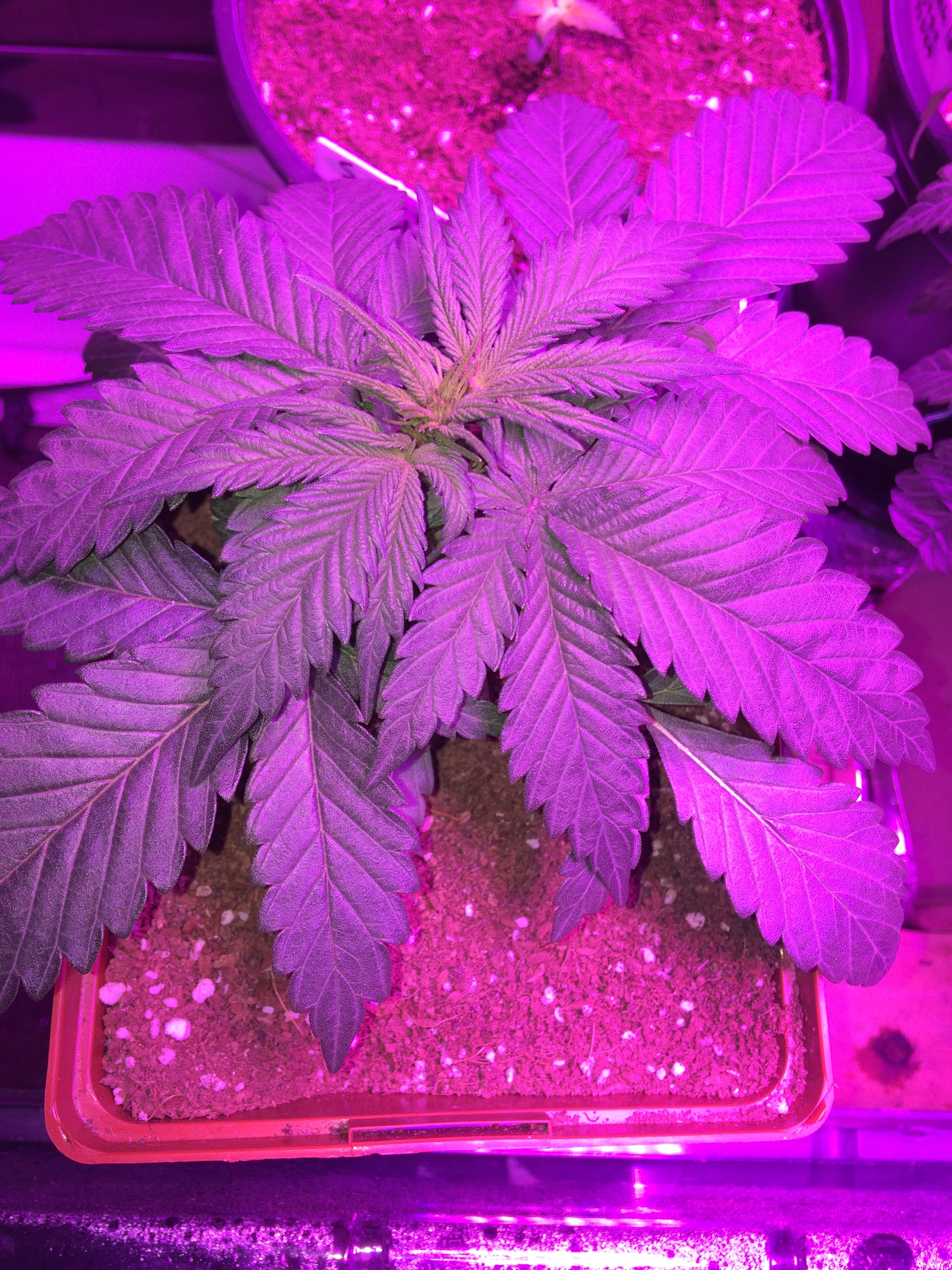 This is the third WW at 10 Weeks. It's been hanging out in the breeding box in a 3-gallon pot. It will go to a 15-gallon pot soon. The plant has been topped twice and will receive training and a trim once it is in the larger pot, then go into the double-wide for 12/12 in 10-14 days.