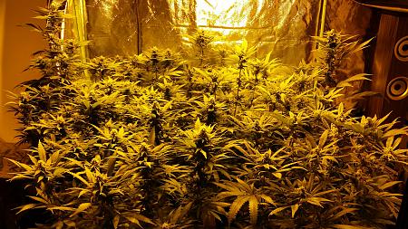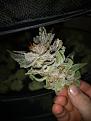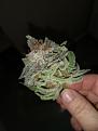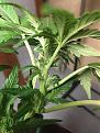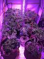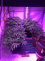 This 12-week old White Widow Extreme has been hanging out in the vegetation cabinet, and will to the double-wide 12/12 tomorrow. I've just freed them from their training wires so the tops appear a bit uneven. I'll adjust in the new location. There is one bud on the right that got too close to the Vipar 450 Dimmable LEDs. It was at 6" below the lights. The other branches an inch or two shorter are unaffected. I'm getting familiar with the limits of this light. So, I'm happy.